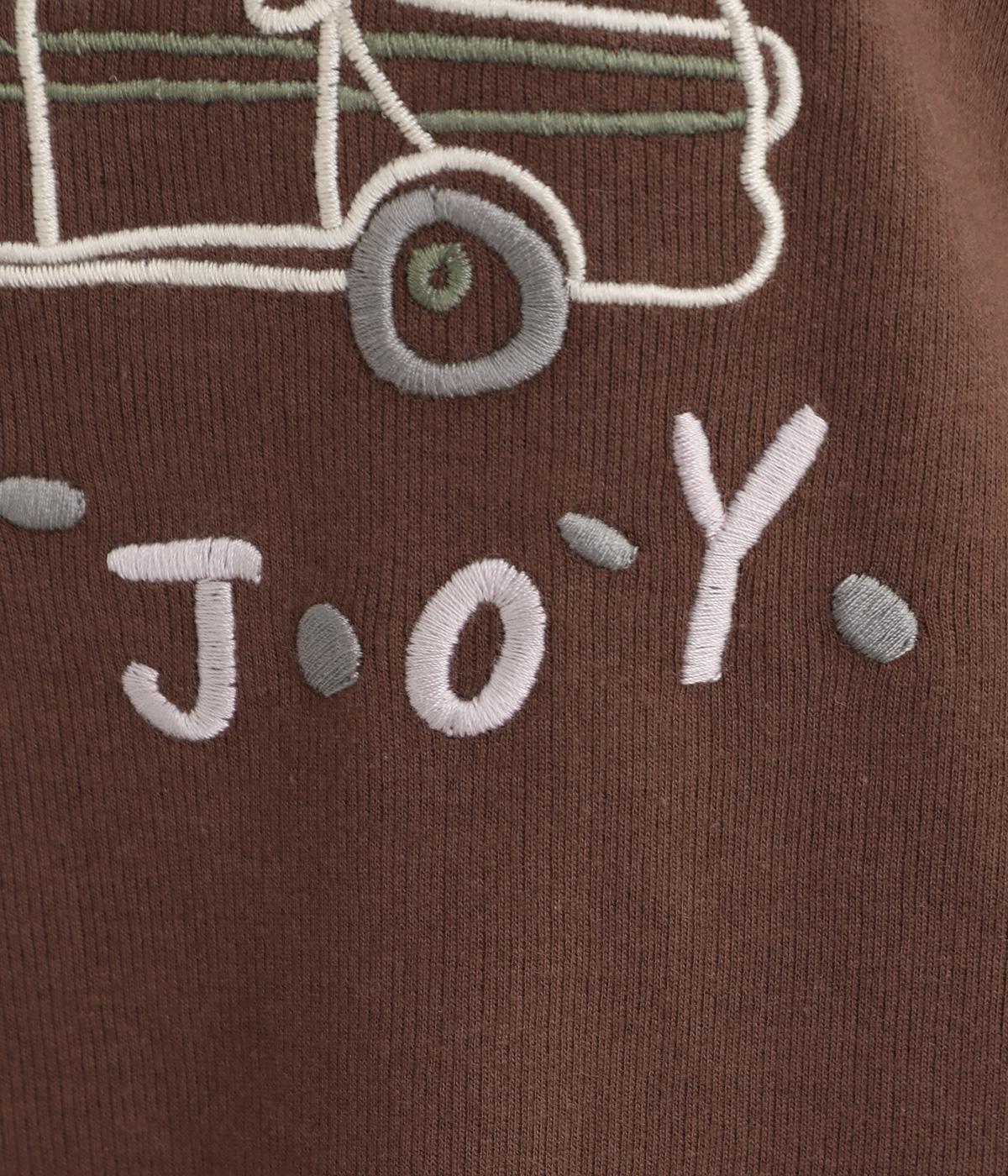 レトロ感があるポップな刺しゅうが目をひくデザインです。シンプルなシルエットながら個性のある一枚に仕上がりました。前後差をつけた裾がぬけ感を出し、コーディネートに遊び心をプラスします。