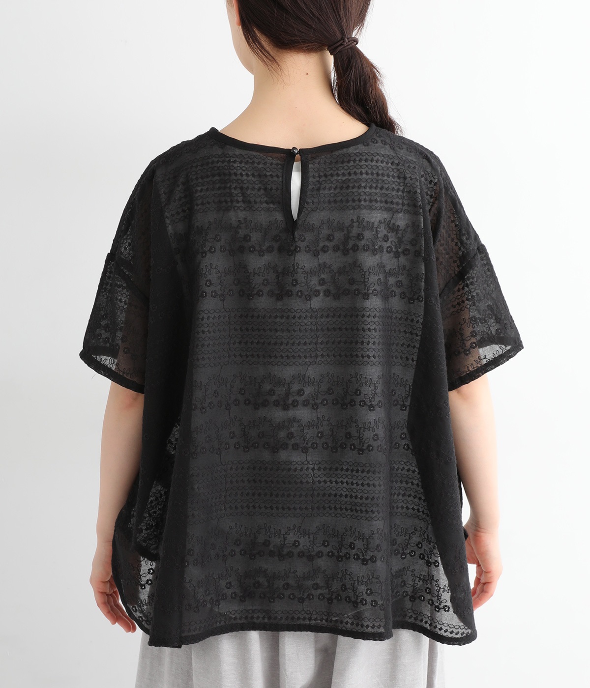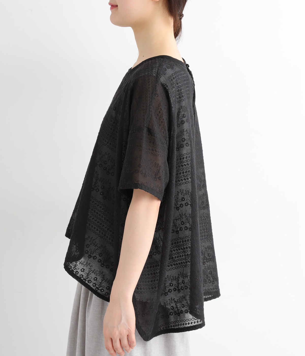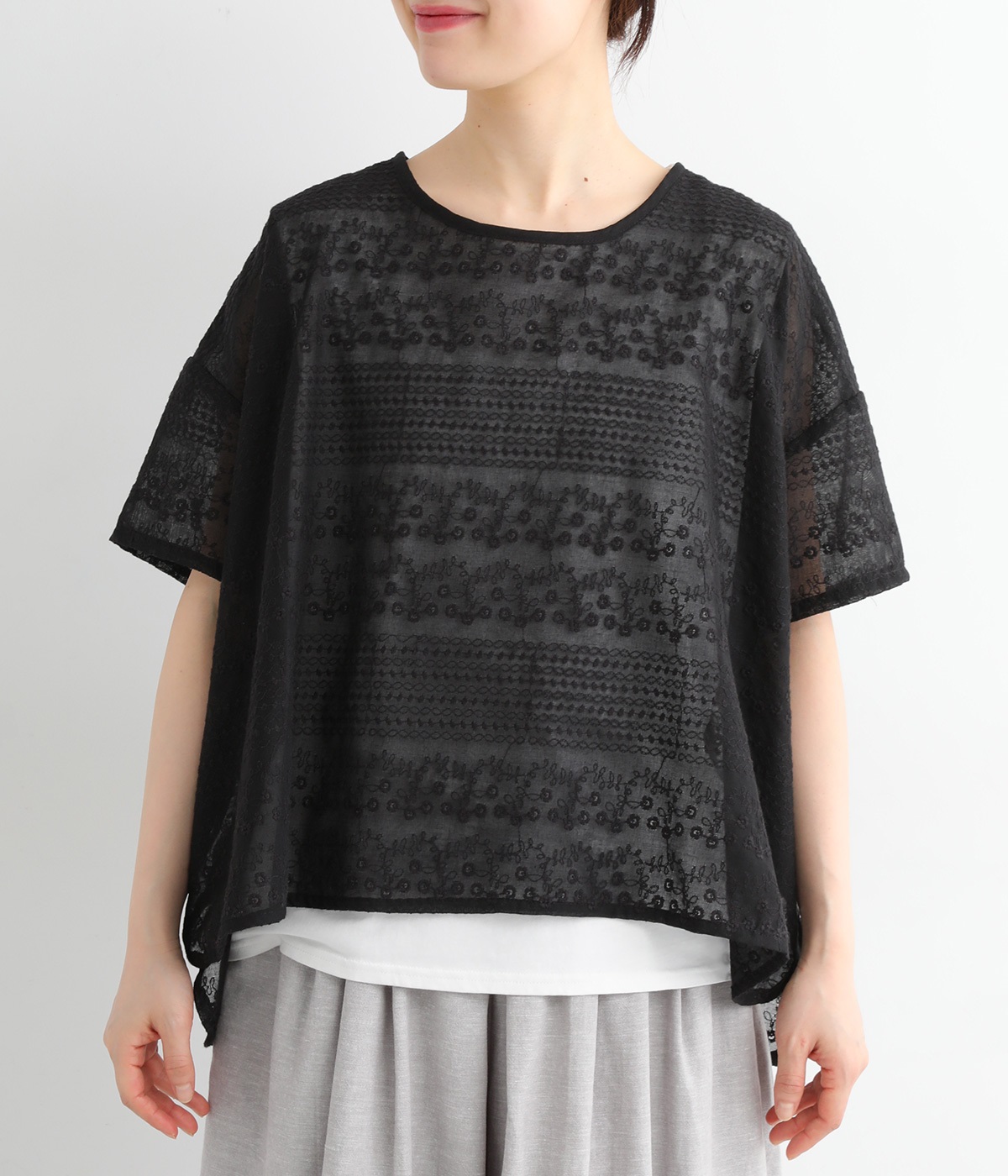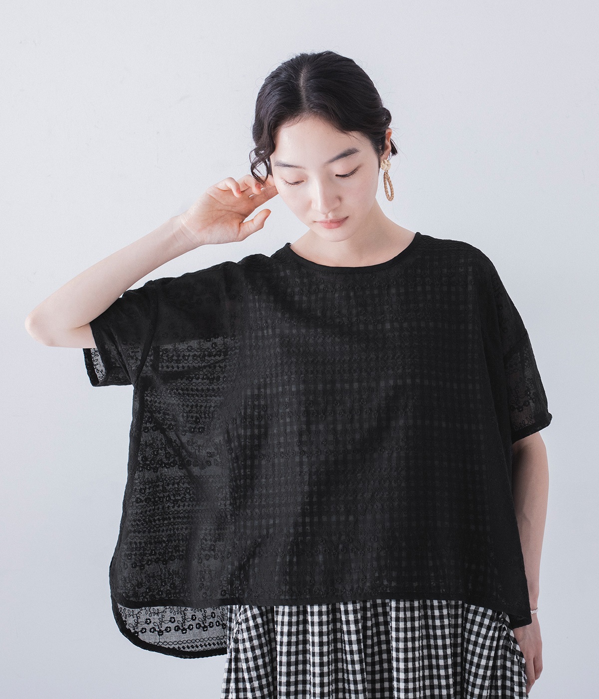 繊細な刺しゅうとほどよい透け感が、涼しげな印象をプラス。