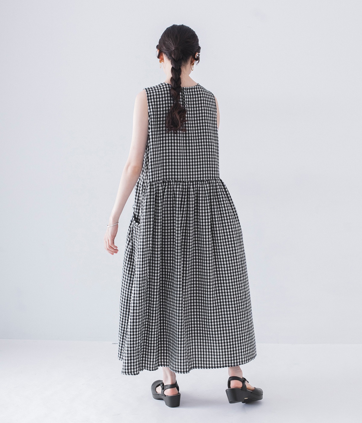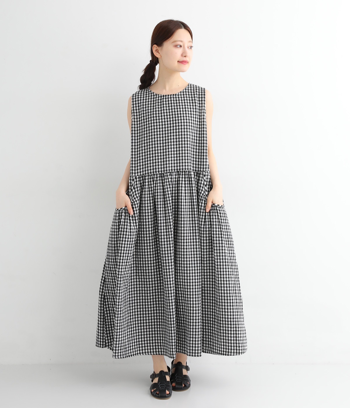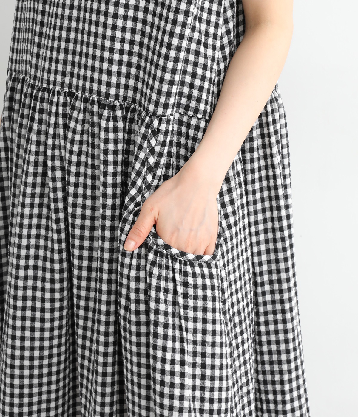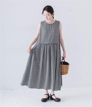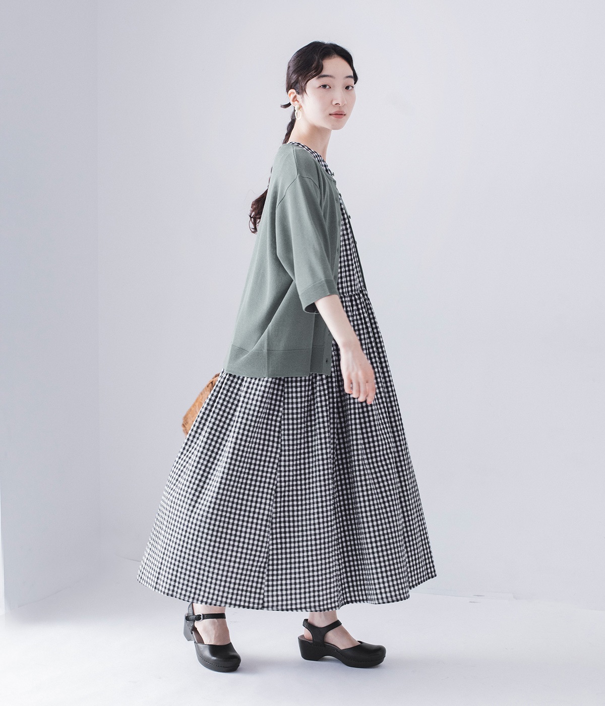 合わせるアイテムのカラーによって、ギンガムチェックのワンピースもぐっと大人っぽい表情に。