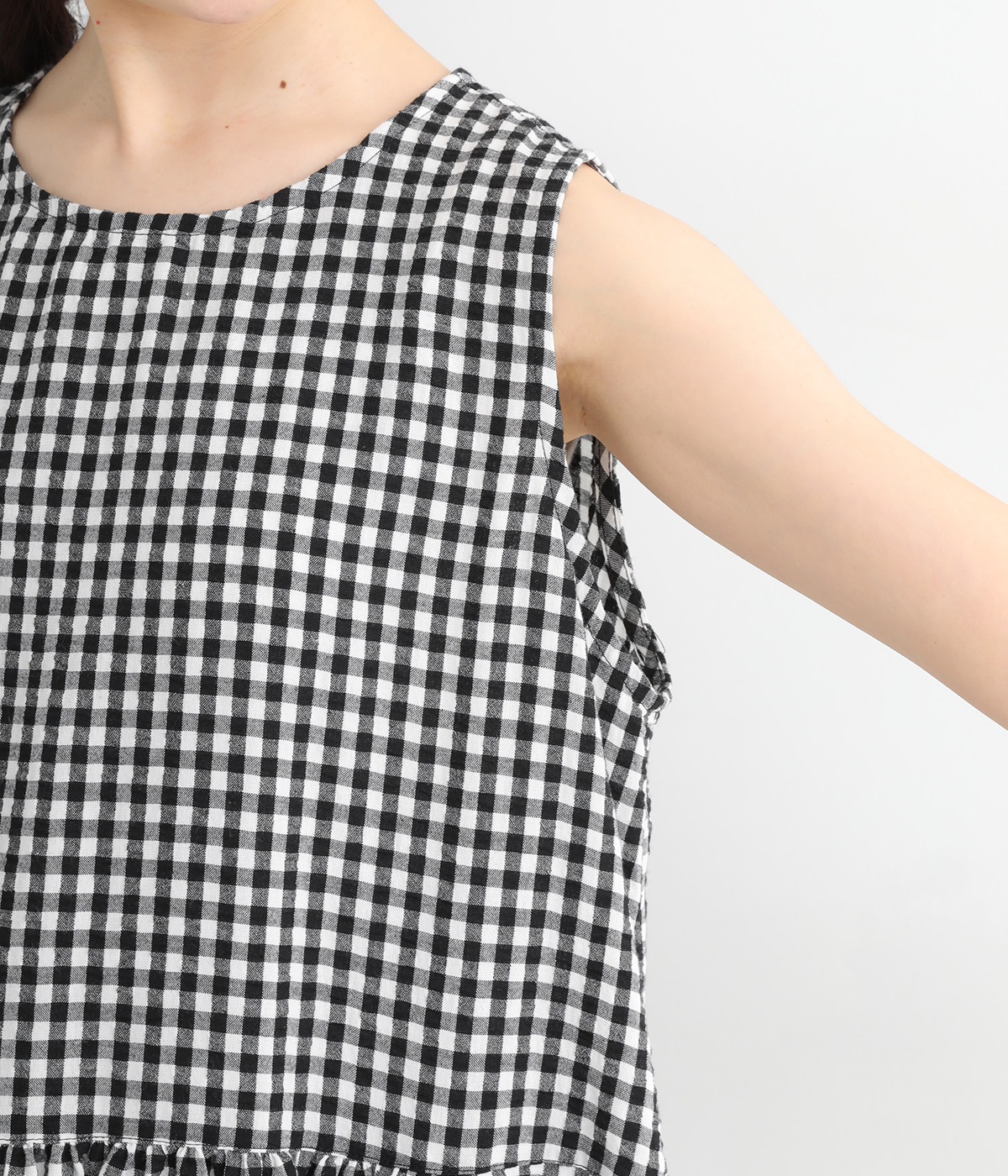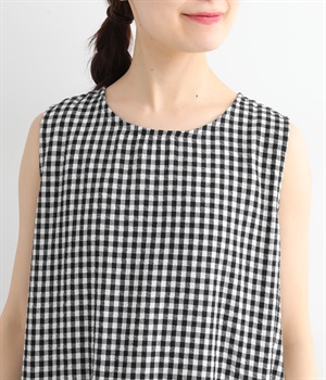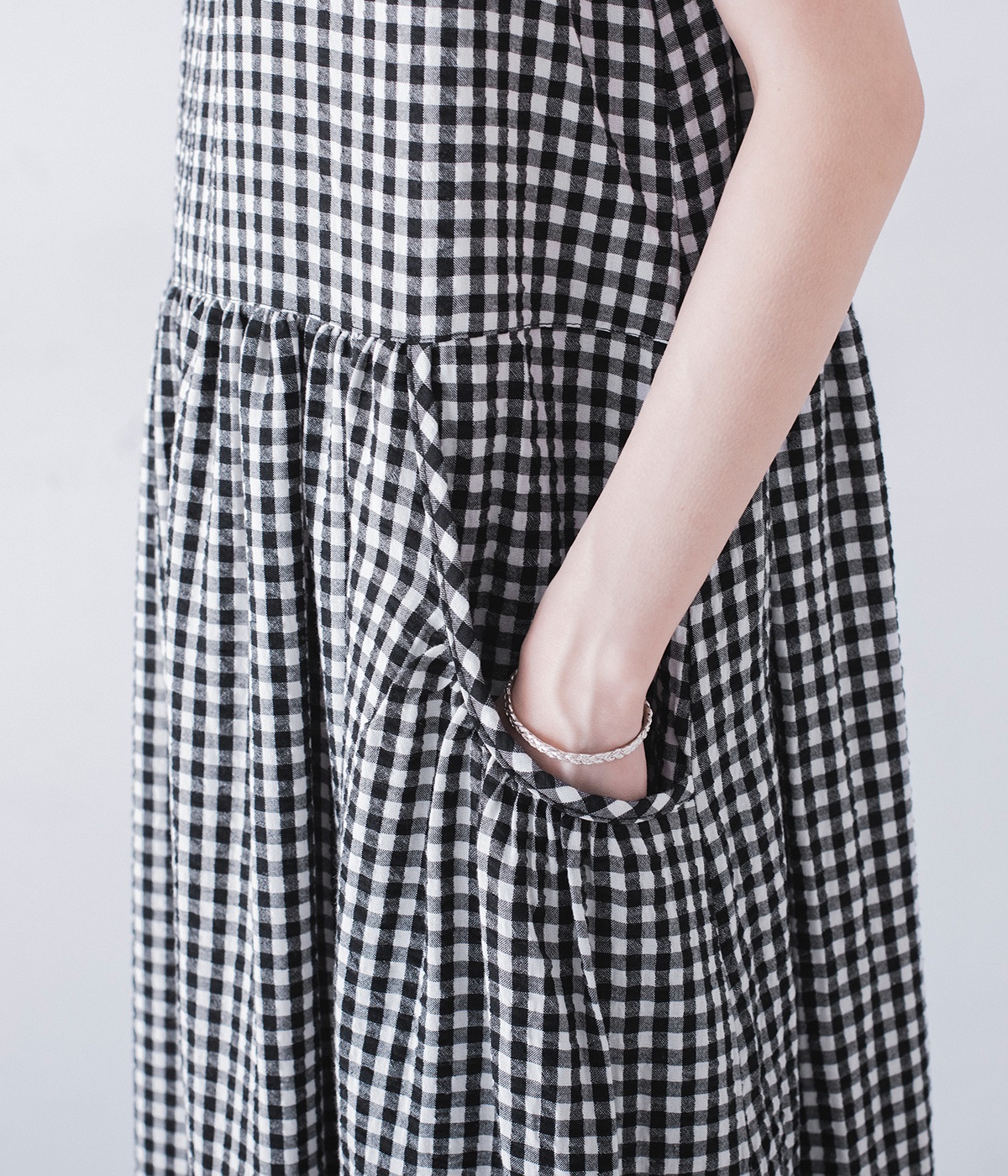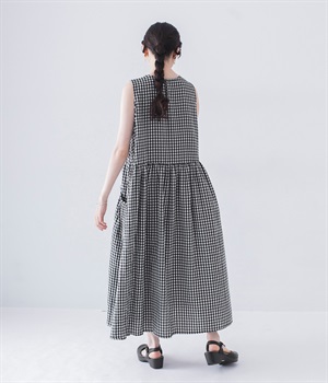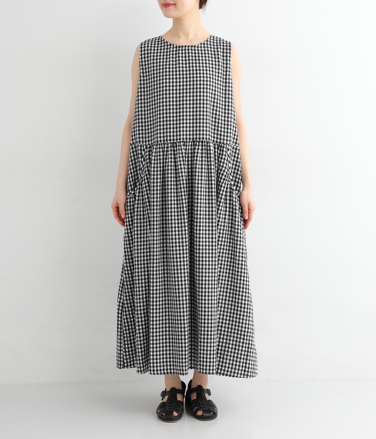 合わせるアイテムのカラーによって、ギンガムチェックのワンピースもぐっと大人っぽい表情に。