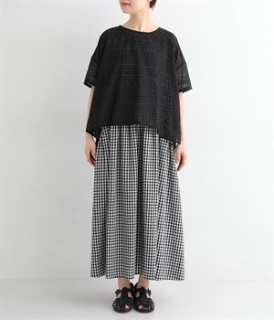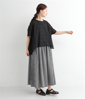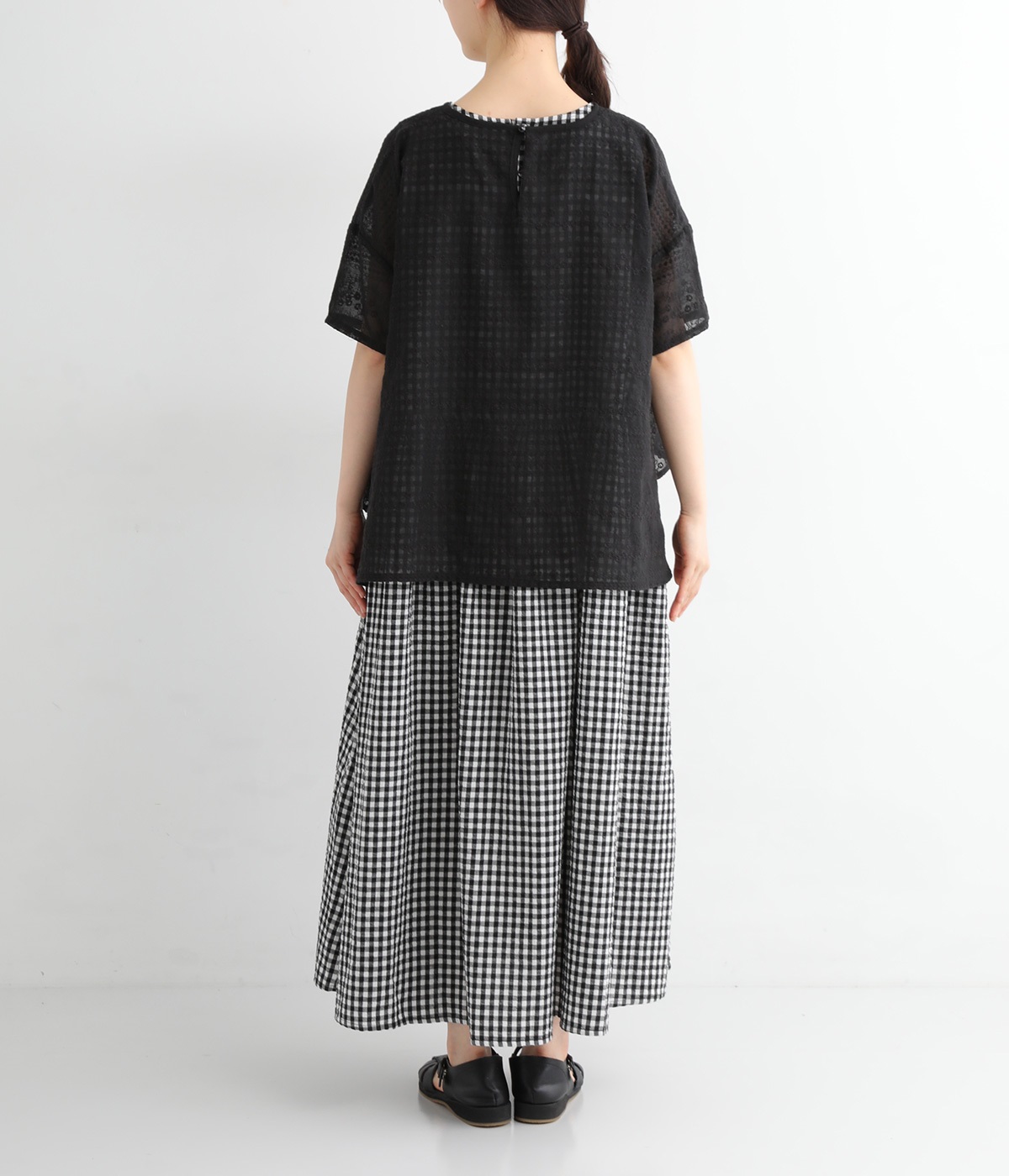 優しいギンガムに、刺繍ブラウスの軽やかさを重ねて。