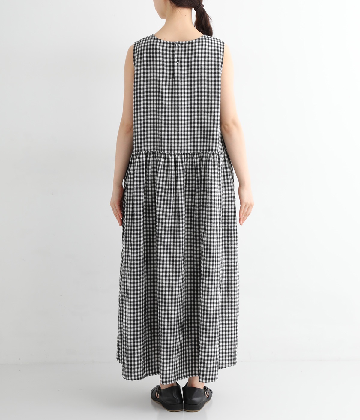ワンピースはほんのり透け感のあるサッカー地で、見た目にも涼やか。
