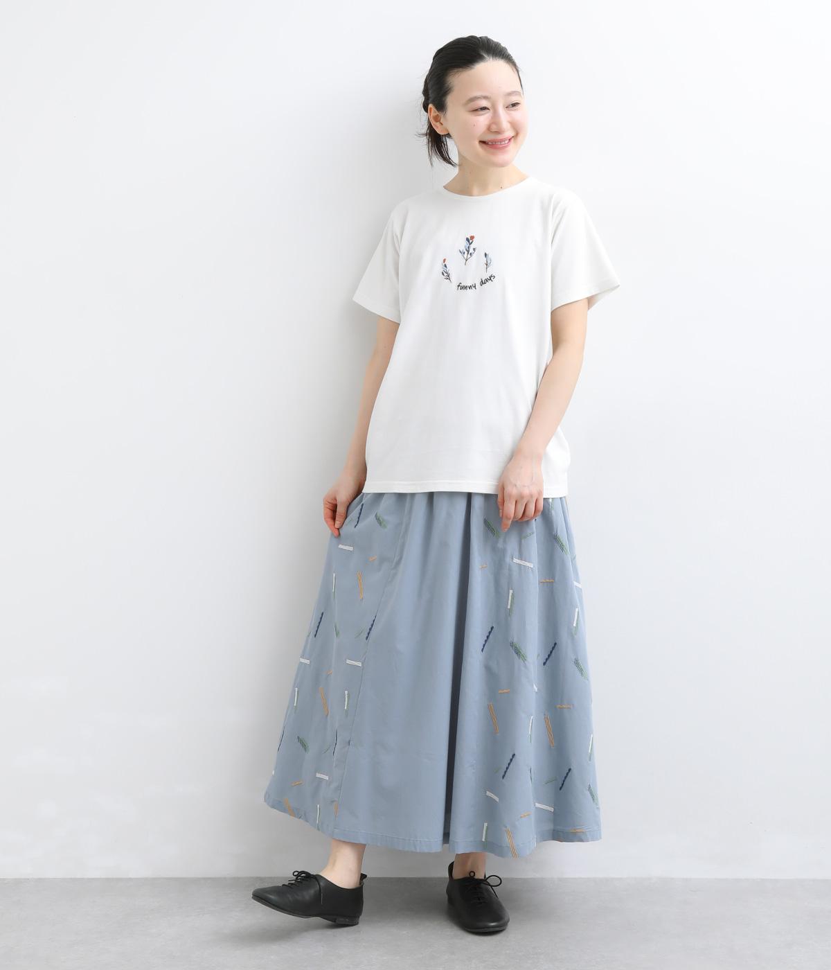 さらさら天竺 花刺繍レギュラーT(ホワイト)