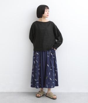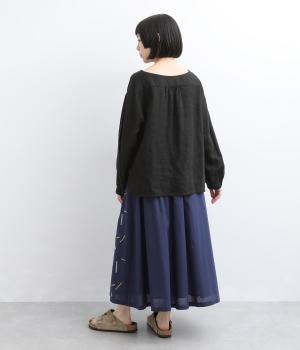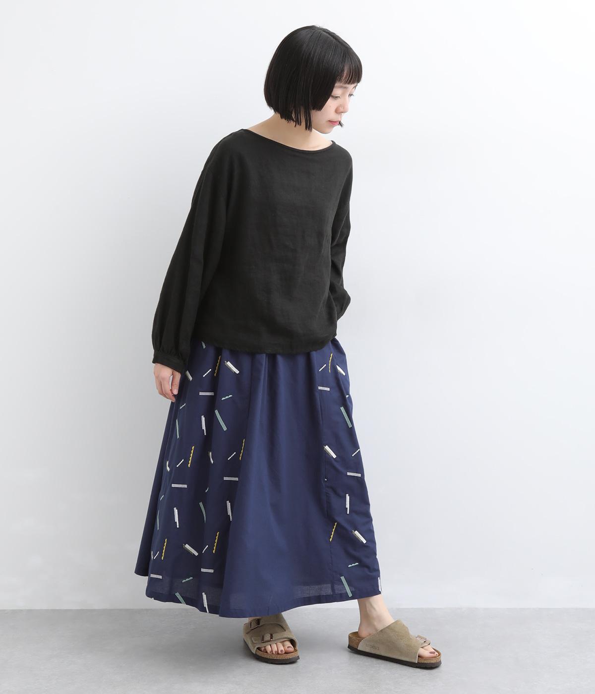 コットン リネンフラワー刺繍スカート