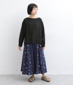 リネンオリーブ刺繍タックスカート