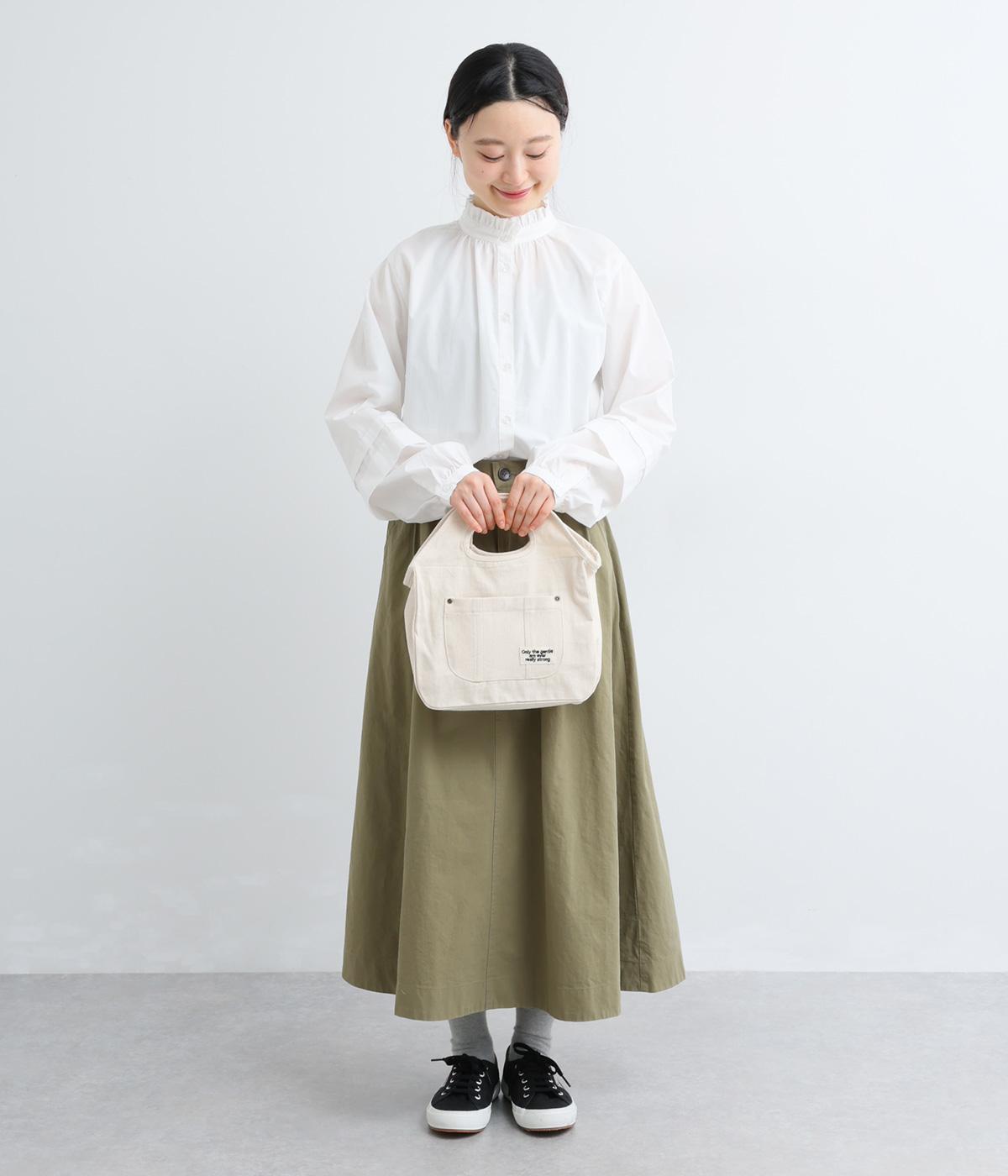 デイリーにフル活用できる丈夫さが魅力のコットンツイル生地を使用。フォルムをしっかりきれいに出しながらも適度にやわらかいのでハンドルも持ちやすくなっています。