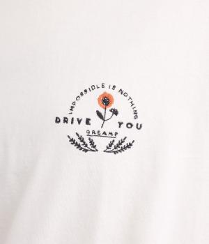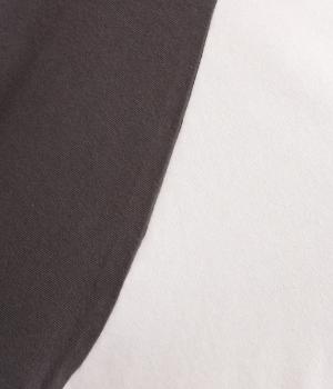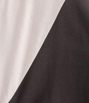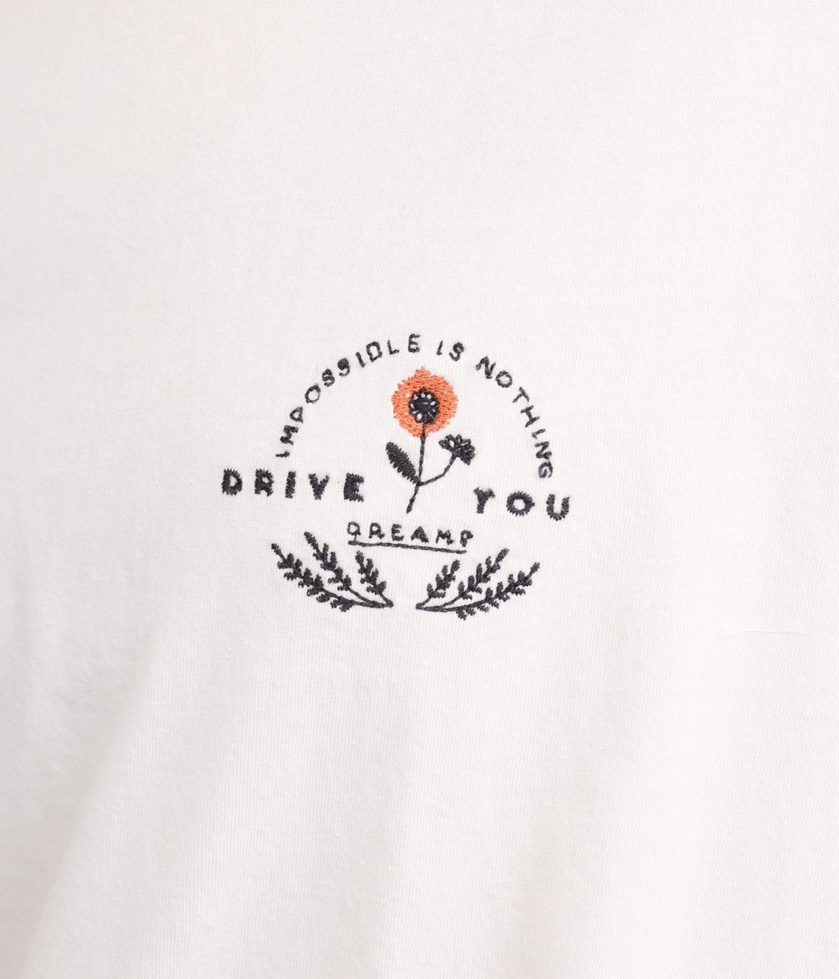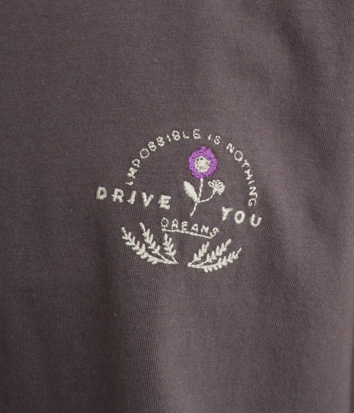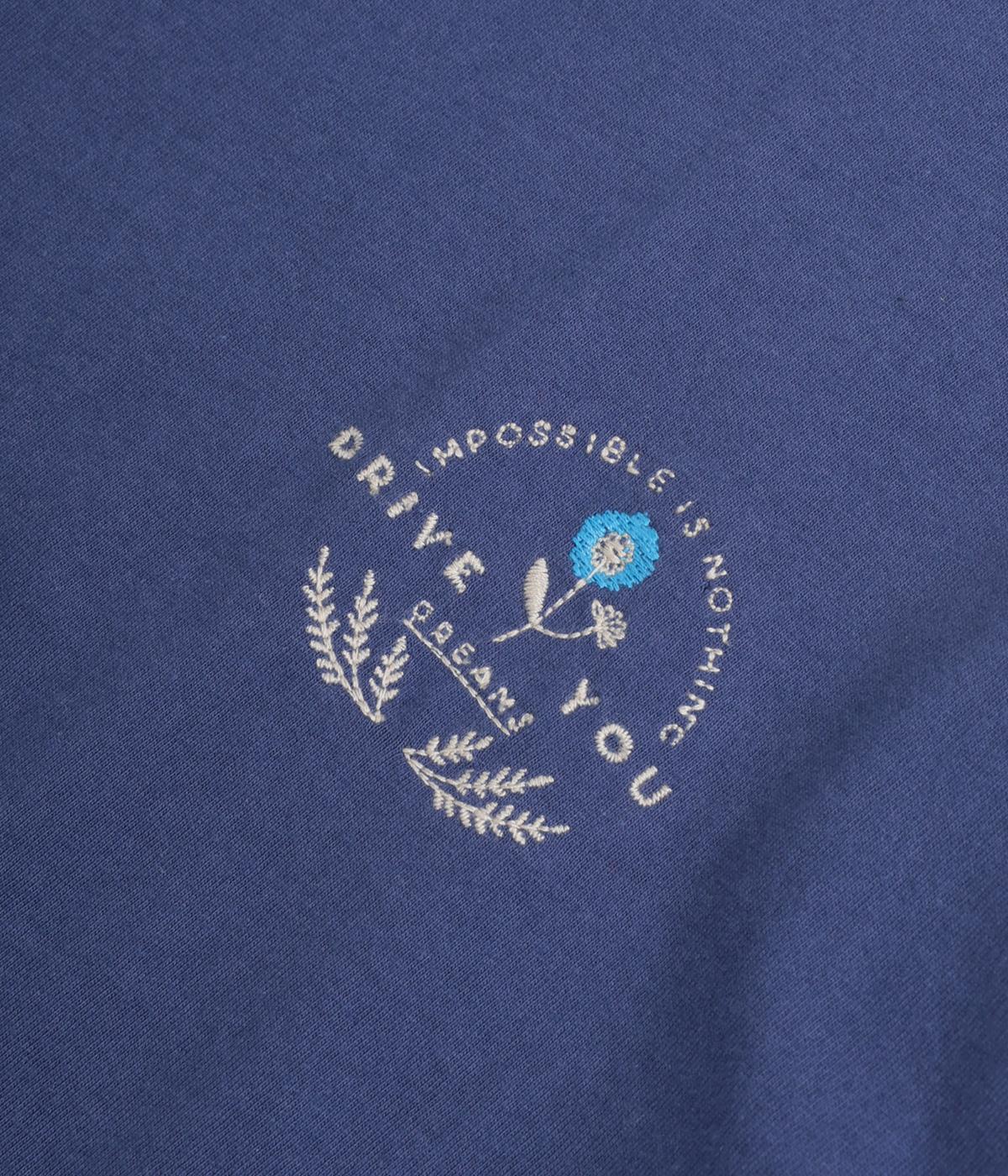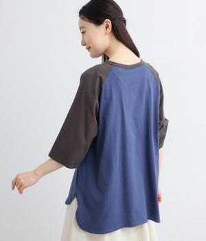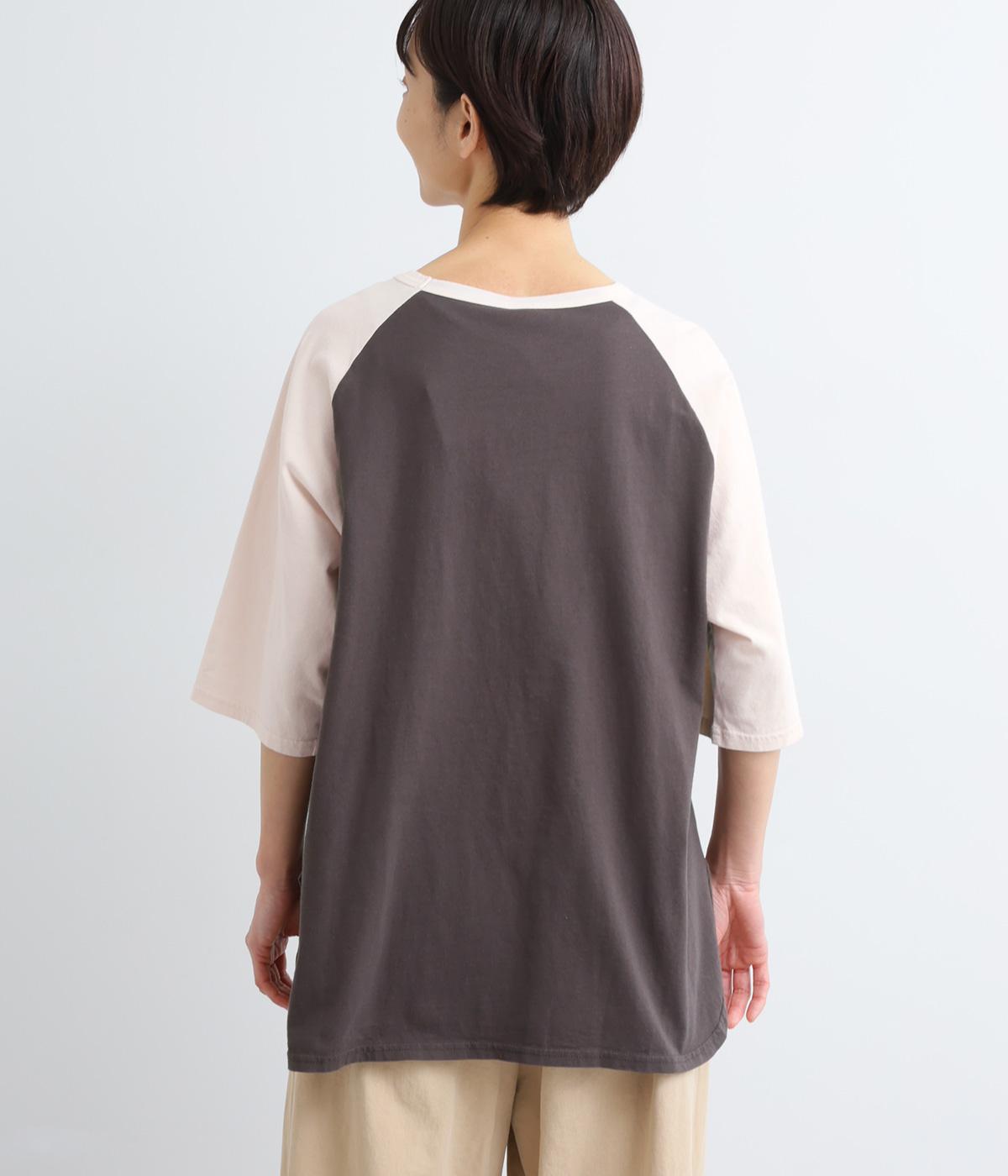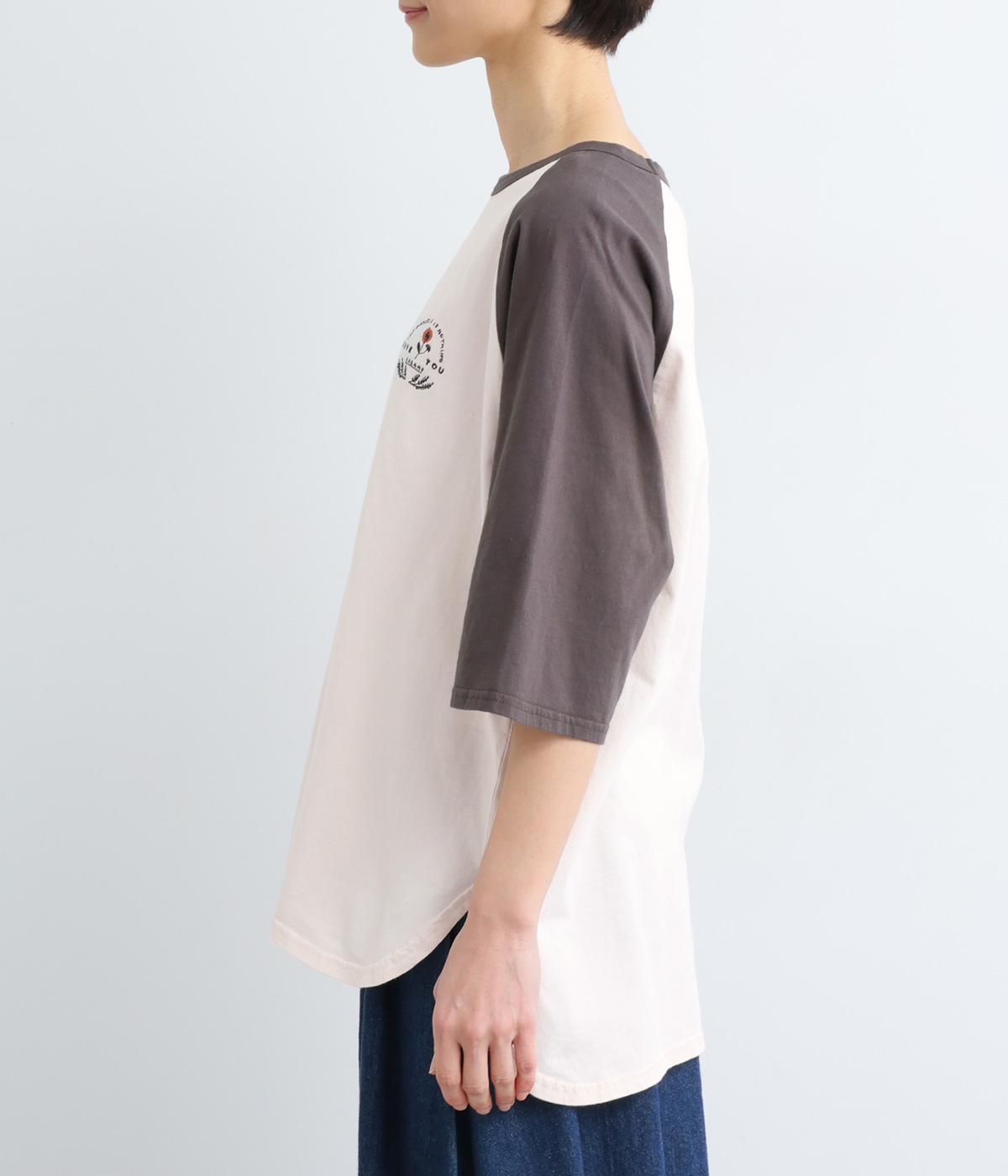 左胸のロゴ刺しゅうとラグラン配色が特徴的な一枚。カジュアル要素を取り入れながらも刺しゅうの花モチーフやゆとりのあるシルエットでナチュラルテイストにまとめています。ラウンド裾は前後差をつけて横姿に動きをプラス。