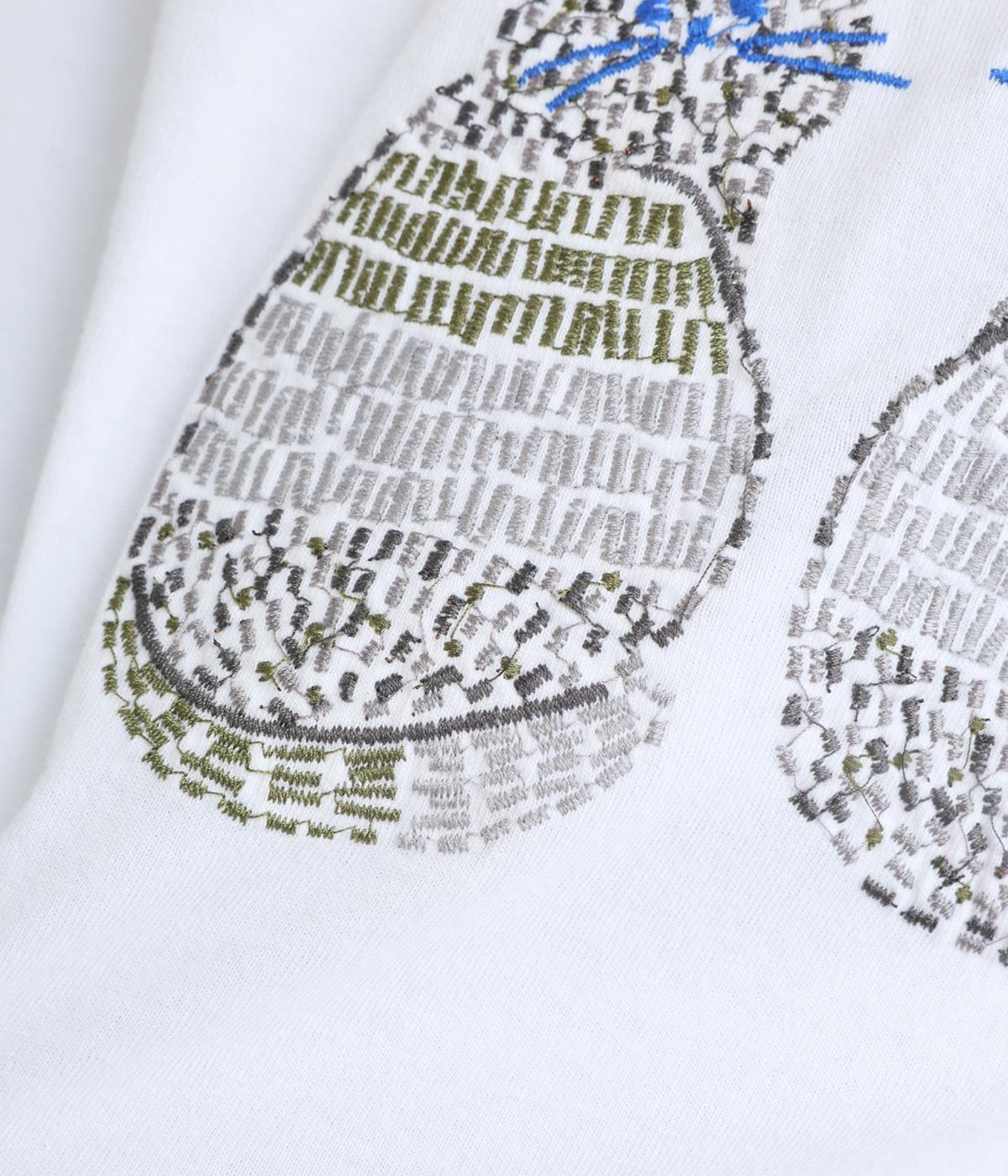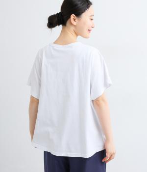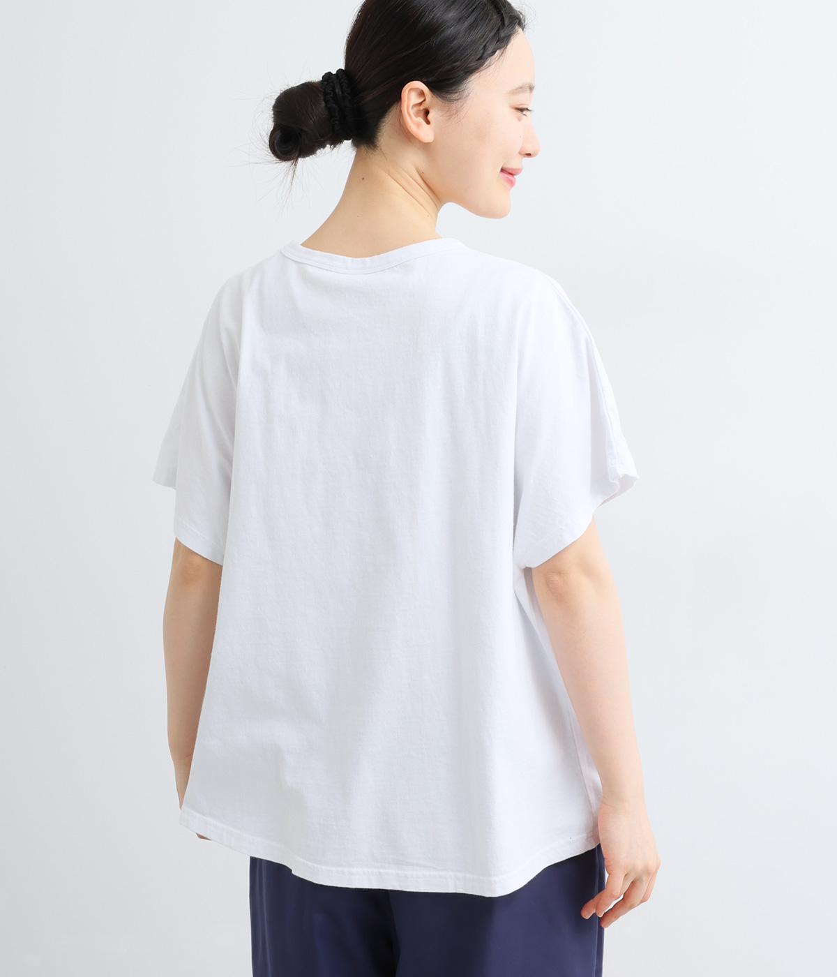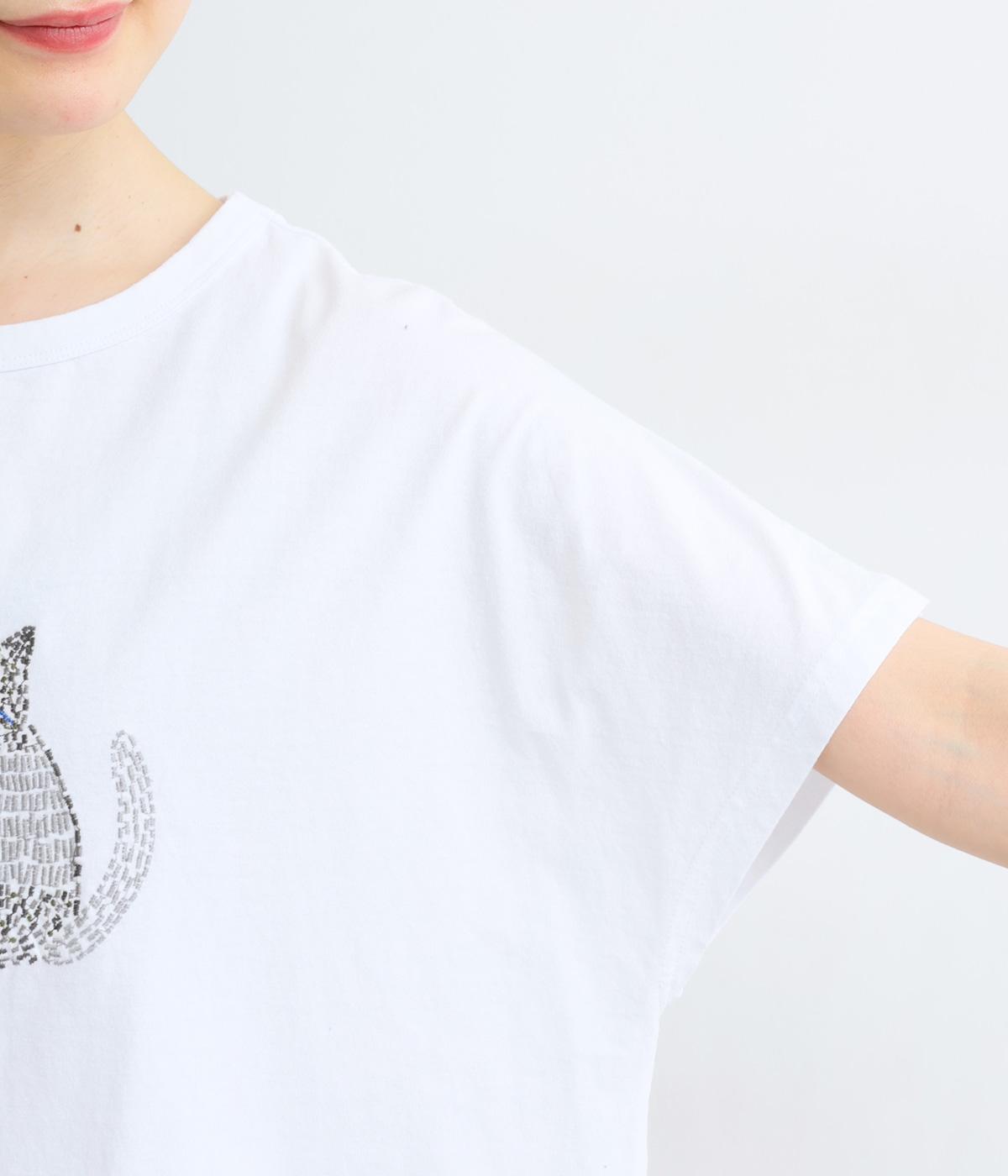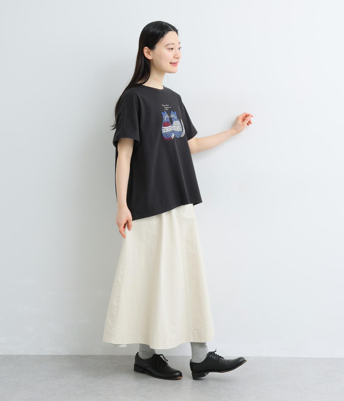 くるりと振り返った猫の後ろ姿が愛らしい、刺しゅうデザインのTシャツ。定番色のベース生地に刺しゅう糸の配色をきかせています。体にフィットしすぎない適度にゆとりを持たせた作りでカジュアルに着まわせます。
