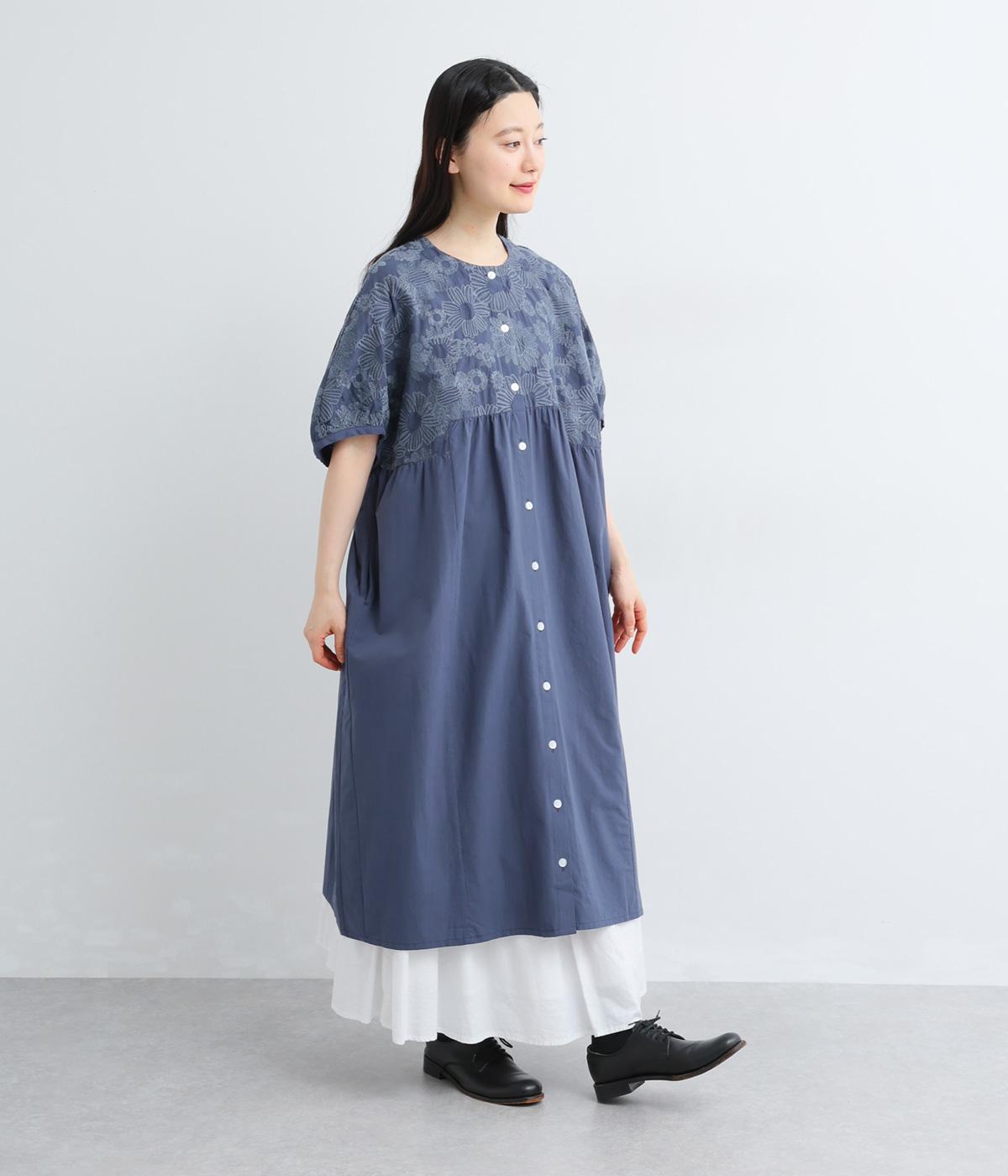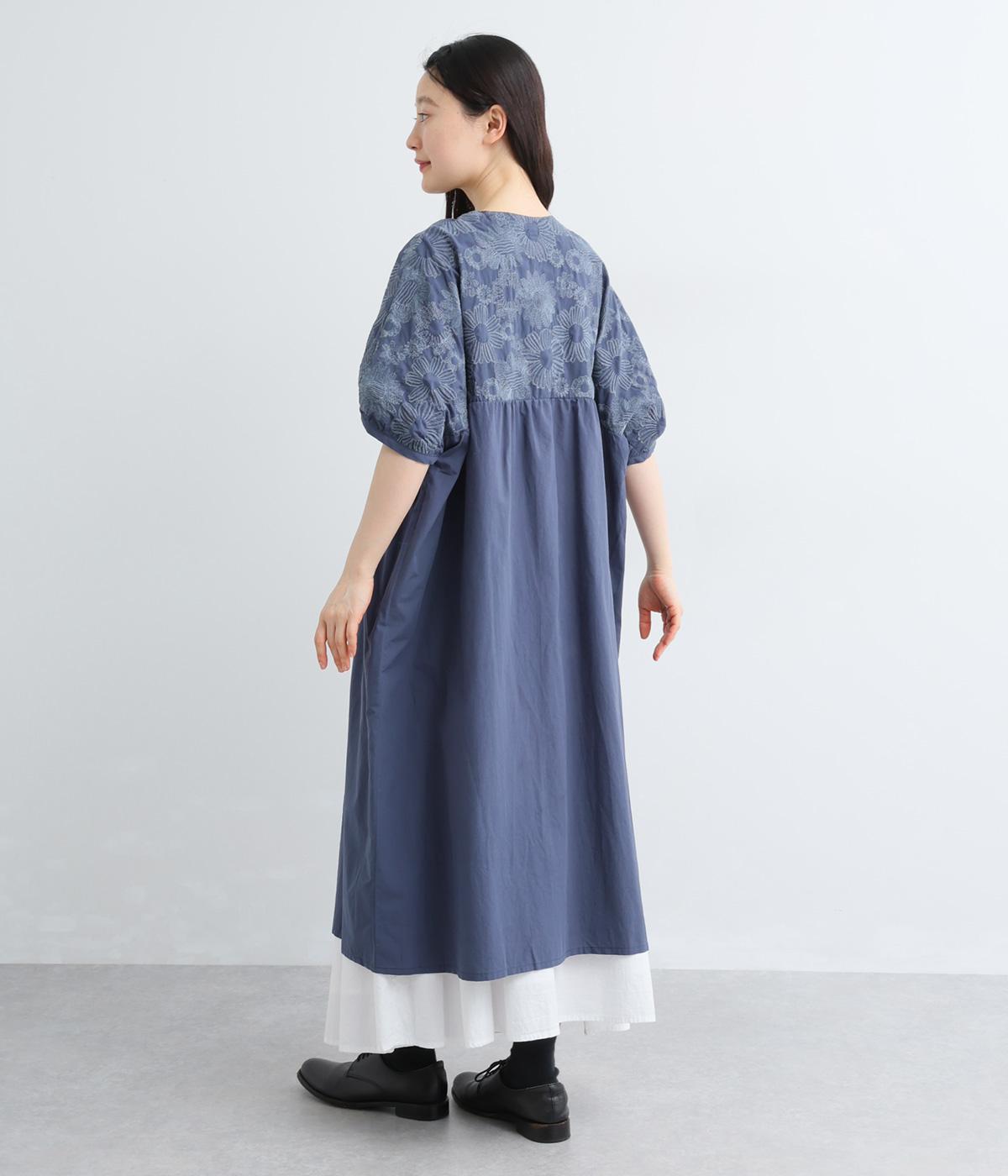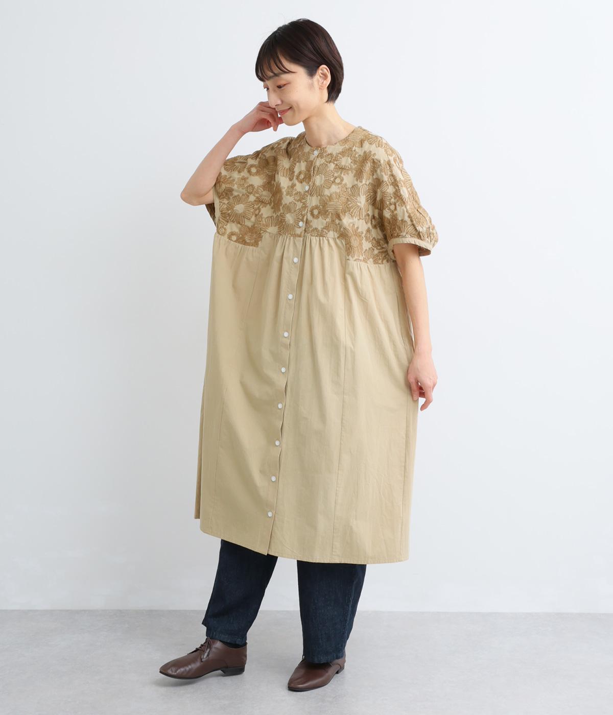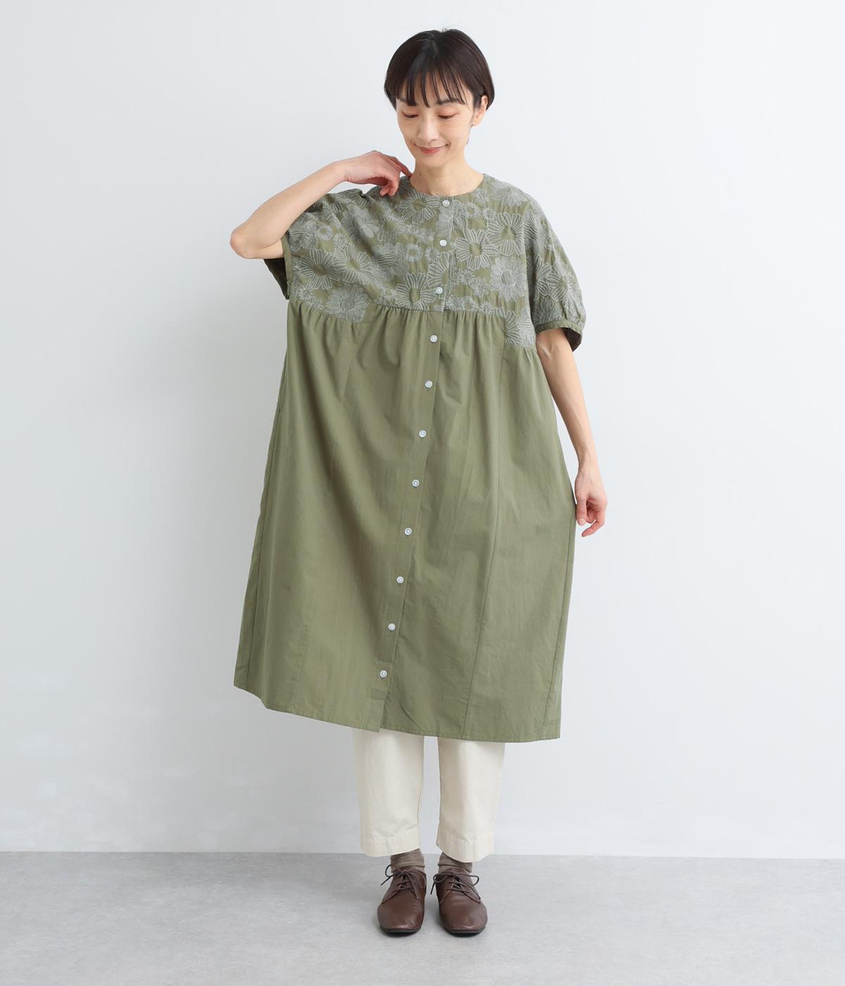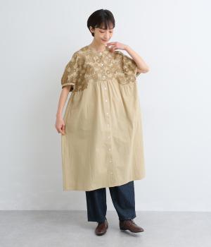 顔まわりにあしらった大胆な大花刺しゅうにふっくらとした袖が目を惹くワンピース。陰影を感じさせる配色が大人顔にまとまるポイント。一枚着はもちろん、ボトムを合わせたり前あきの羽織りにしたりと着まわしもききます。