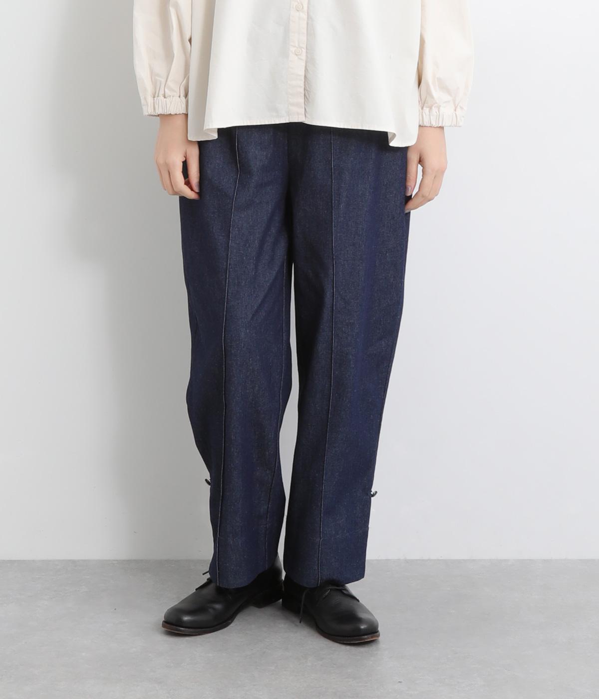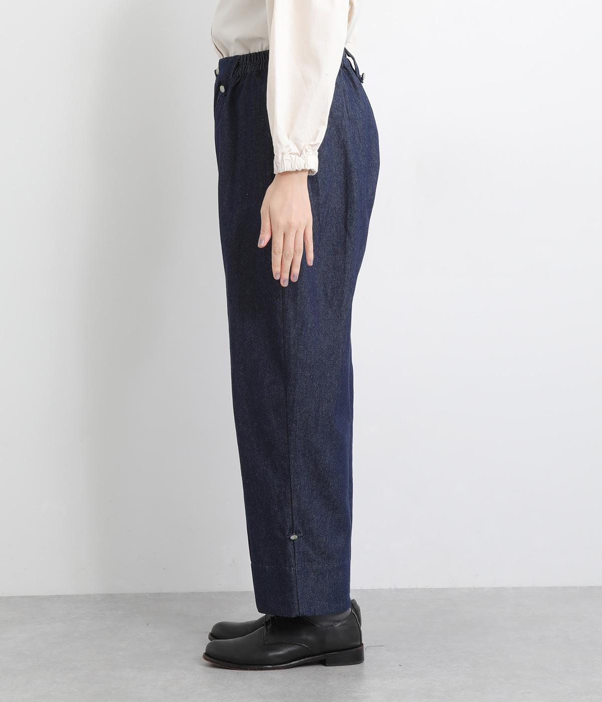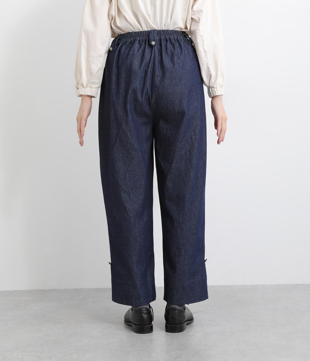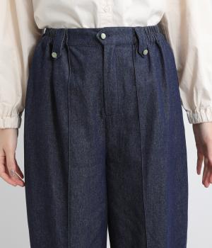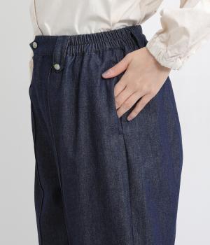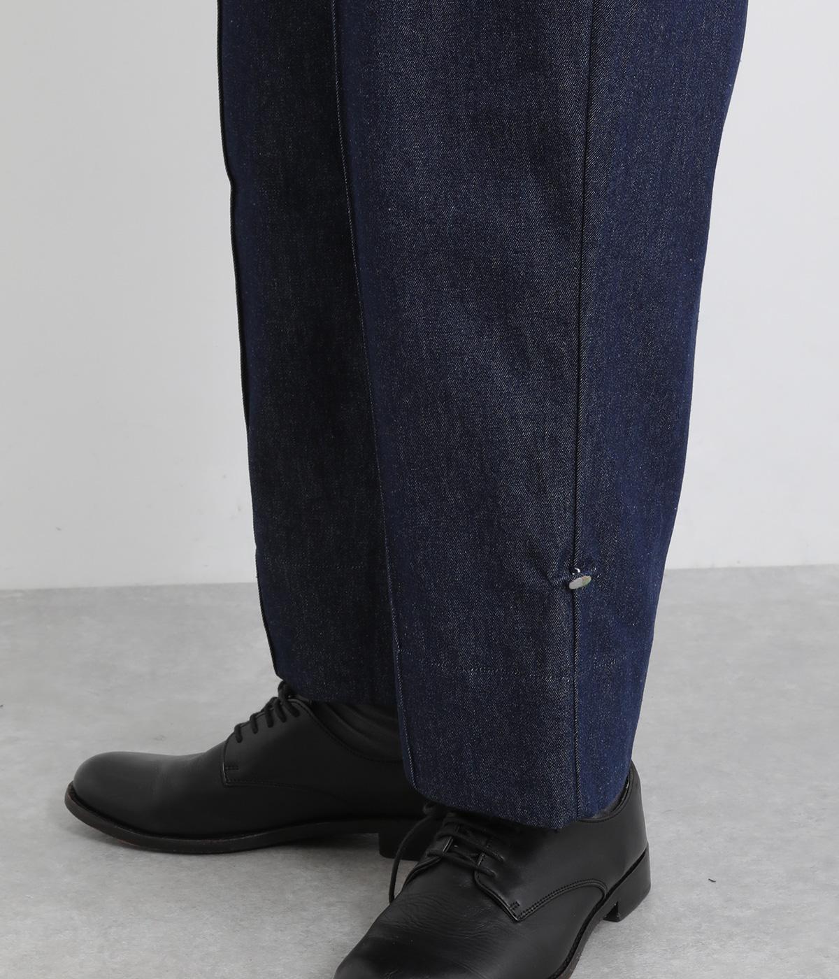 ほどよい厚みとやわらかさを兼ね備えたコットン生地。季節を問わずデイリーに着用できます。はき込むごとに味わいが増す、インディゴ染めならではの色味や生地の変化もたのしみの一つです。