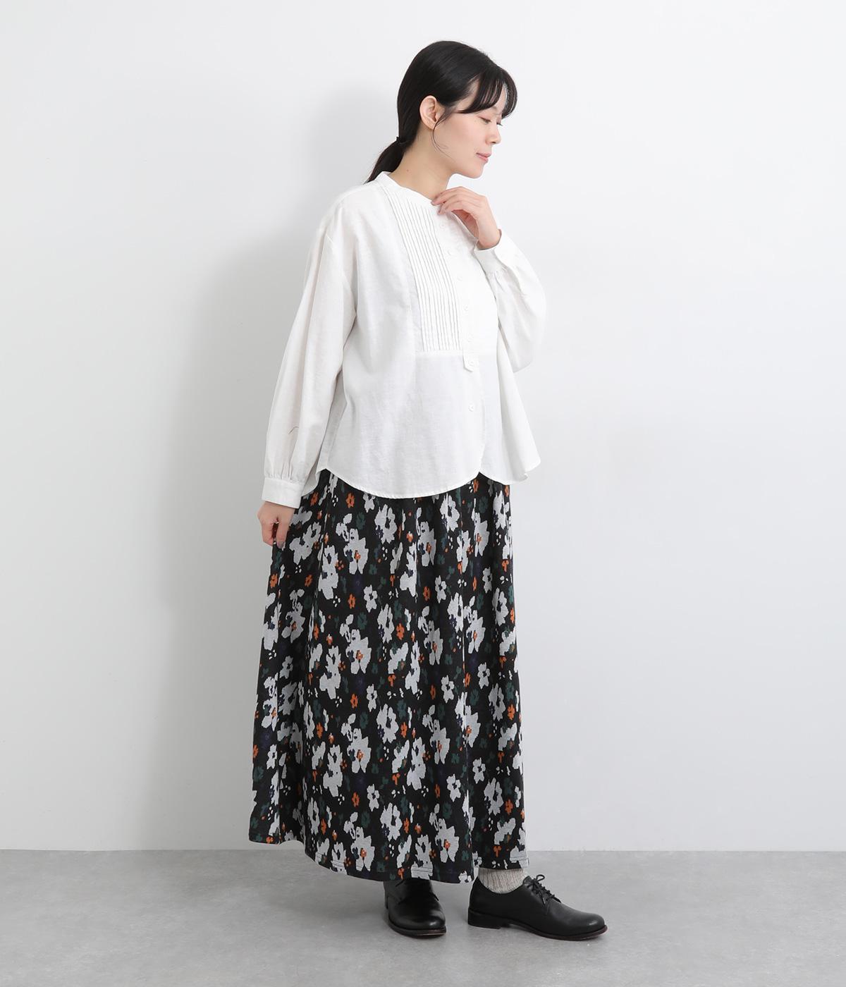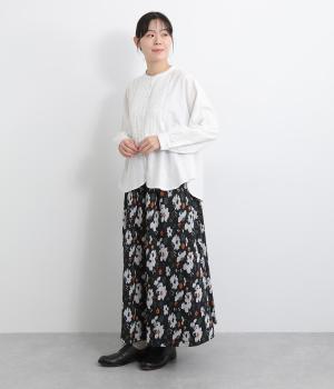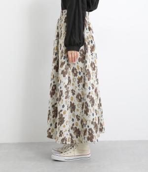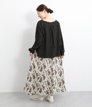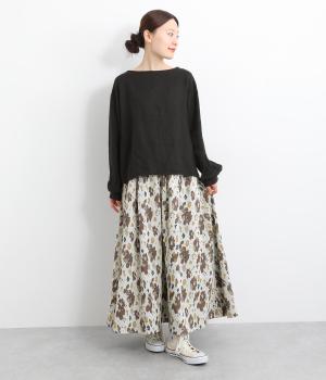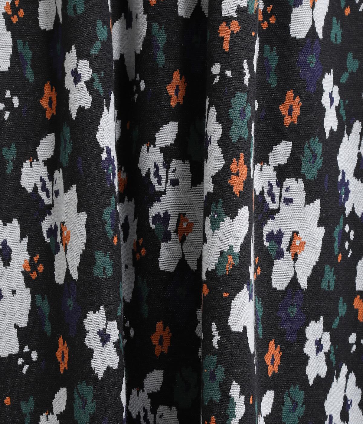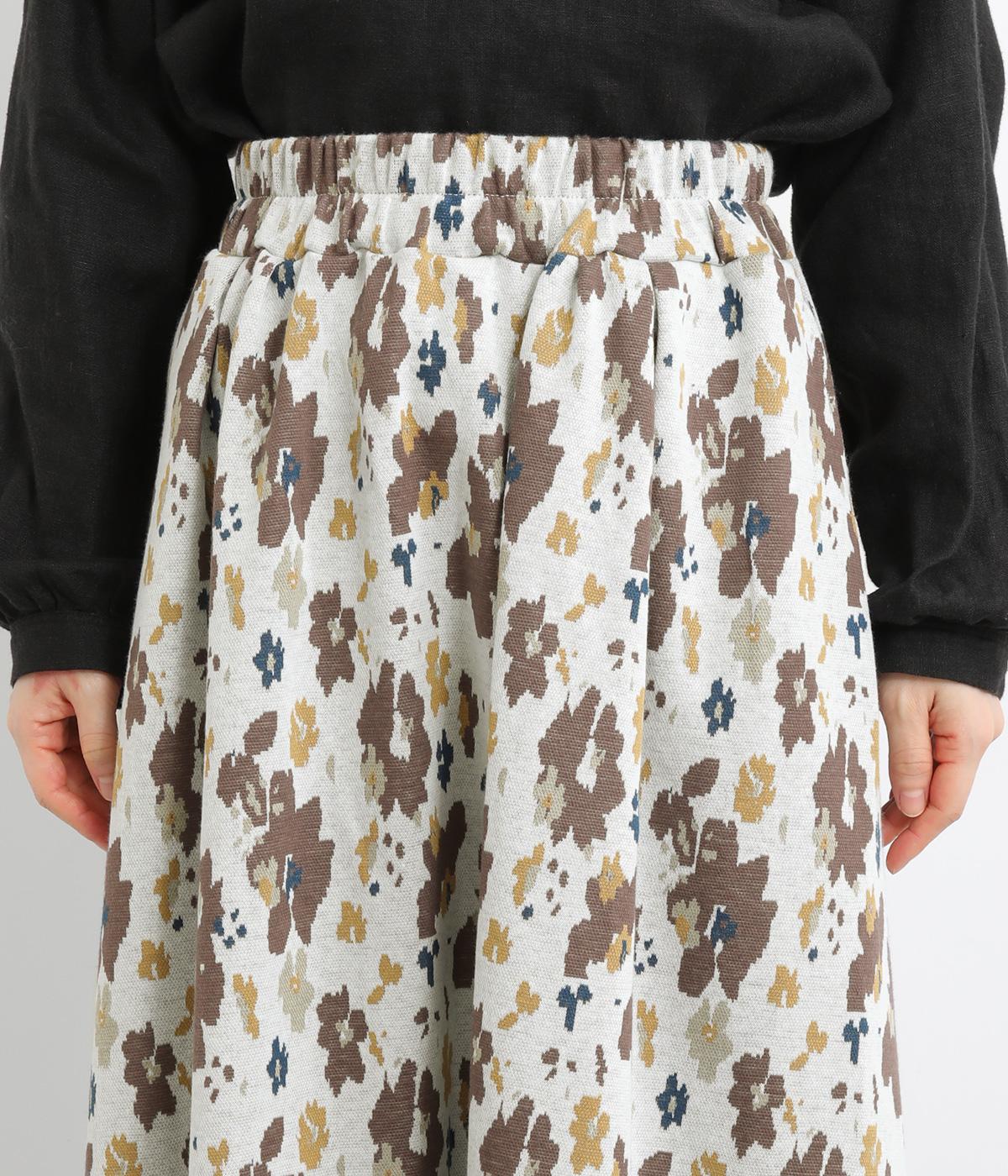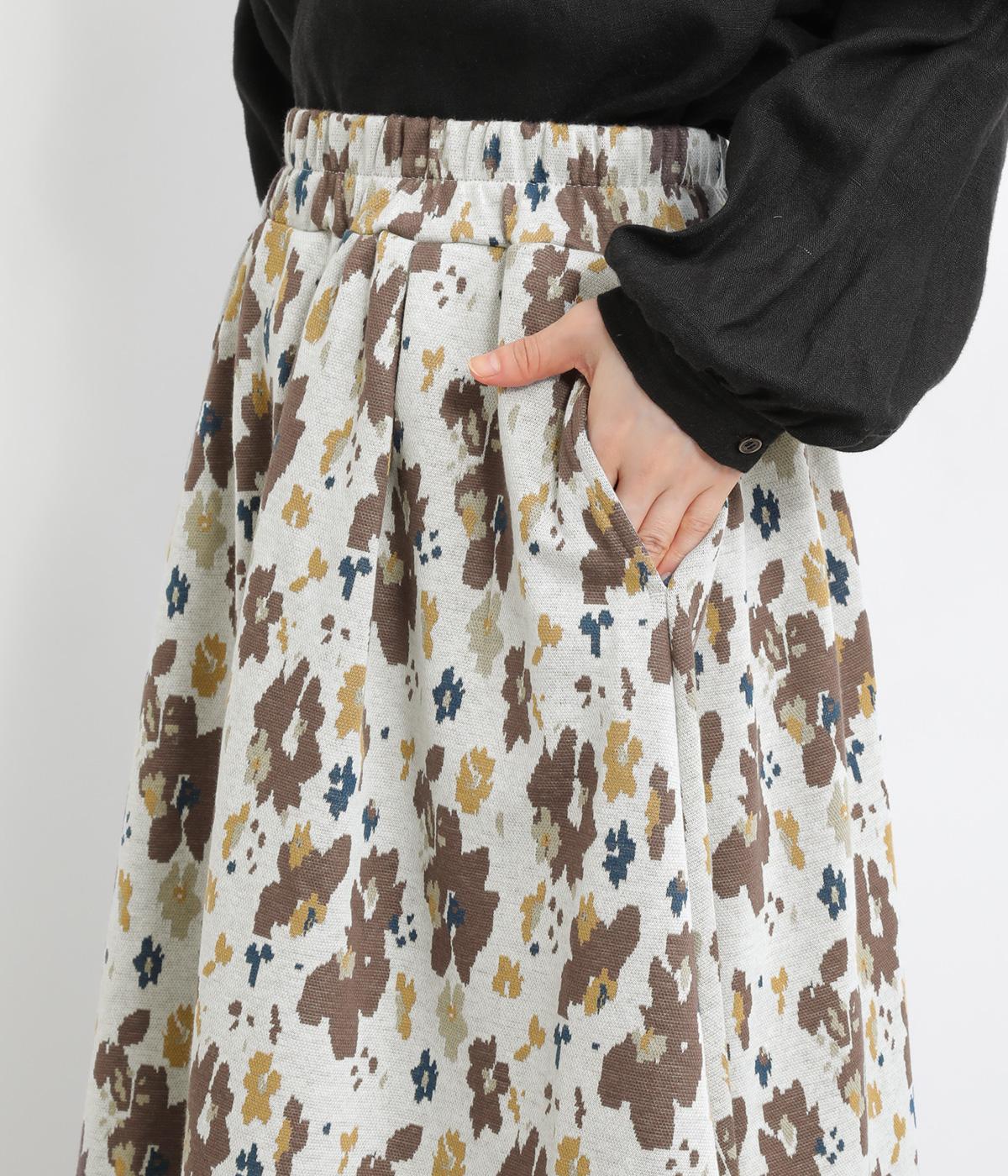 ボトムスを主役にしたおしゃれを存分に楽しめる、フラワージャカード生地のスカート。ドレープを描きながら広がるフレアシルエットがフェミニンなムードを加速させます。サイドには便利なポケットつき。ウエストは総ゴム仕様で、内側に紐を通しています。