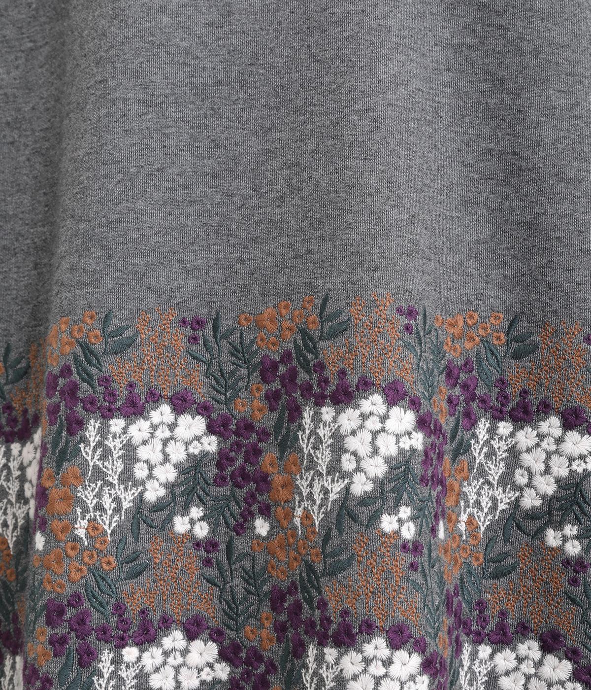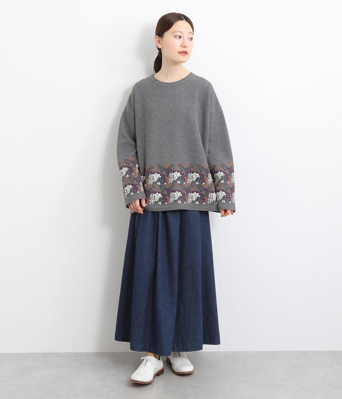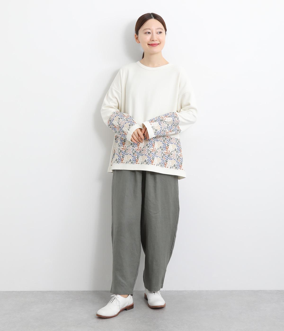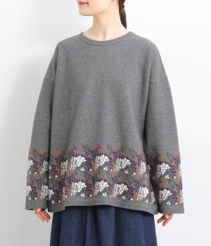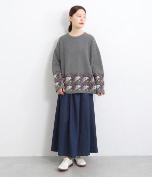 前身頃の裾と袖に、花畑のような繊細な刺しゅうをあしらったプルオーバー。アクセントになりつつも派手すぎないカラーリングで、着こなしを大人かわいく仕上げてくれます。ゆったりとした身幅と長めの着丈も、メリハリのある刺しゅうで間延びせずにすっきり見えするのが◎です。