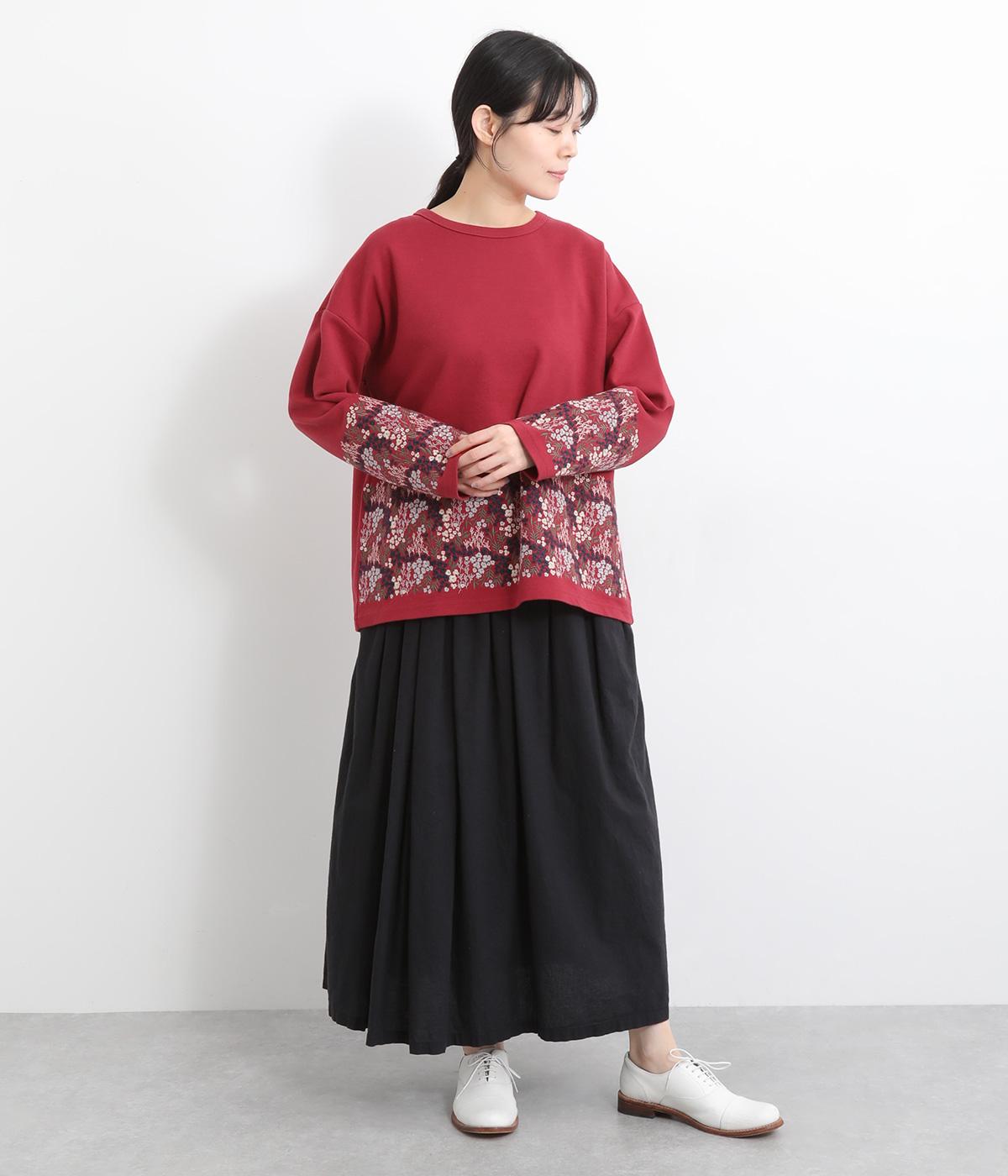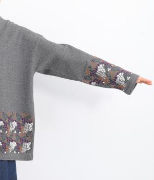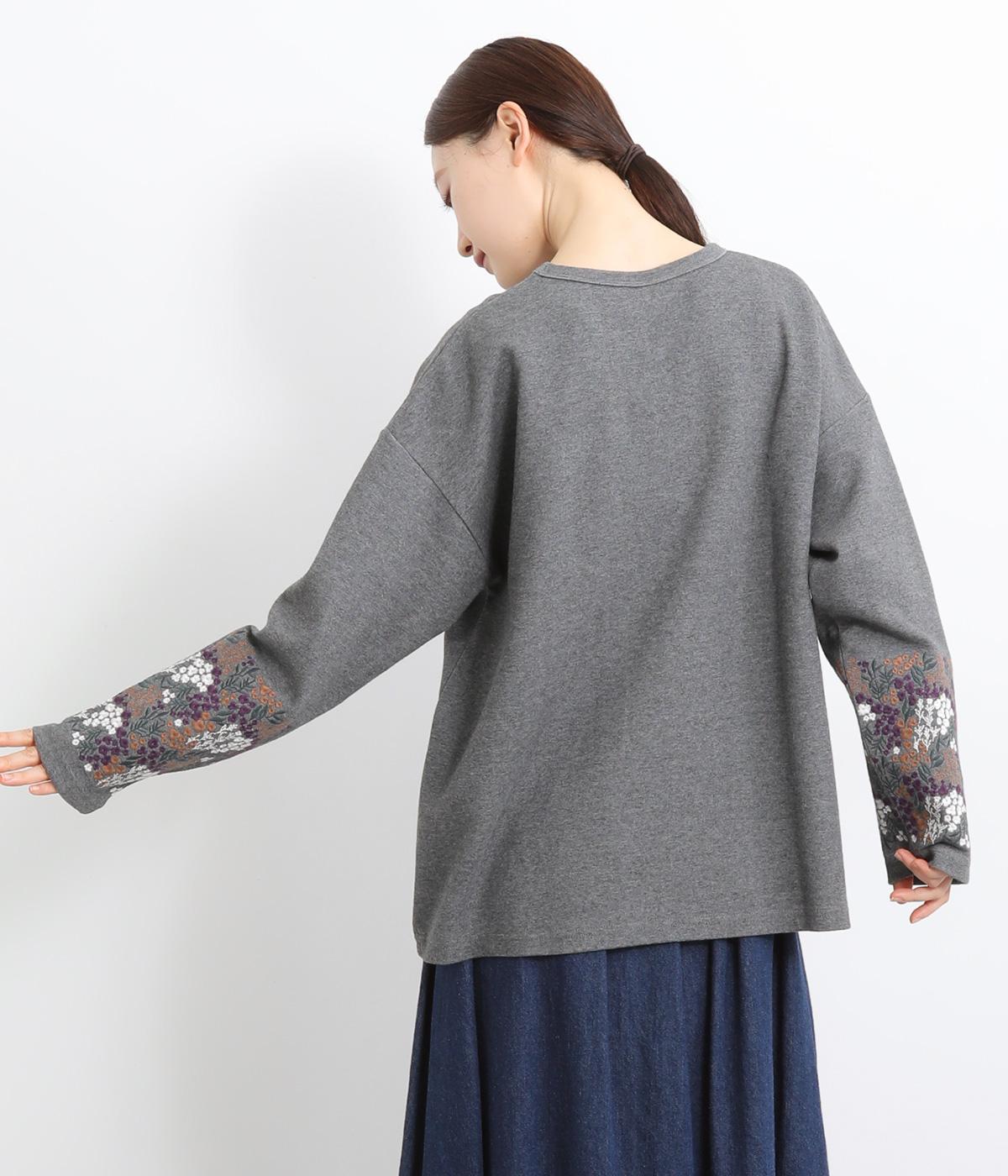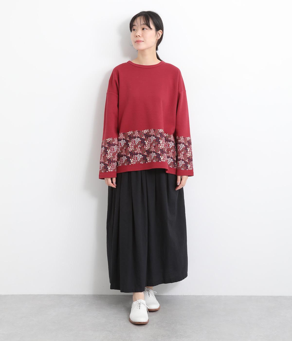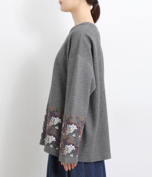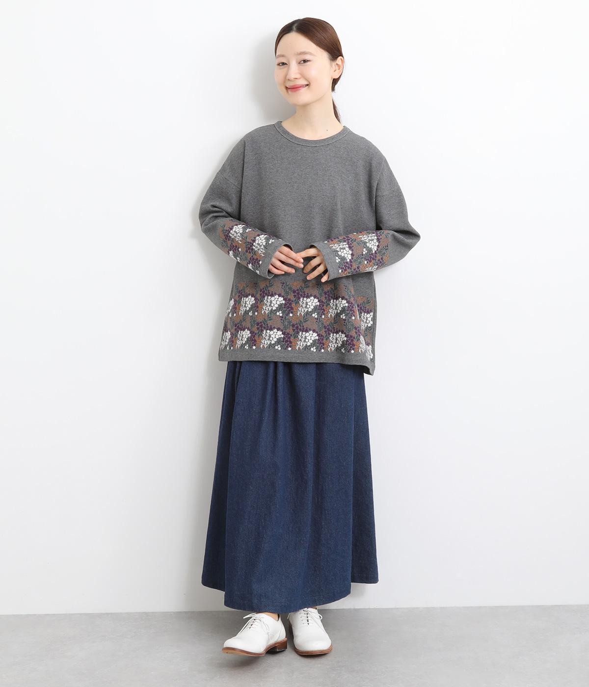 前身頃の裾と袖に、花畑のような繊細な刺しゅうをあしらったプルオーバー。アクセントになりつつも派手すぎないカラーリングで、着こなしを大人かわいく仕上げてくれます。ゆったりとした身幅と長めの着丈も、メリハリのある刺しゅうで間延びせずにすっきり見えするのが◎です。