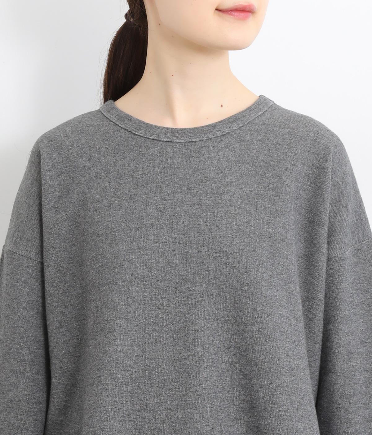 ふっくらとしたやわらかな肌触りと、シルエットをきれいに仕上げるハリ感が特徴のコットンポリエステル生地。ほどよい肉感があり、メイントップスとしてデイリーに着まわせる素材感です。