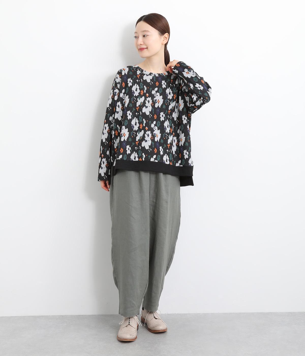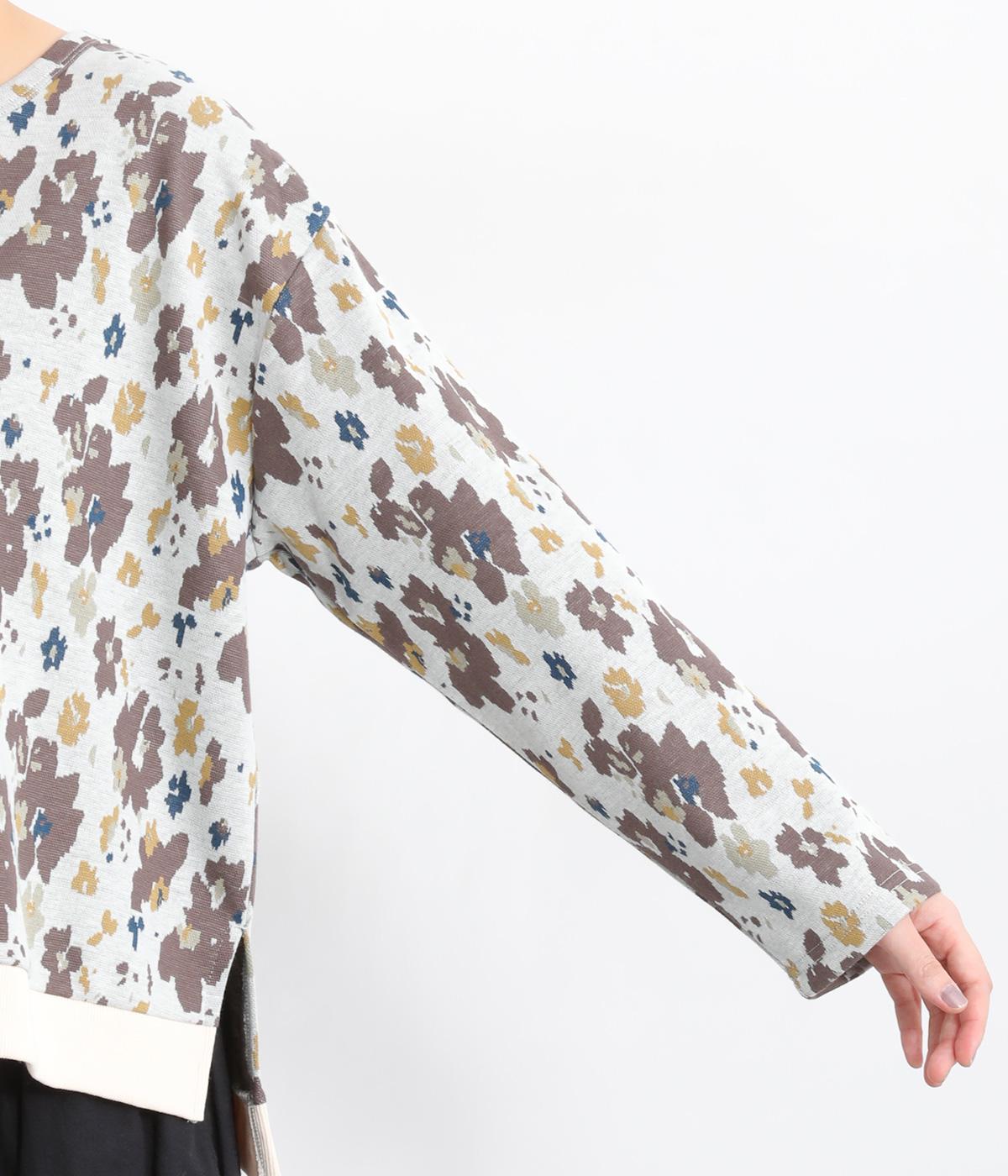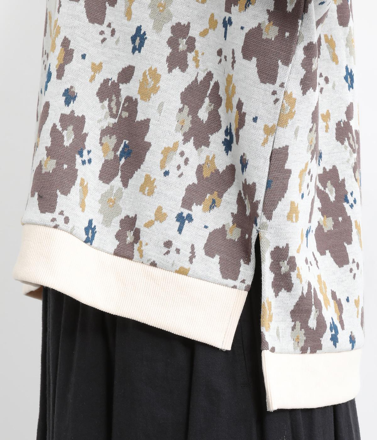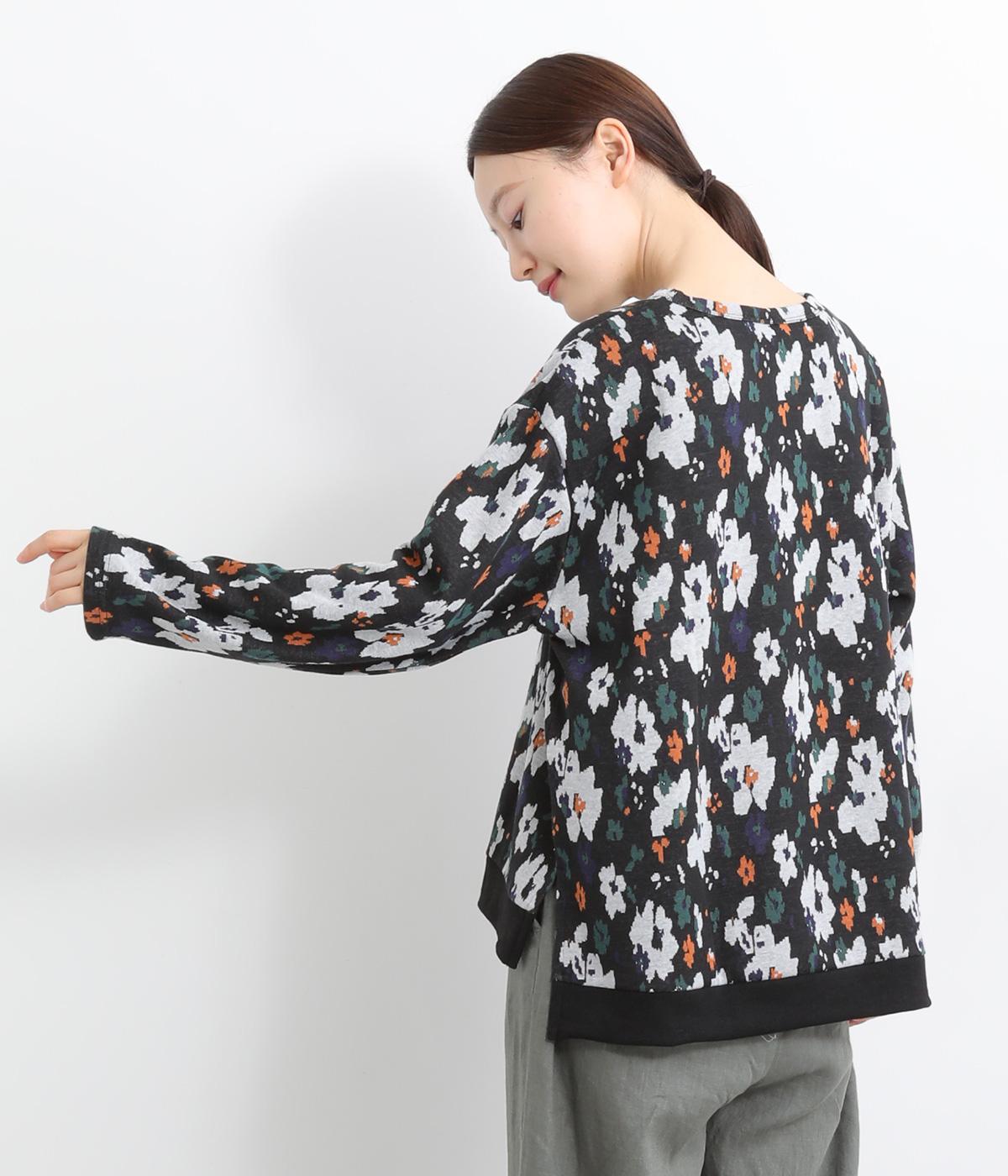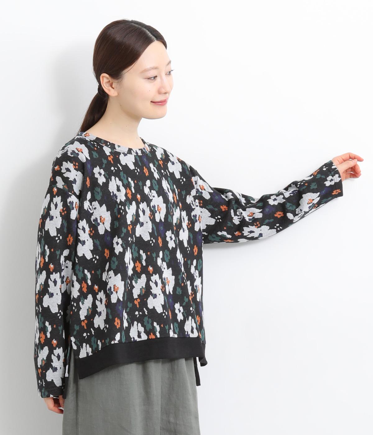 コーディネートのポイントになりつつも派手すぎない、シャレ感ただようフラワー柄プルオーバー。裾につけた無地のリブとサイドスリットで、すっきりとした抜け感を加えています。後ろの着丈は長めに設定してヒップまわりをカバー。パンツにもスカートにも合わせやすく、華やかな着こなしを即完成させる一着です。