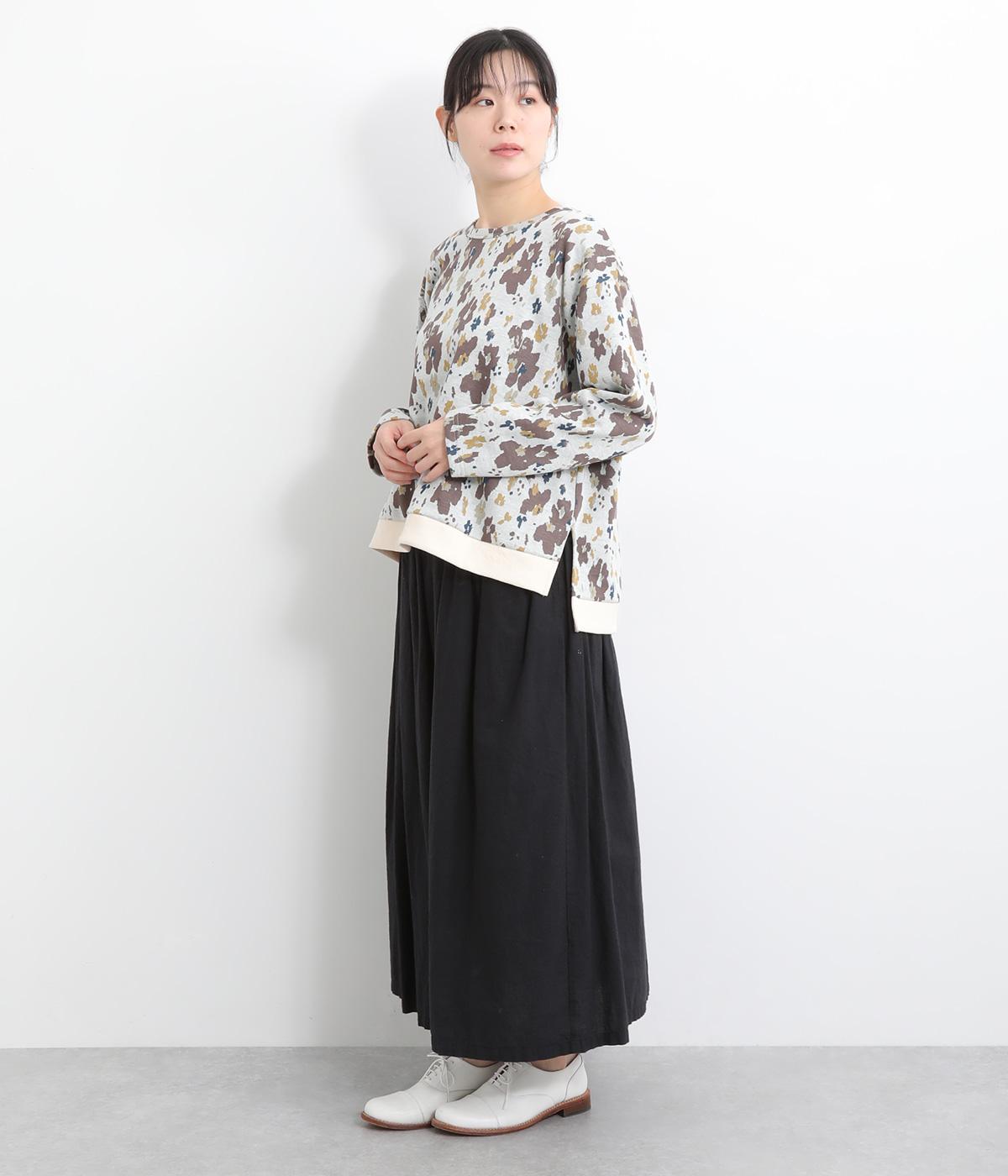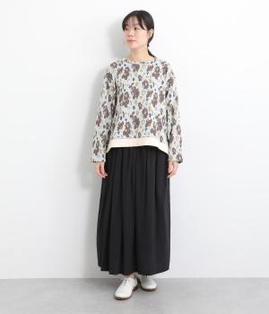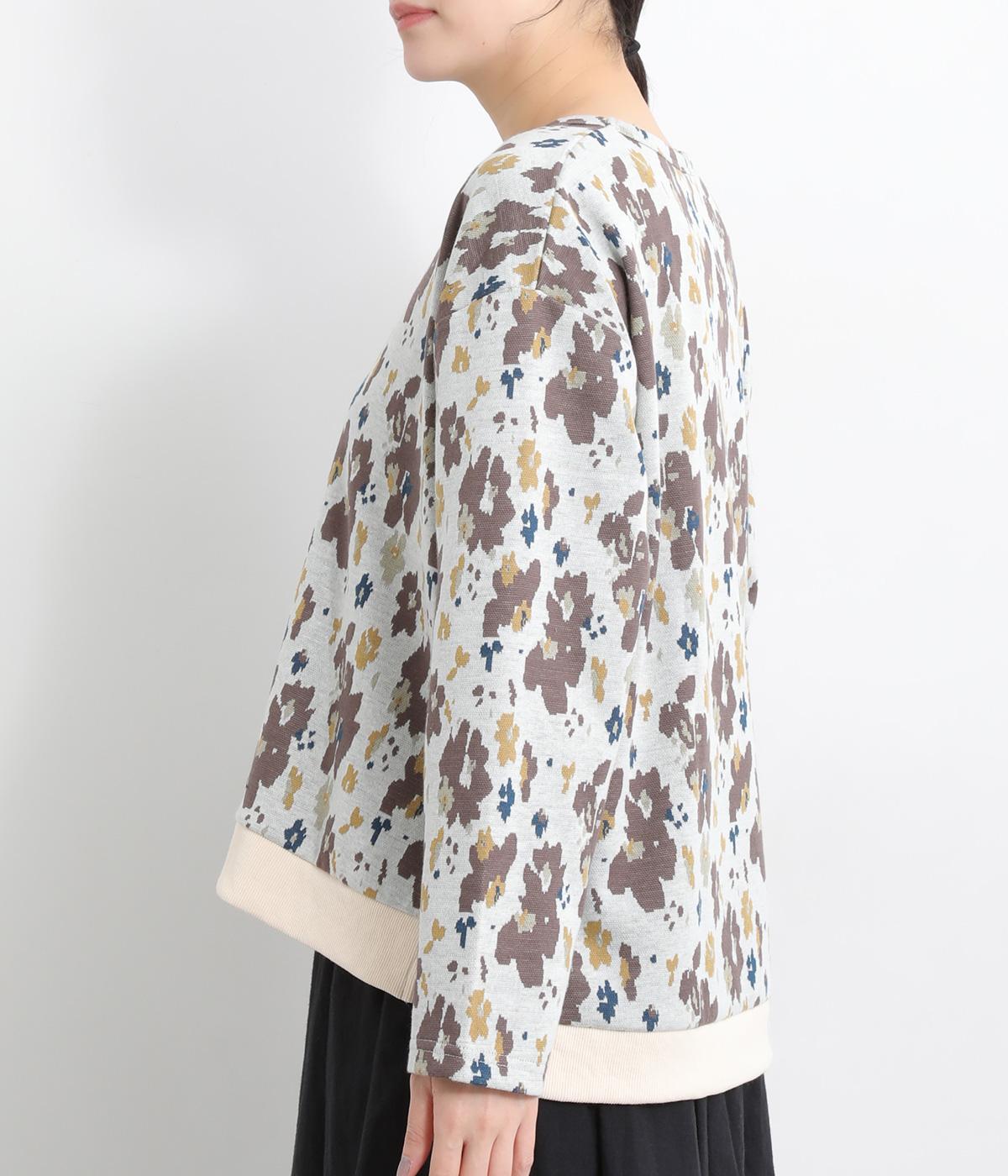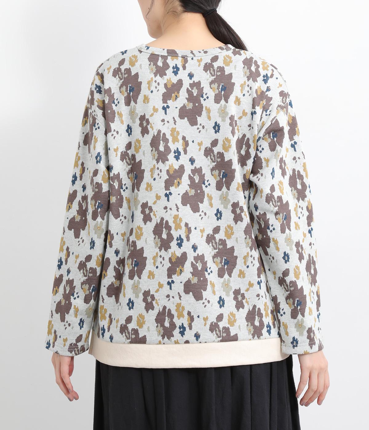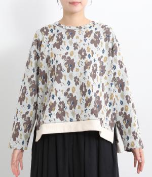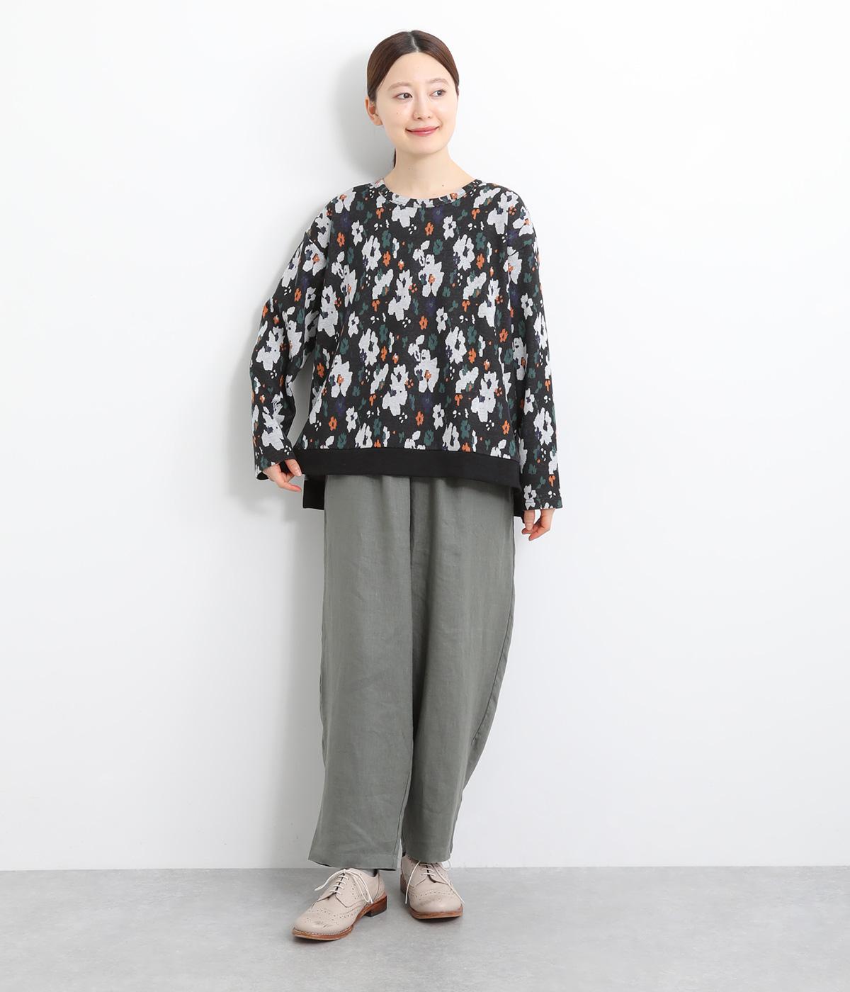 コーディネートのポイントになりつつも派手すぎない、シャレ感ただようフラワー柄プルオーバー。裾につけた無地のリブとサイドスリットで、すっきりとした抜け感を加えています。後ろの着丈は長めに設定してヒップまわりをカバー。パンツにもスカートにも合わせやすく、華やかな着こなしを即完成させる一着です。