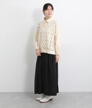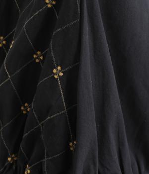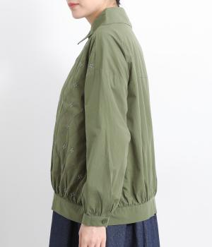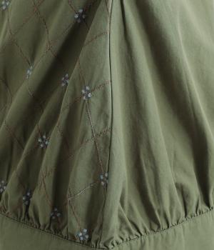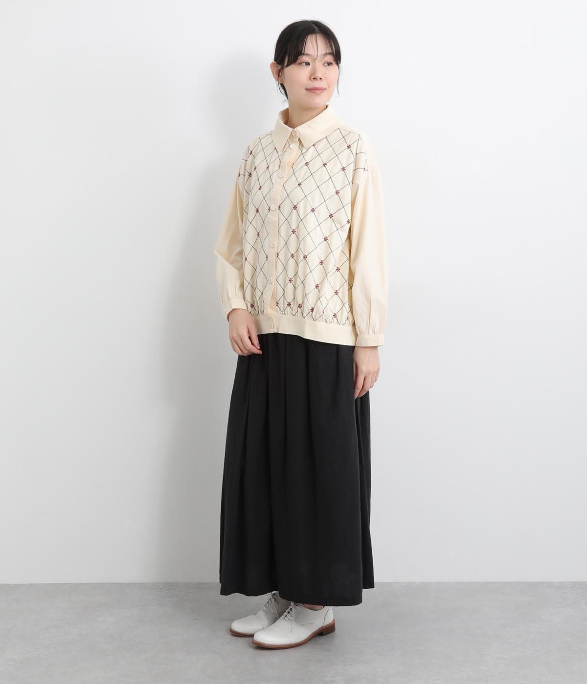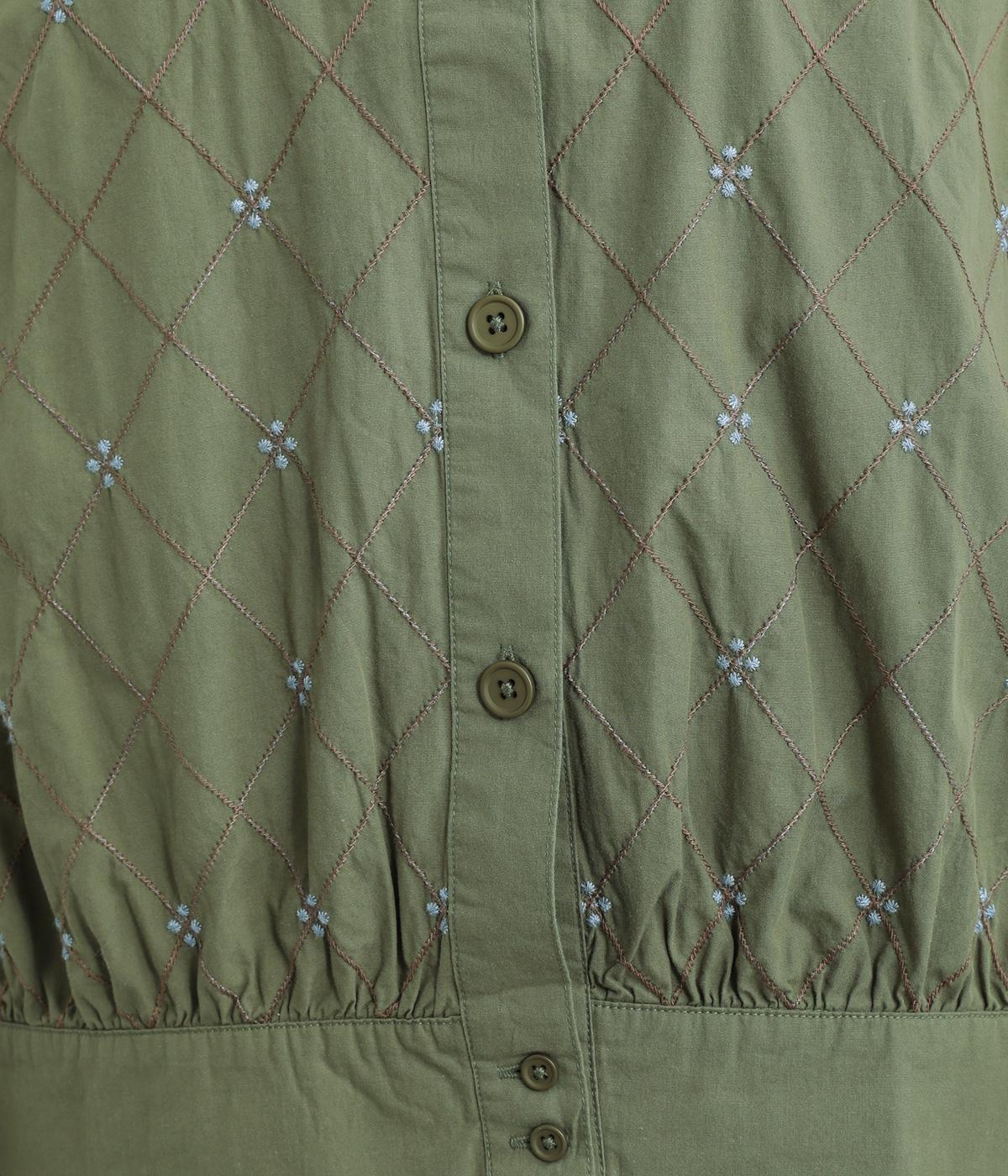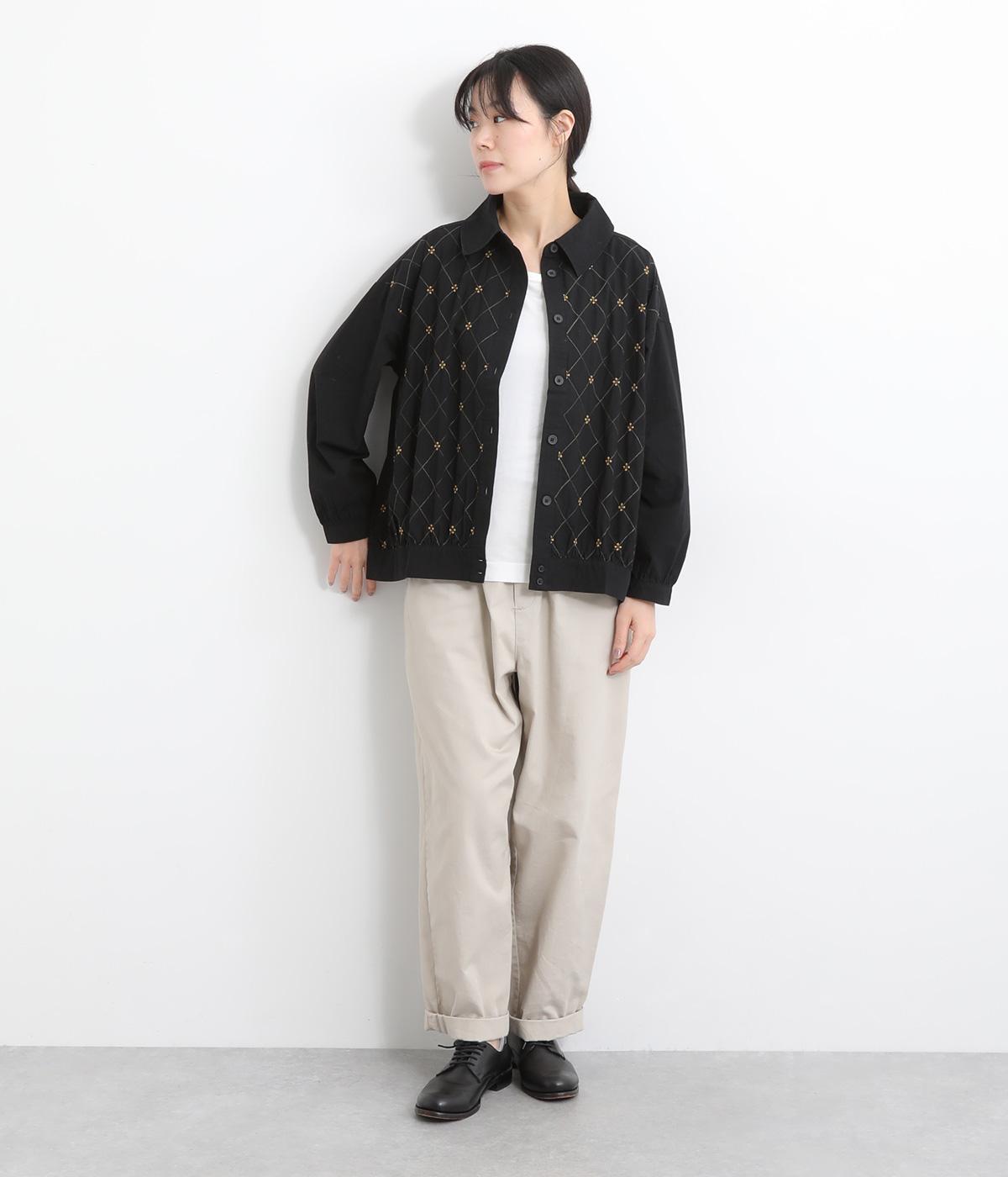 ややハリのあるやわらかなコットン布帛生地で仕立てています。とても軽くさらっと羽織れるので、まだ暑さの残る季節の変わり目にも◎。格子柄にお花を組み合わせた刺しゅうをあしらっています。