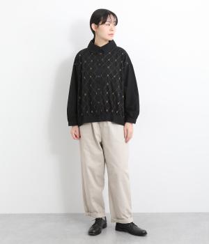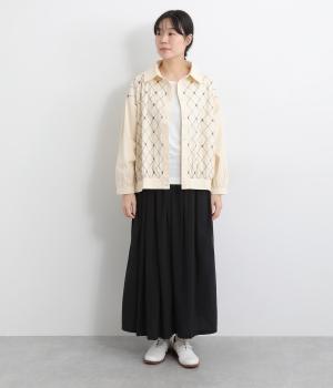 前身頃の繊細な刺しゅうが女性らしさを引き立てるカーディガン。裾にギャザーを入れて、ふわりとした丸みのあるシルエットに仕上げています。首元にやさしく添う大きめの襟がアクセントに。腰にかかる絶妙な着丈で、さまざまなボトムスにバランスよく合わせやすいのもグッドです。