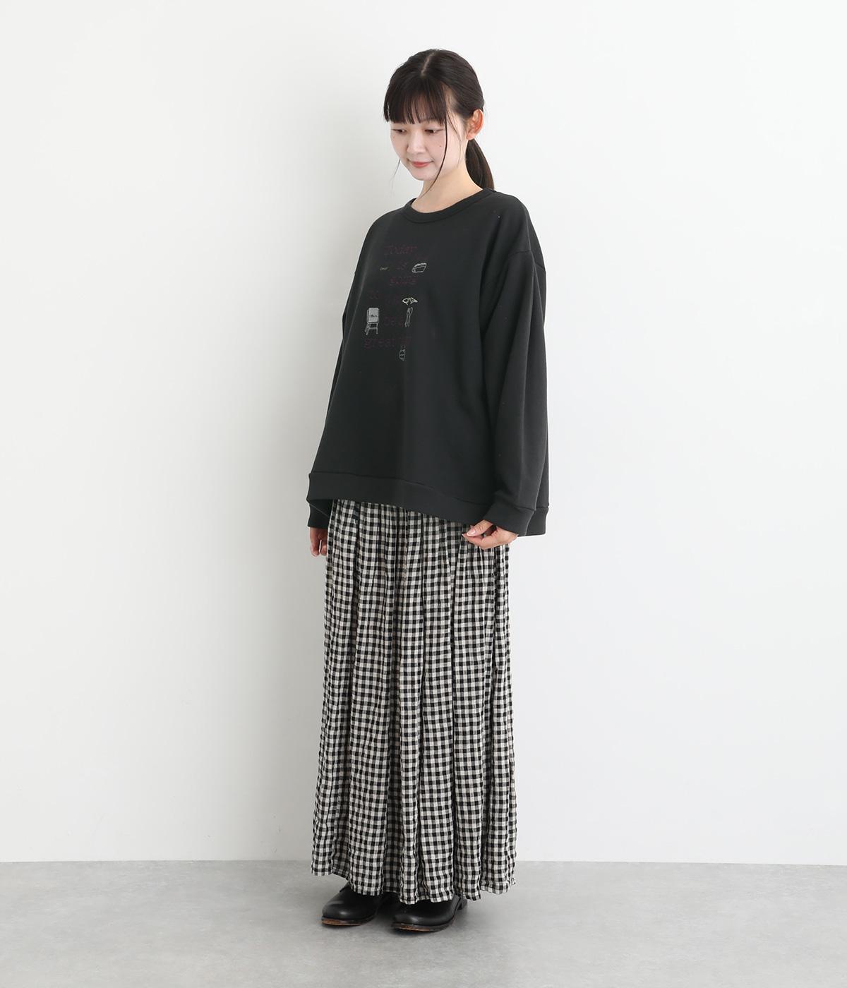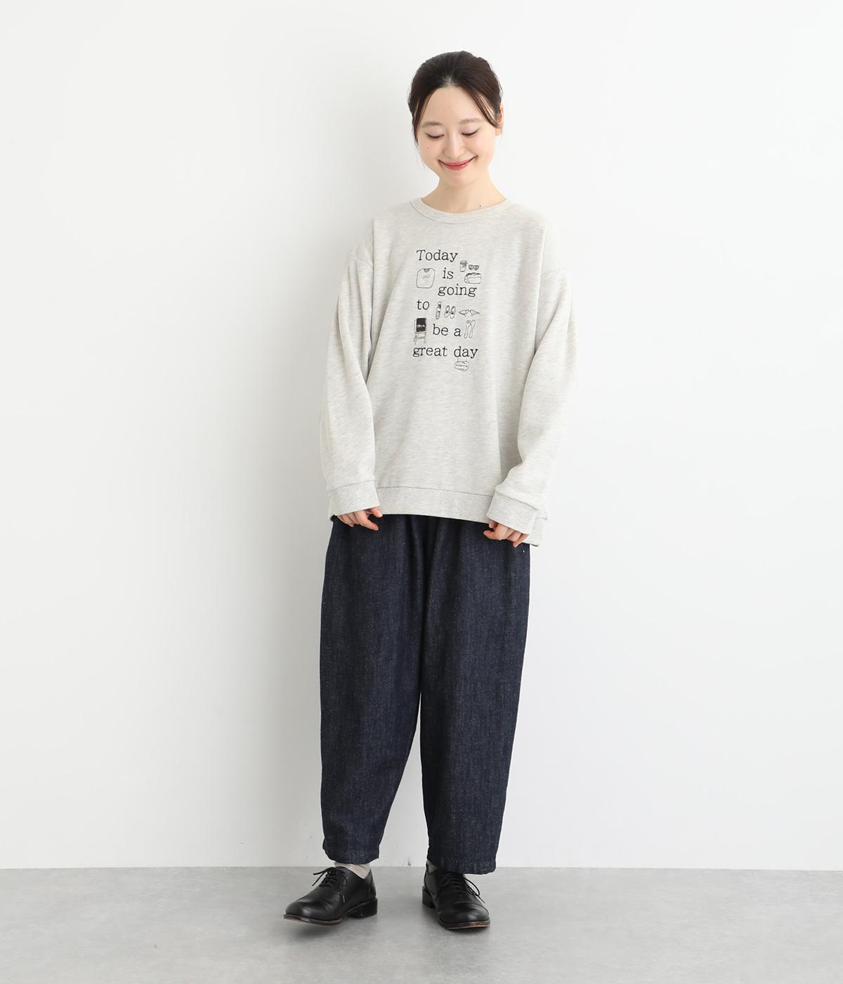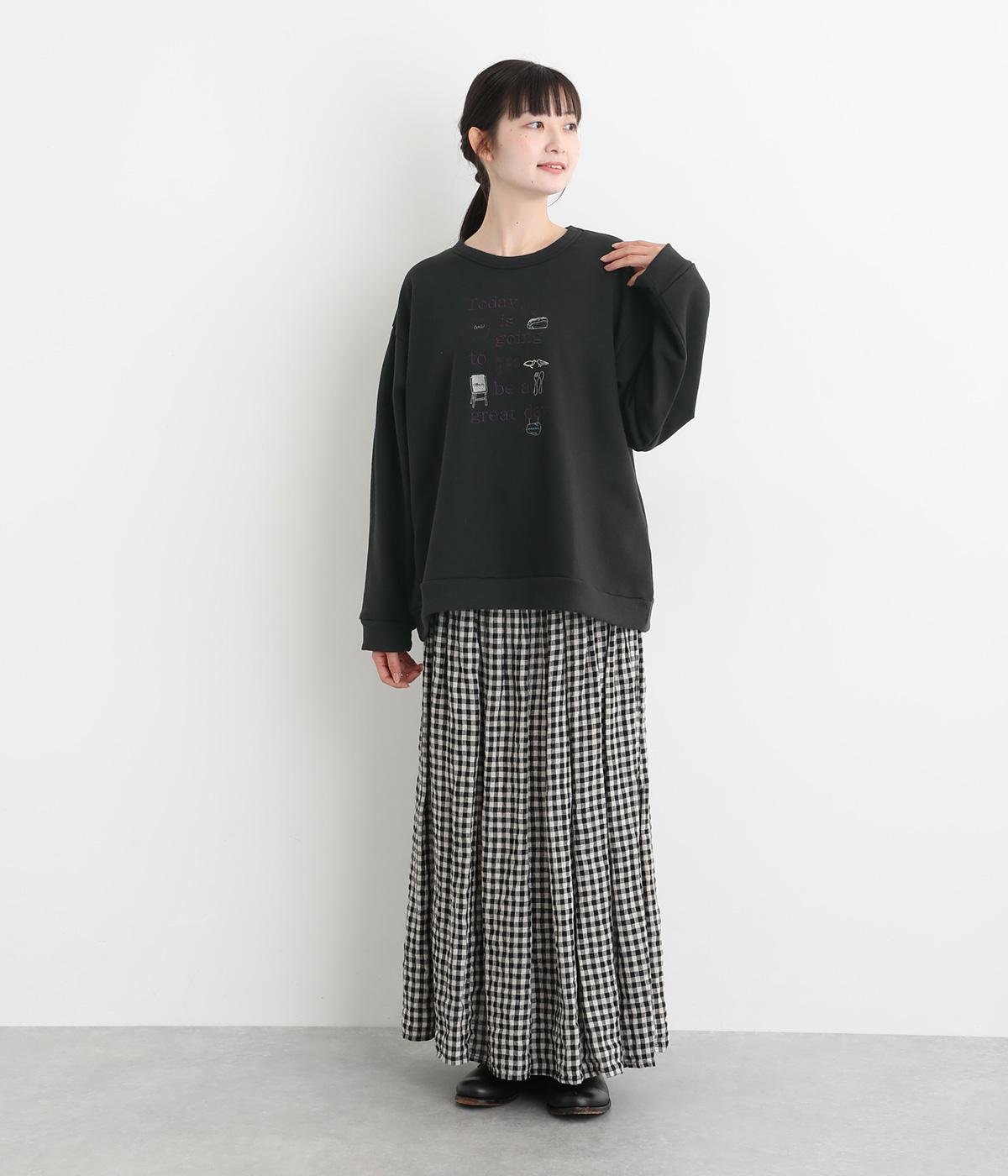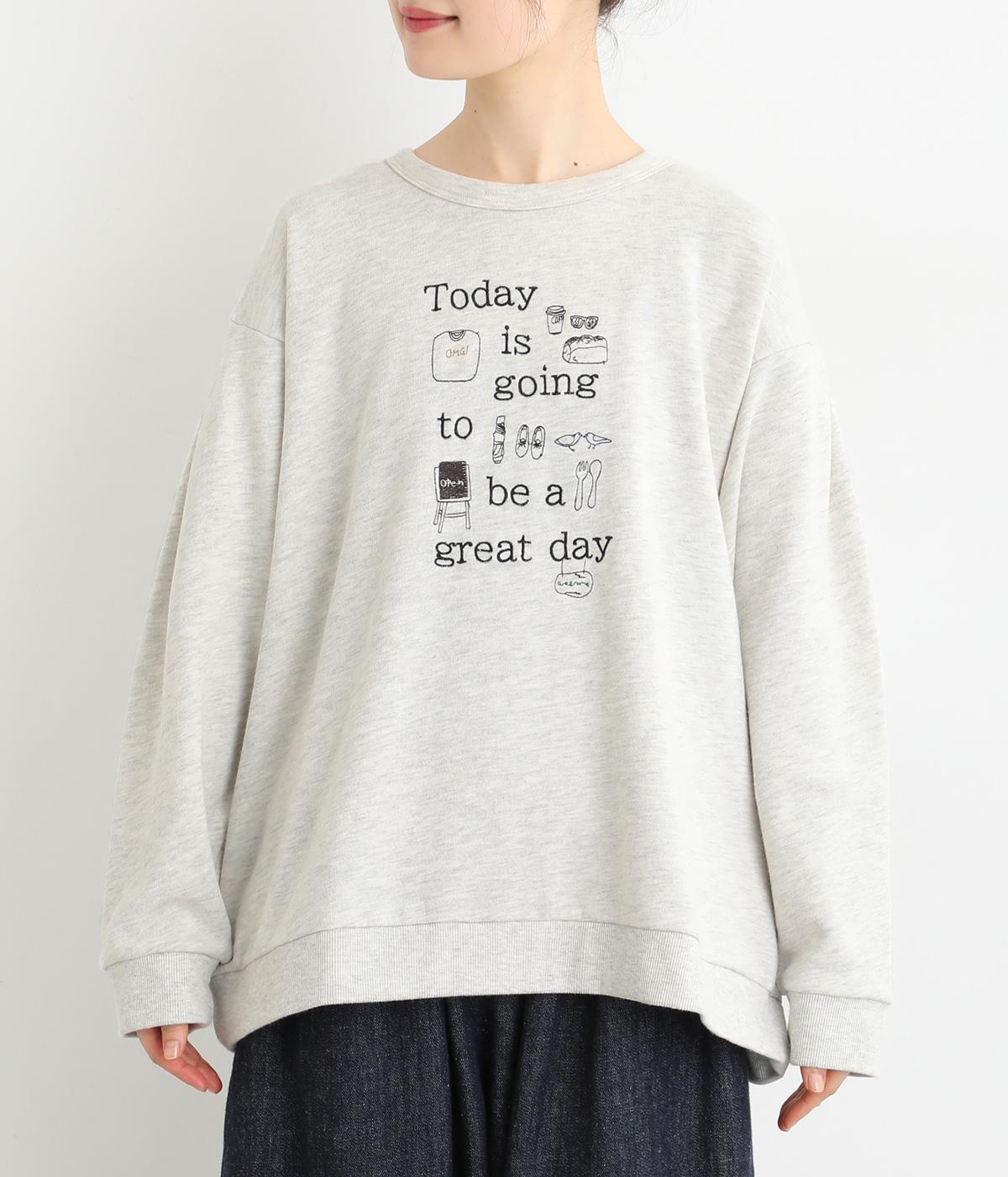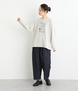 ポジティブなメッセージと愛らしいアイテムが前面に刺しゅうされた優しい表情のプルオーバーです。ゆったりした着心地がリラックスした雰囲気を演出します。身に纏うとふわりと心が軽くなるような一枚です。