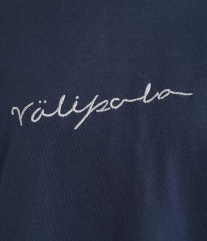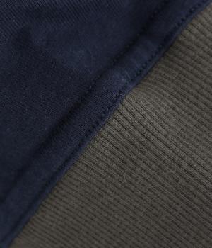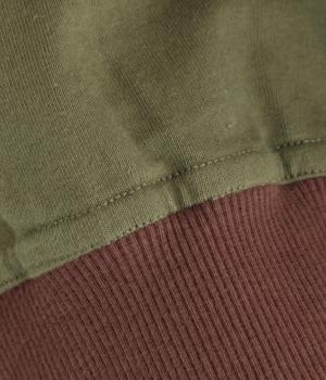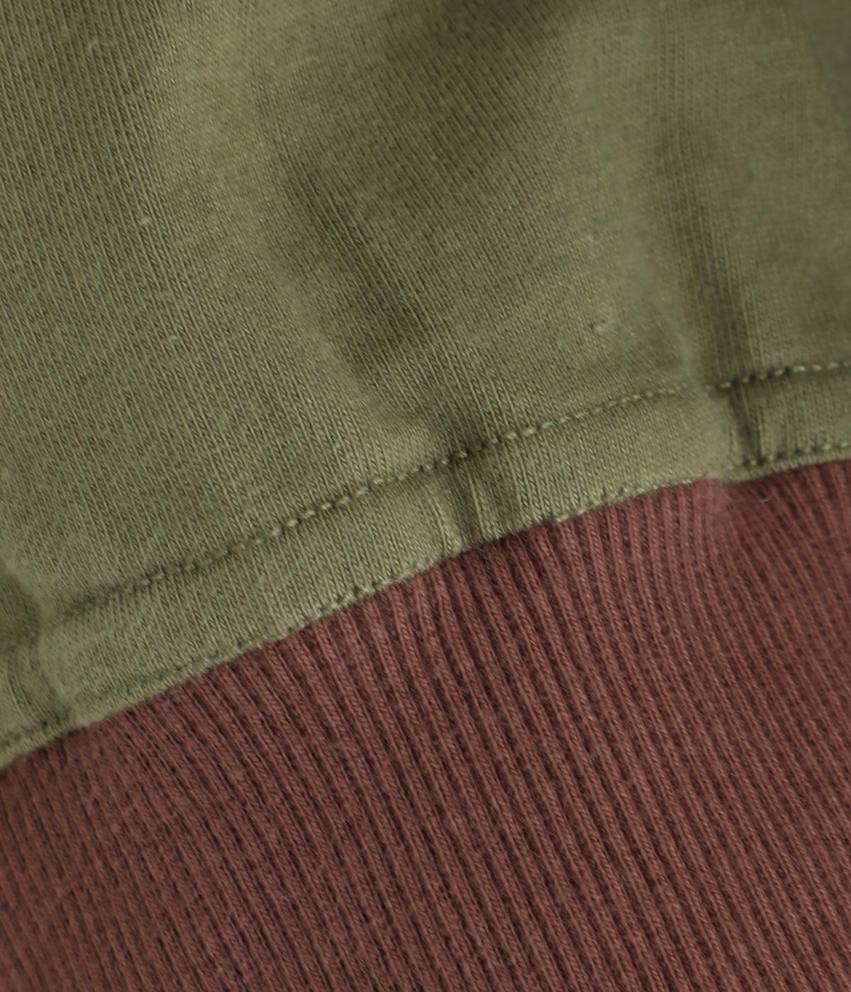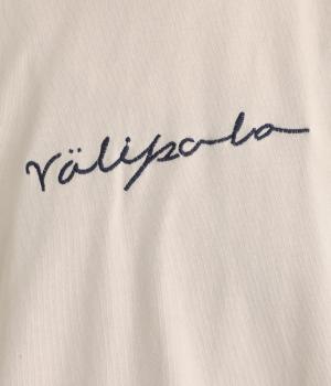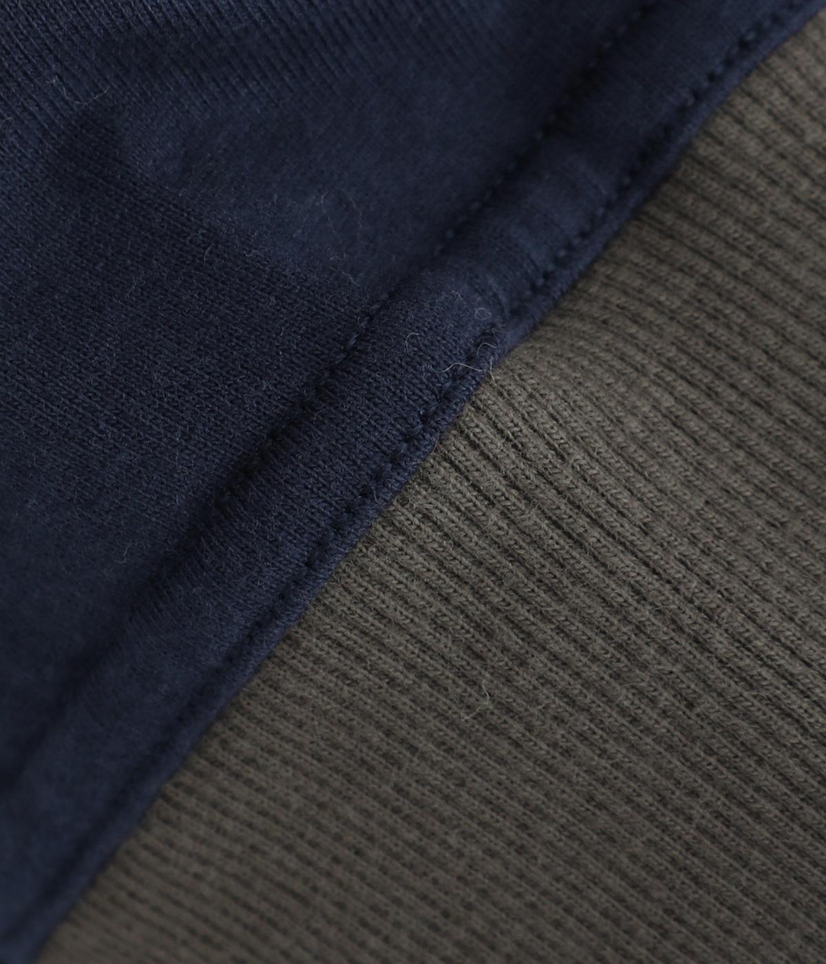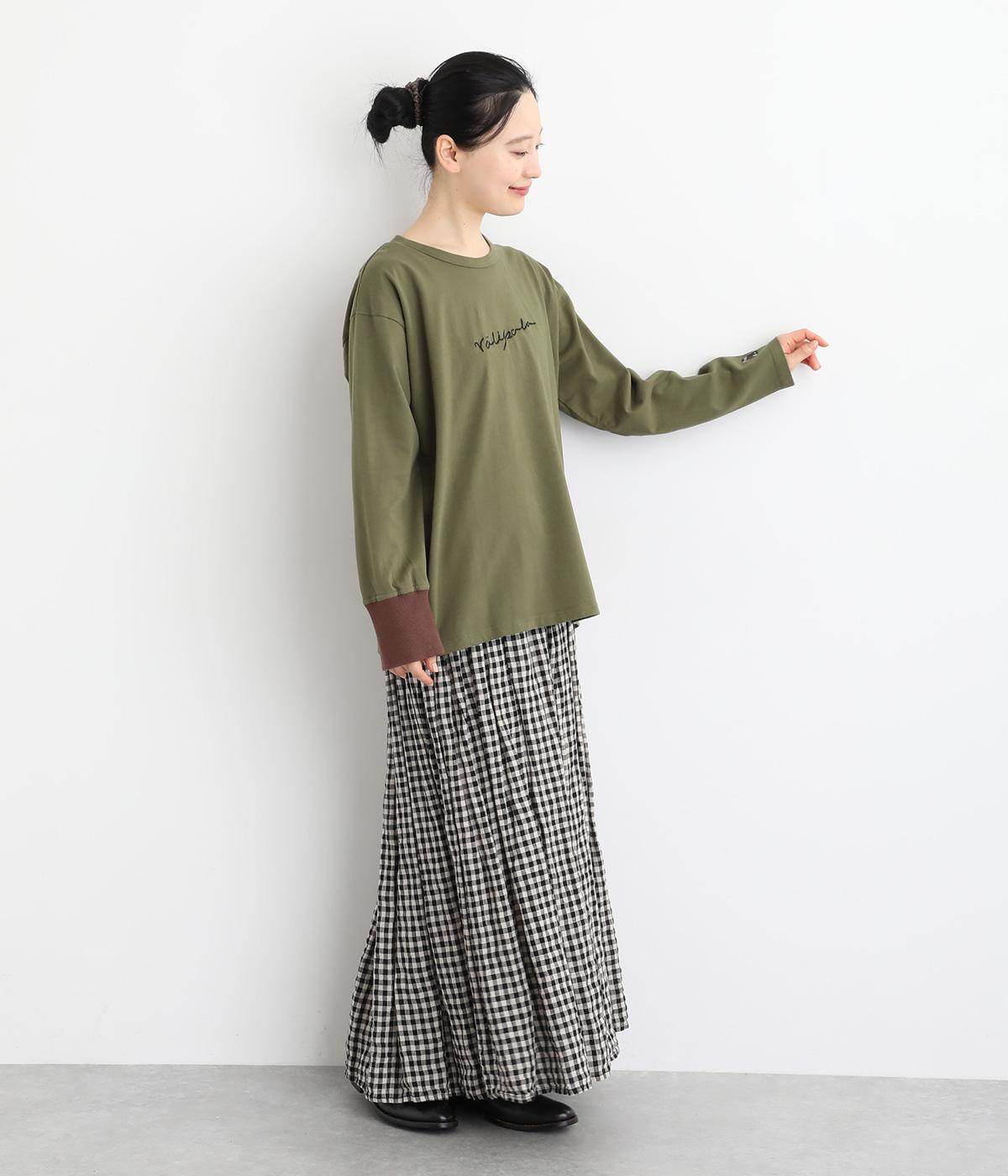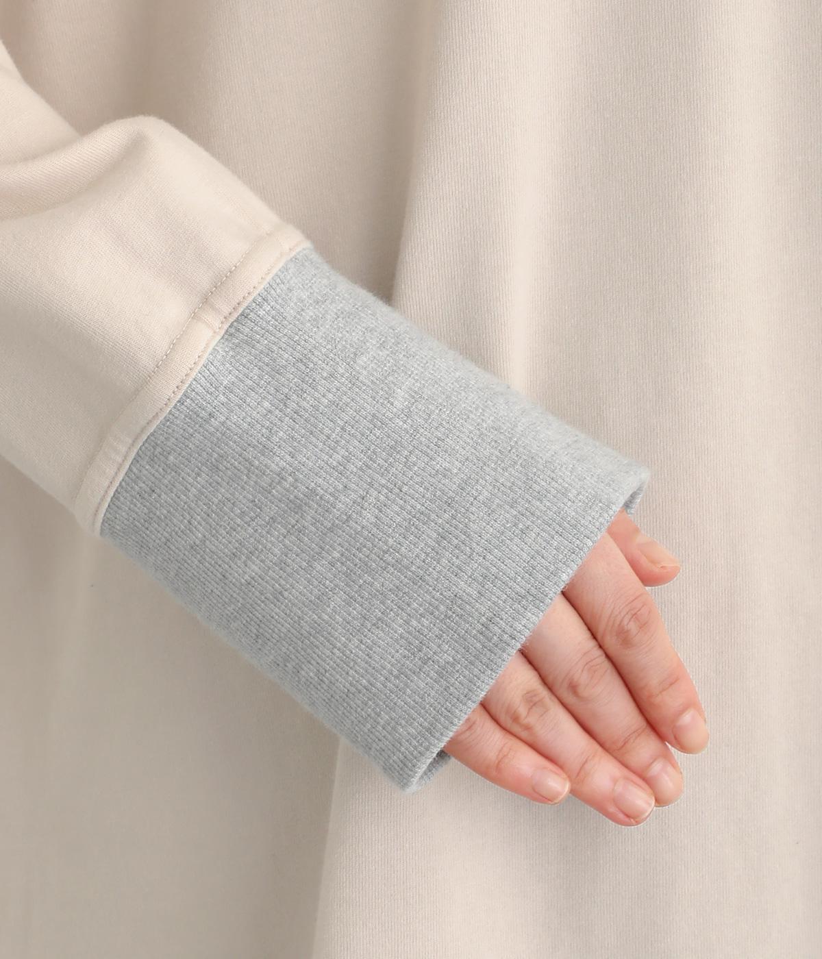 片方だけ太いリブ仕様の袖口が目をひくデザイン。もう片方には、ほんわかした雰囲気のおやつ模様の刺しゅうをほどこしました。胸にもロゴ刺しゅうを入れ、シンプルなシルエットに個性が散りばめられた一枚です。
