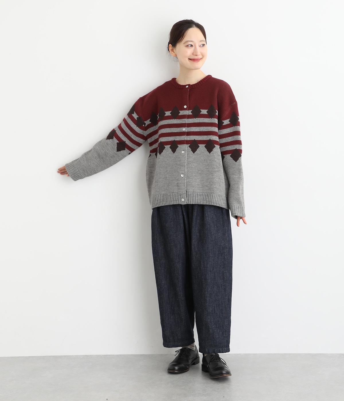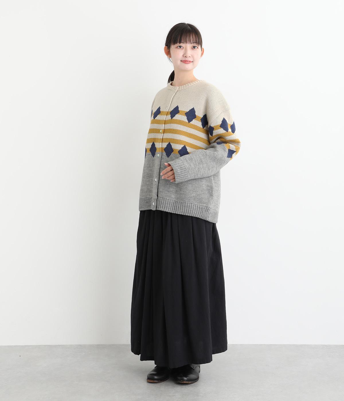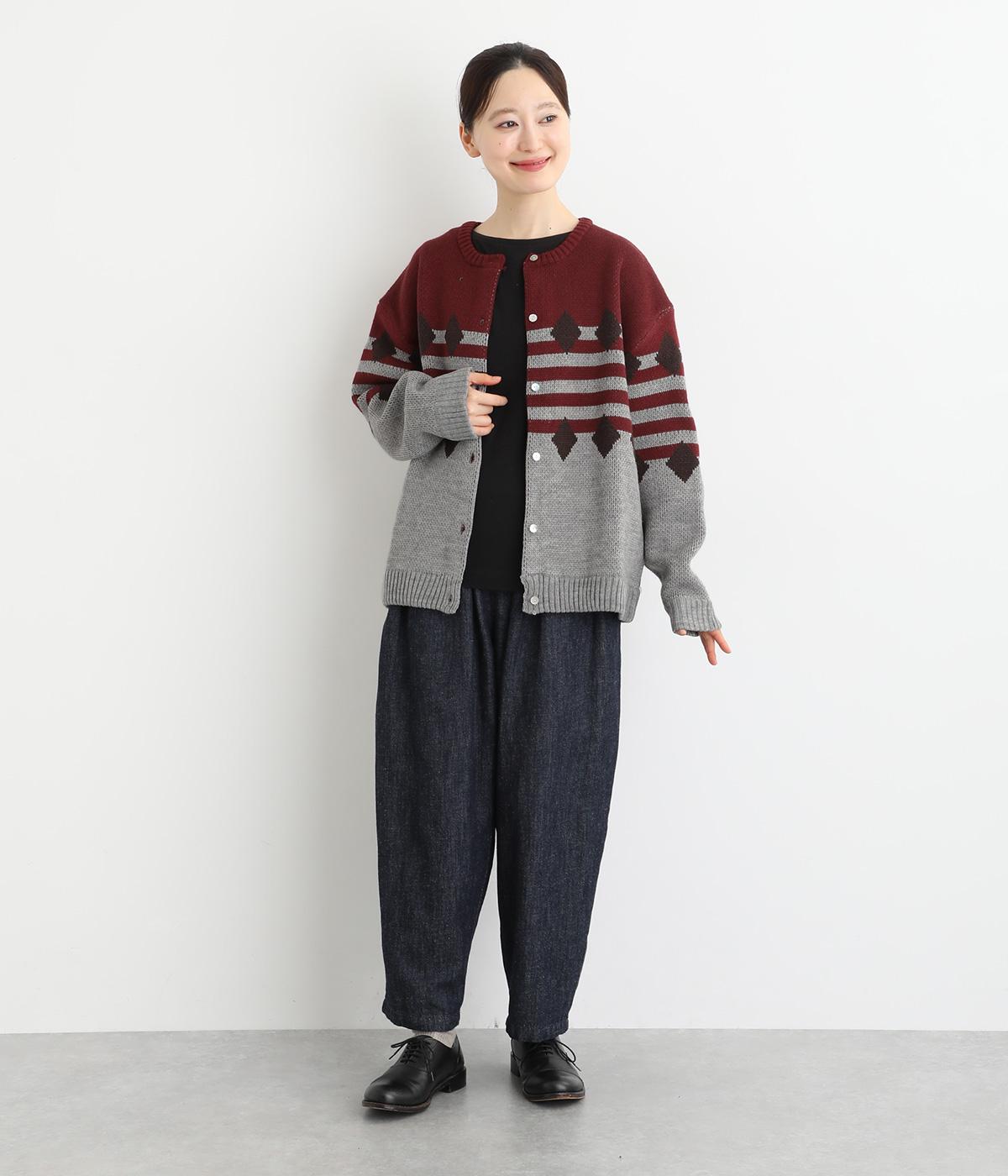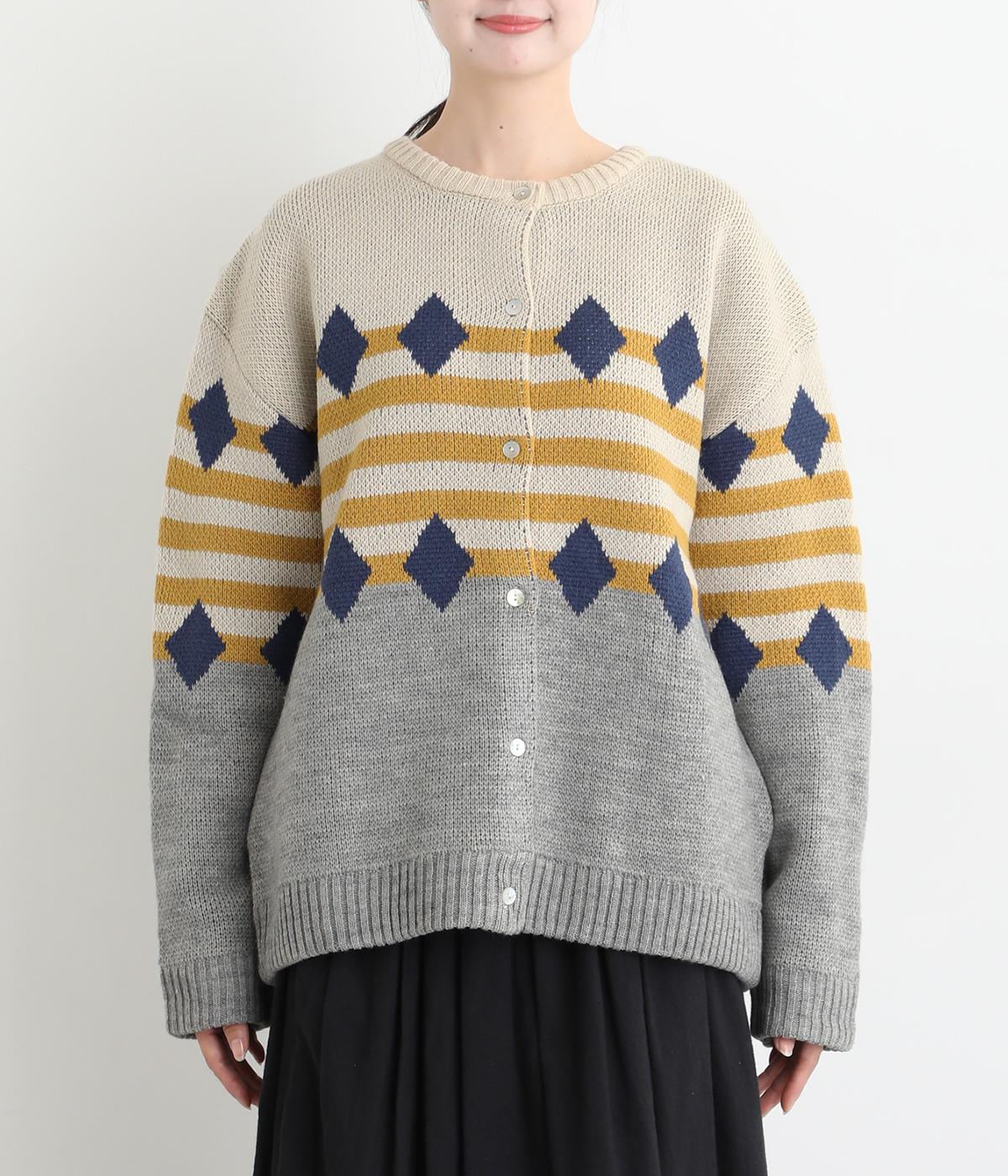 個性的ながらもノスタルジックな雰囲気のあるジャカードカーディガンです。長めの丈でリラックス感ある着心地で、体型カバーも叶えます。すっきりしたクルーネックからタートルや襟をのぞかせた着こなしも◎。