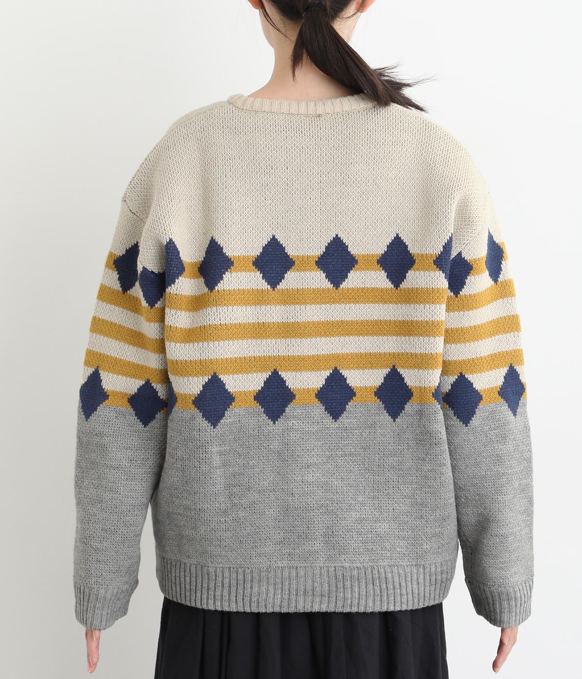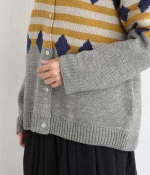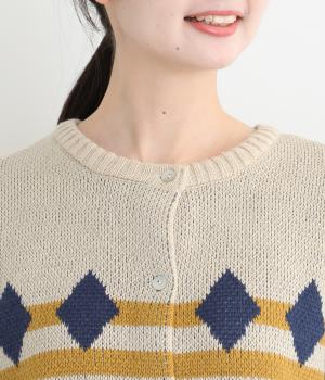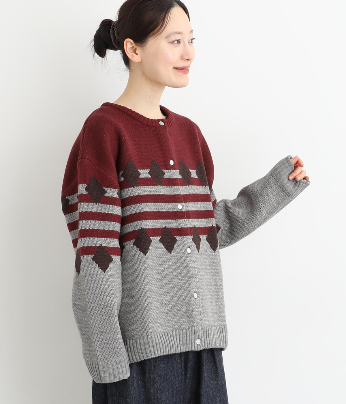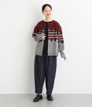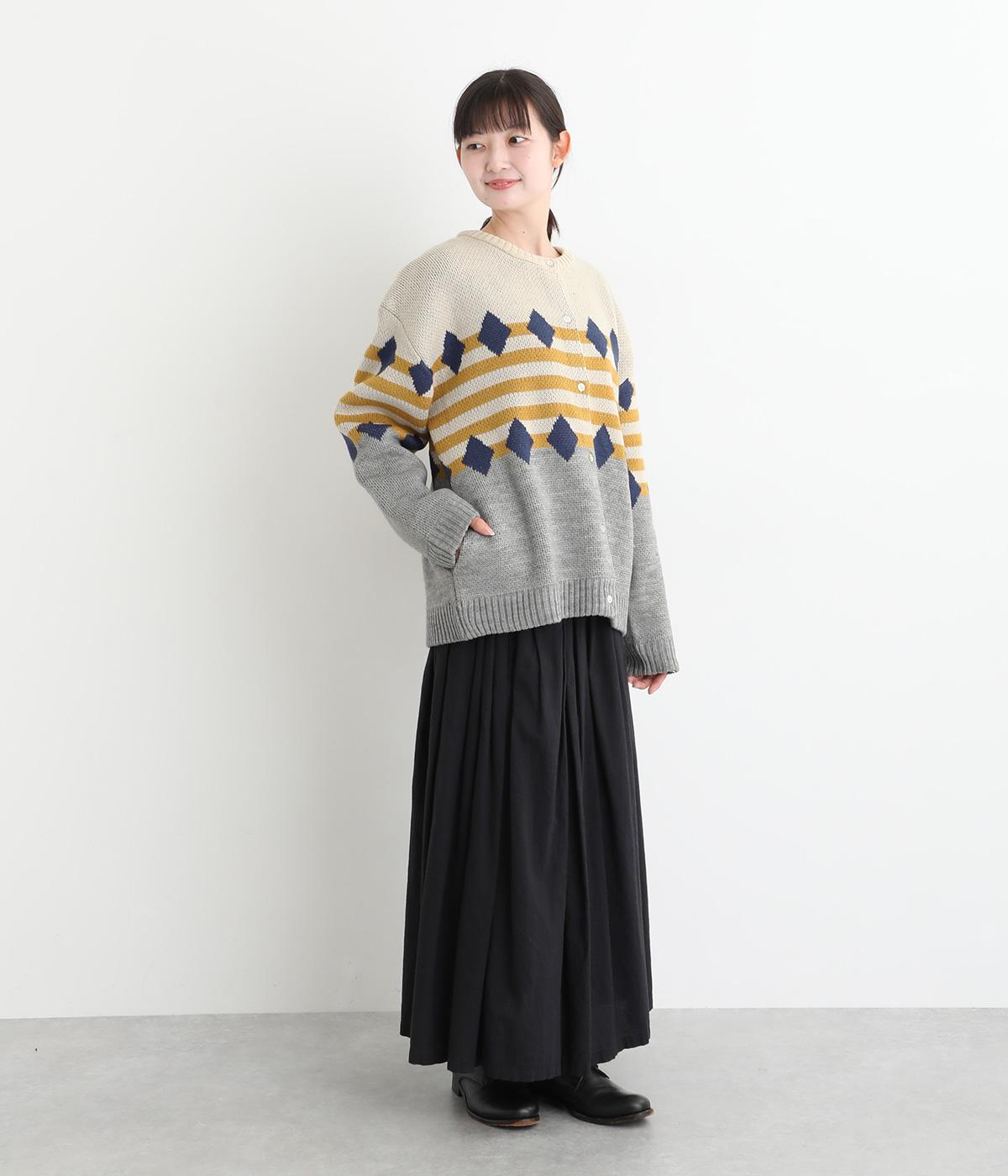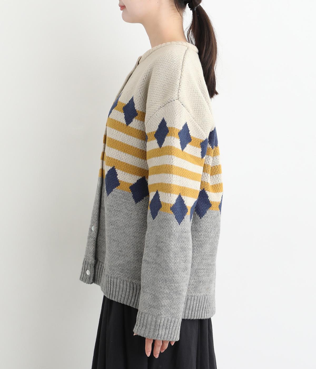 個性的ながらもノスタルジックな雰囲気のあるジャカードカーディガンです。長めの丈でリラックス感ある着心地で、体型カバーも叶えます。すっきりしたクルーネックからタートルや襟をのぞかせた着こなしも◎。