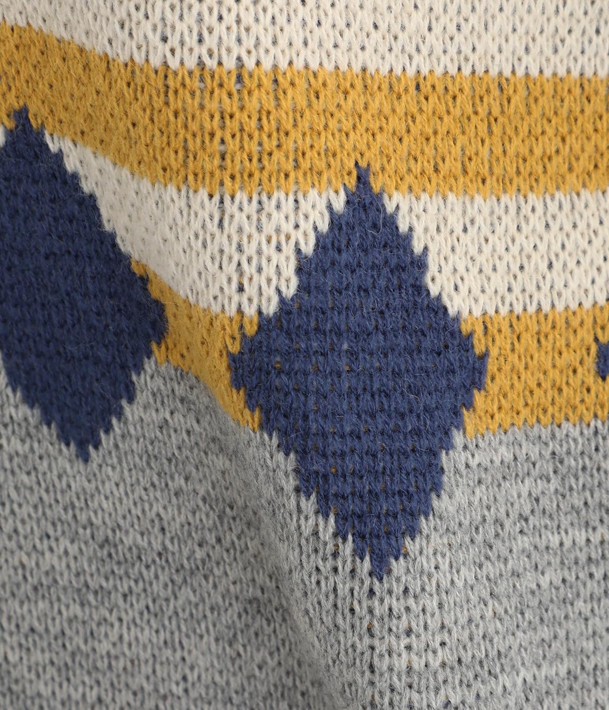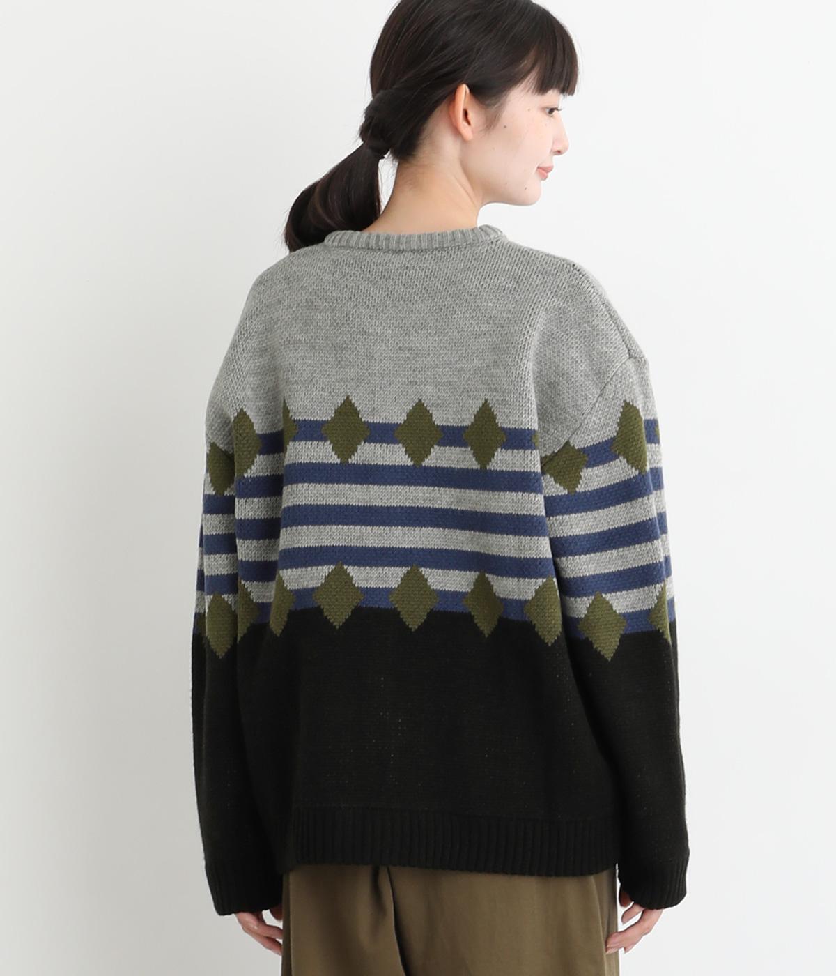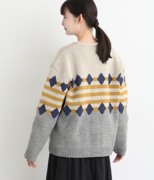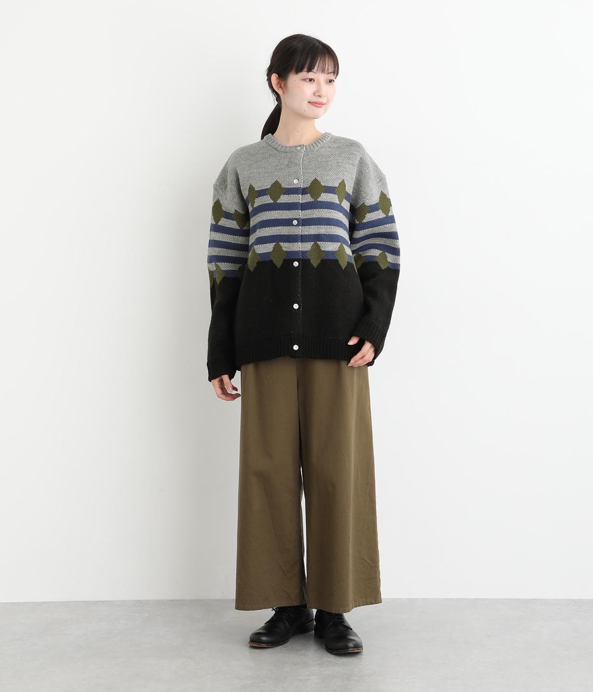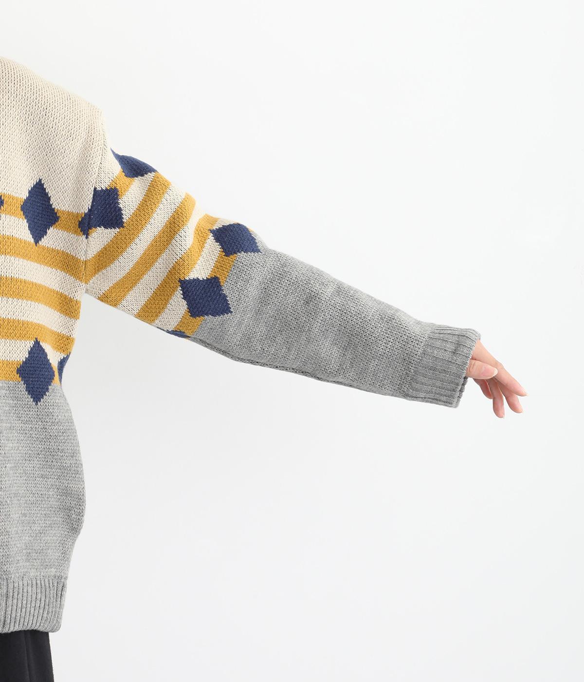 個性的ながらもノスタルジックな雰囲気のあるジャカードカーディガンです。長めの丈でリラックス感ある着心地で、体型カバーも叶えます。すっきりしたクルーネックからタートルや襟をのぞかせた着こなしも◎。