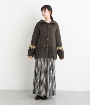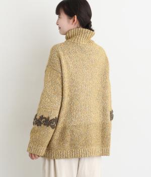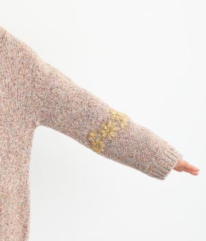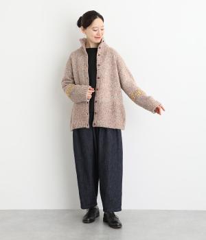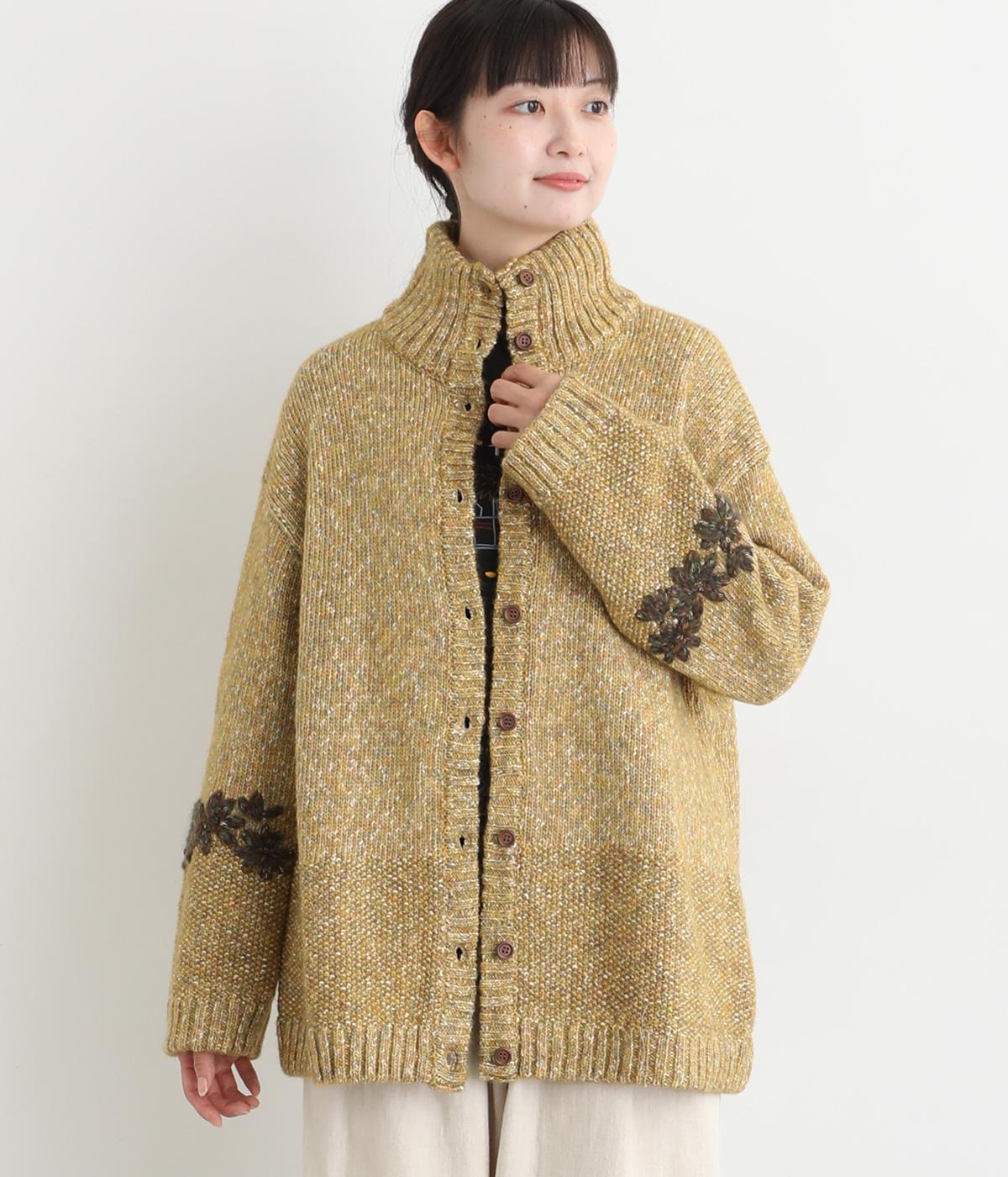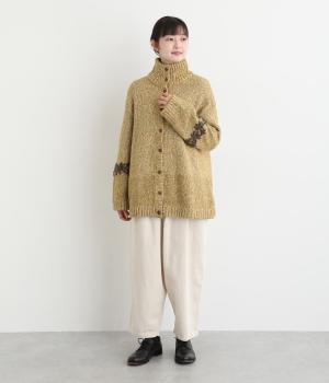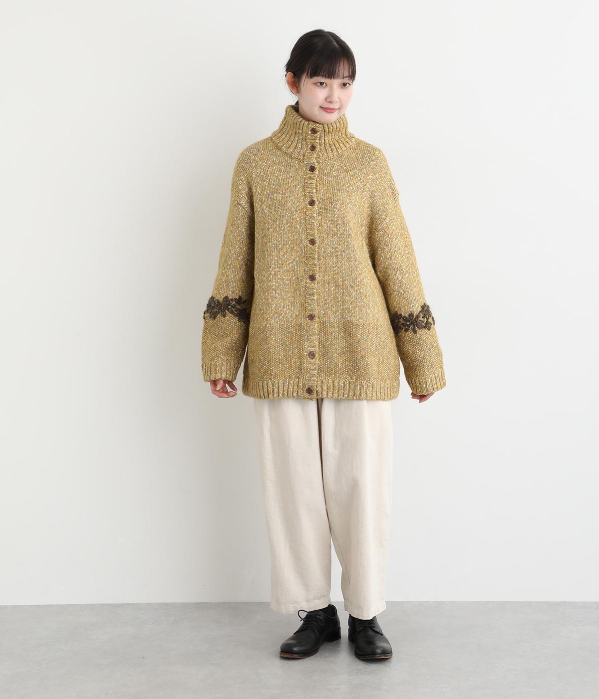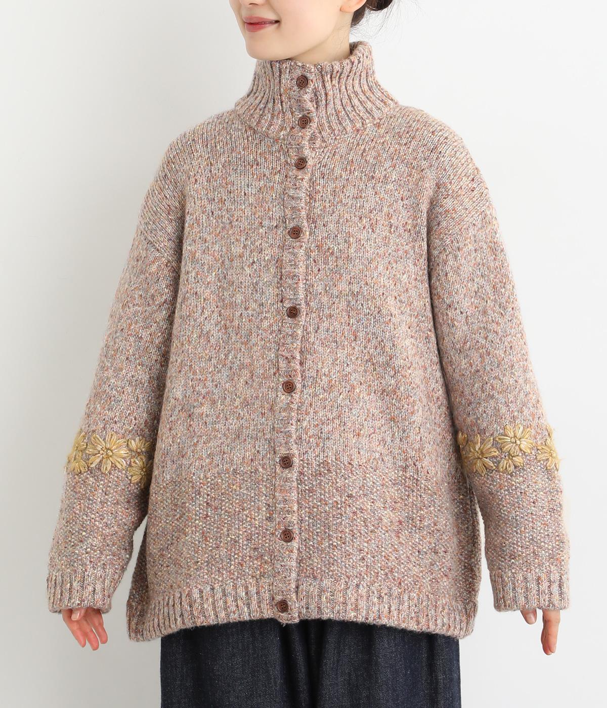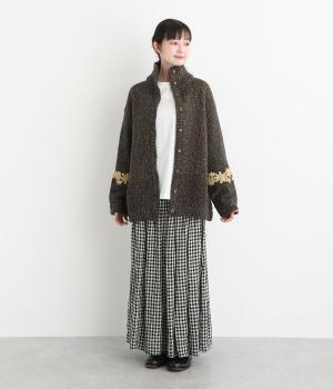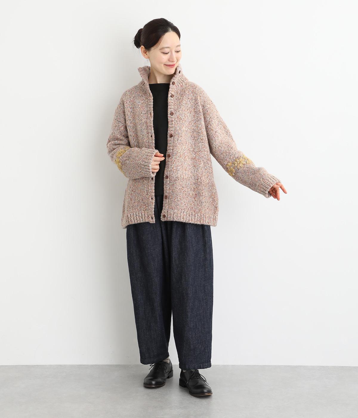 袖にぐるりと入れた花柄刺しゅうがデザインのポイントになっています。ハイネックがあたたかさをキープしながら、顔まわりをすっきり見せてくれます。サラッと羽織るだけでサマになる一枚です。