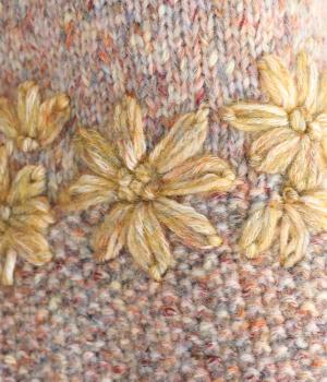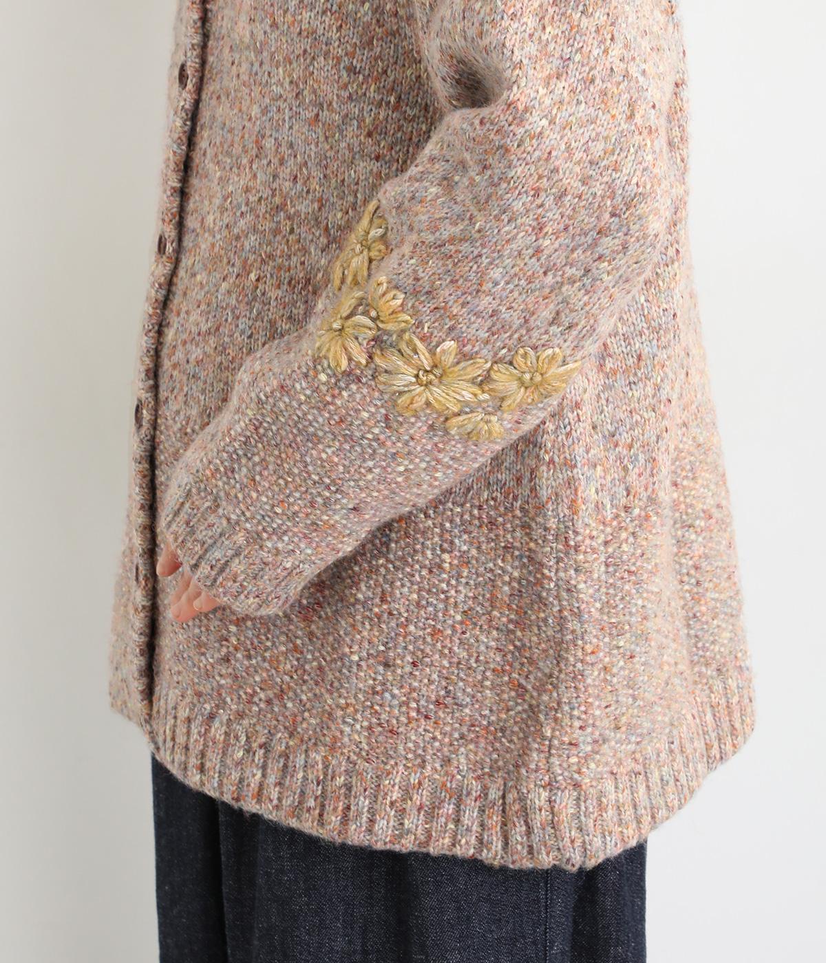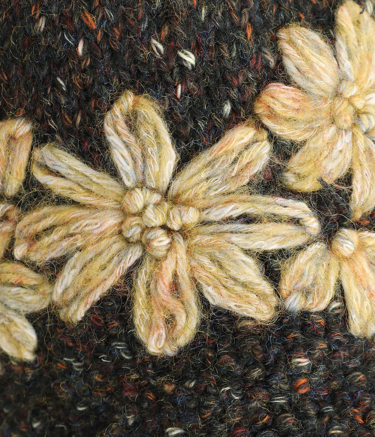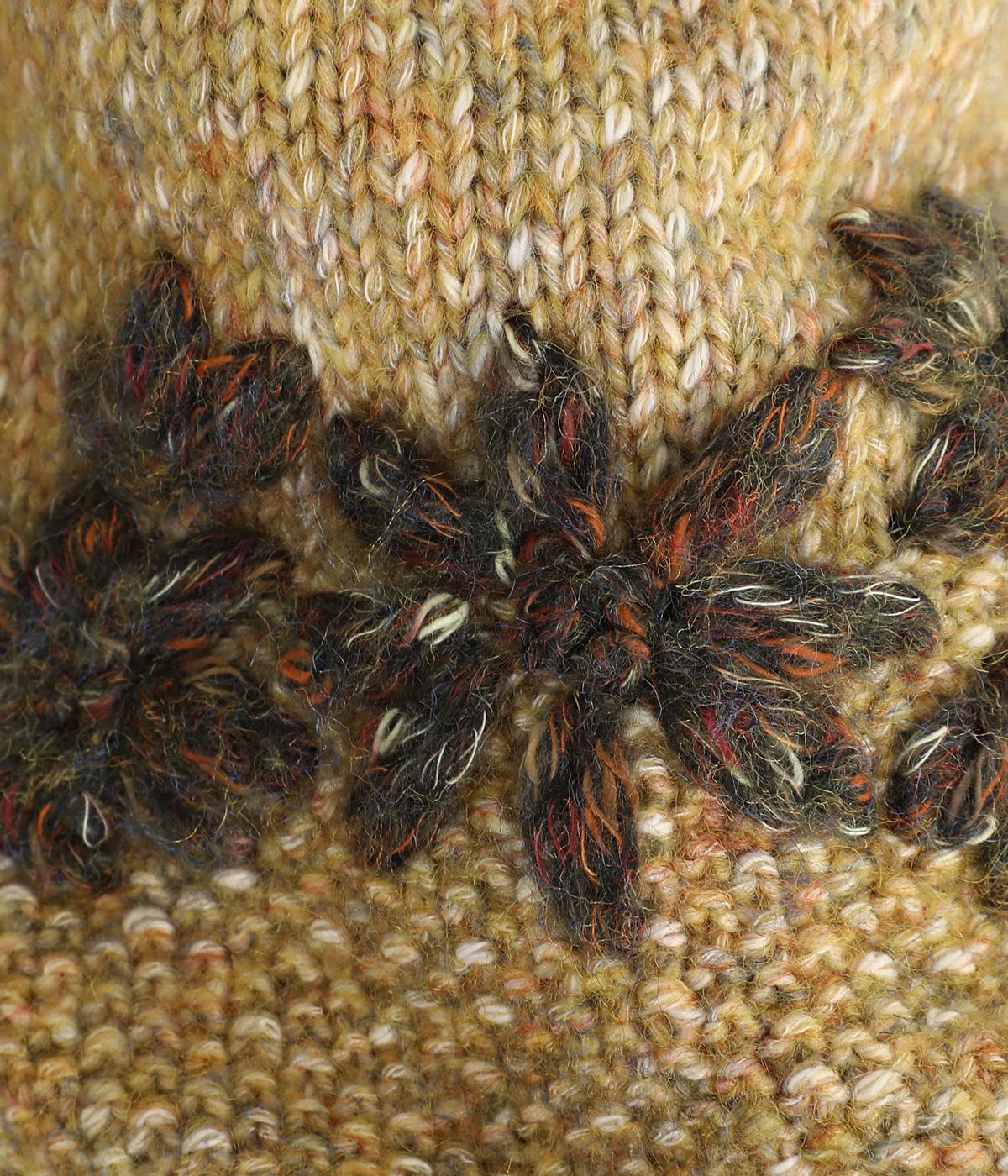 しっかりしたボリュームで存在感がありながらもちくちくしにくく、デイリーに取り入れやすい素材感です。かわいらしい花柄を立体的な刺しゅうで仕立てました。