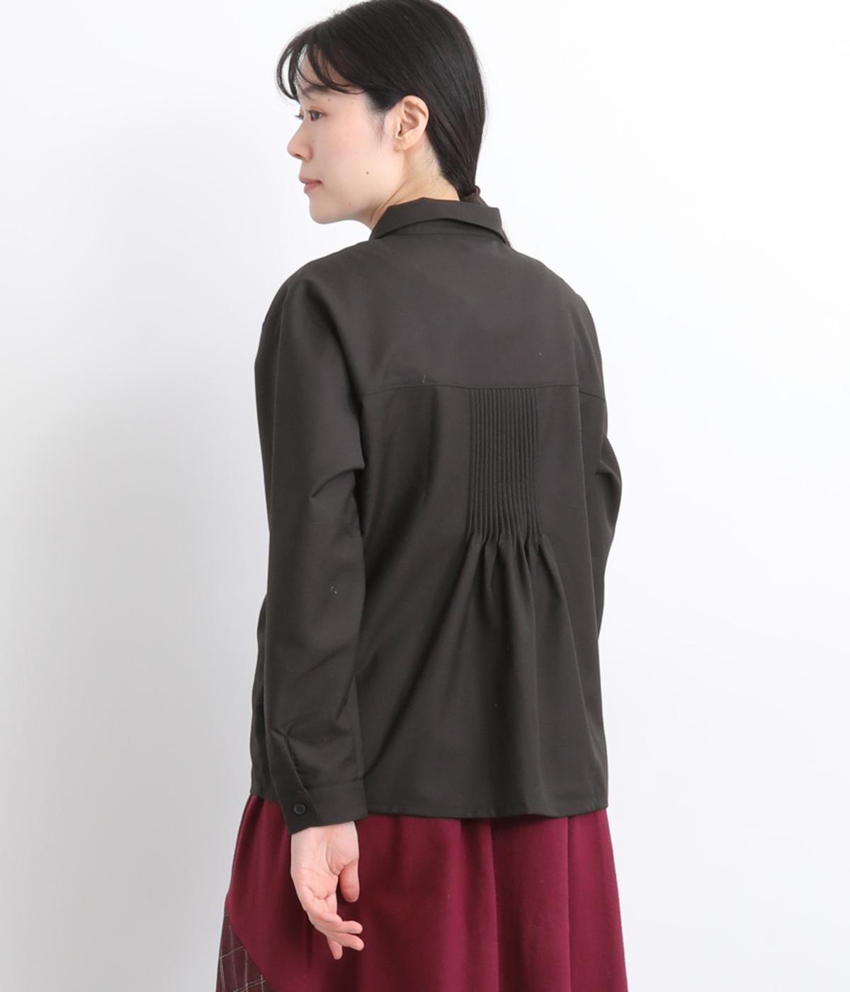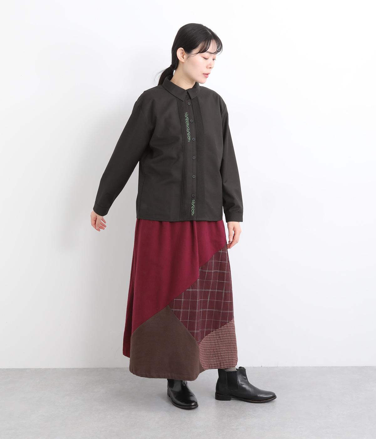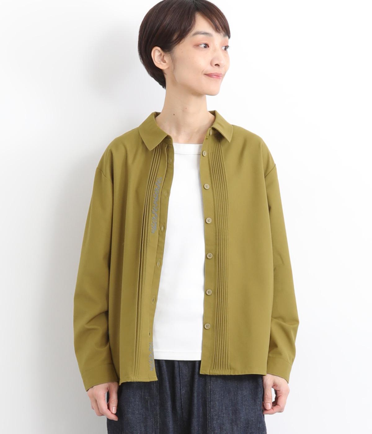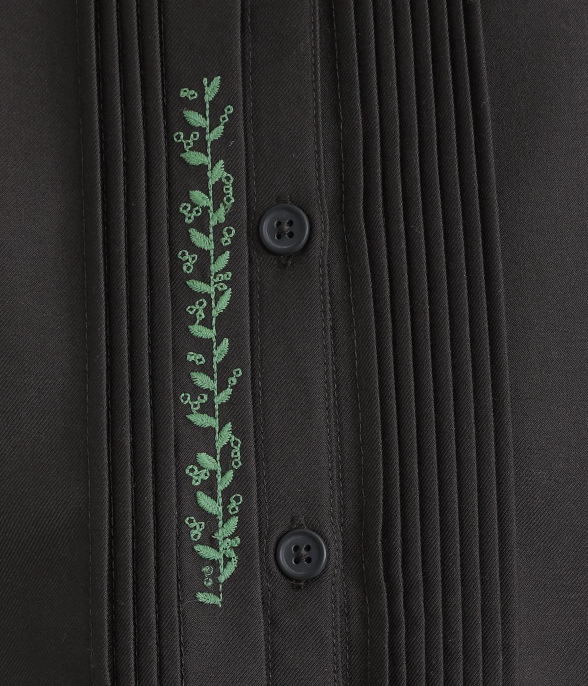 前中心や後ろ身頃に入れたピンタックがきれいめな印象を与える襟つきシャツ。葉っぱの刺しゅうラインが他にはない特別感をプラス。きちんと感もあるのでデイリーにもよそいきスタイルにも活躍し、羽織り使いもたのしめます。