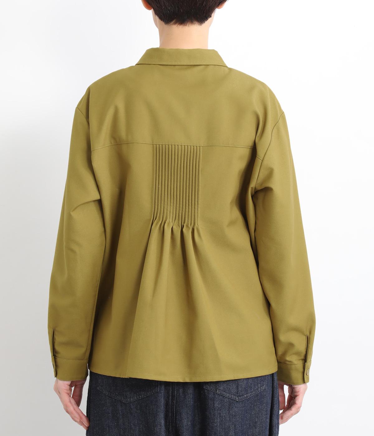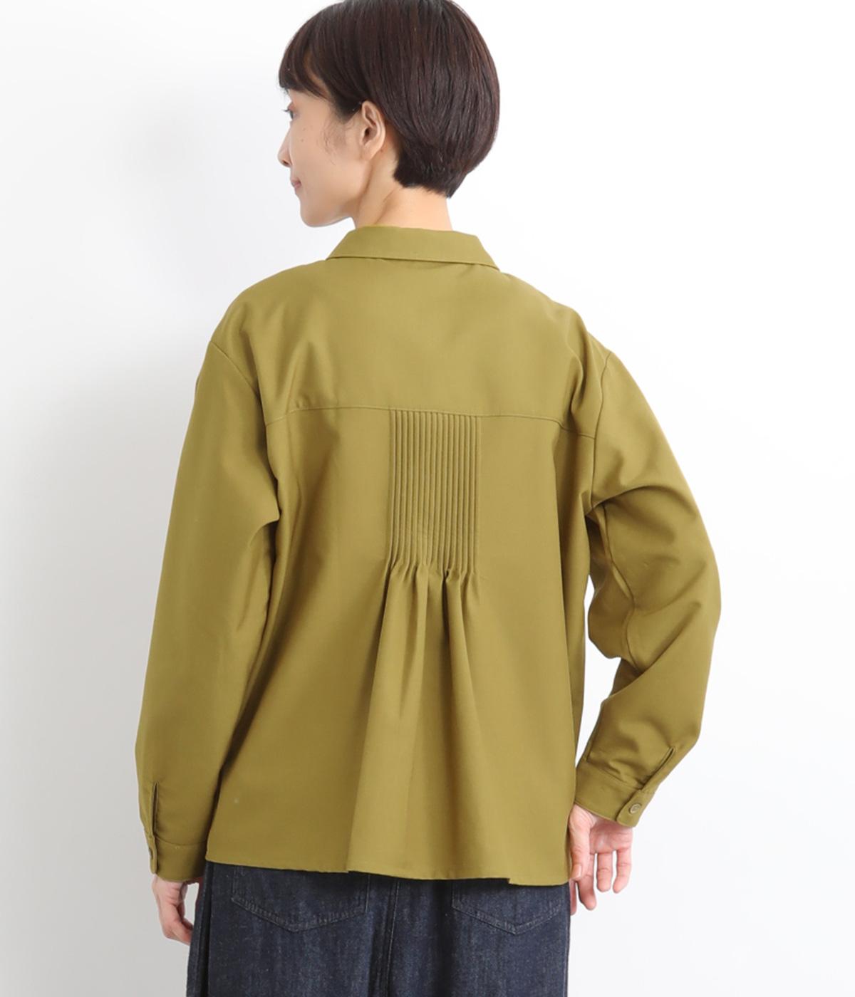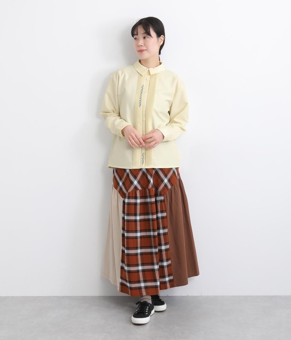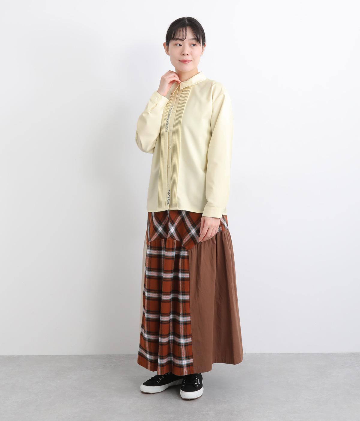 前中心や後ろ身頃に入れたピンタックがきれいめな印象を与える襟つきシャツ。葉っぱの刺しゅうラインが他にはない特別感をプラス。きちんと感もあるのでデイリーにもよそいきスタイルにも活躍し、羽織り使いもたのしめます。