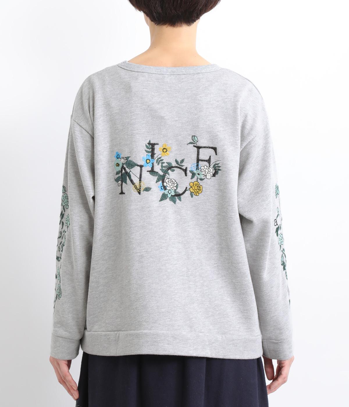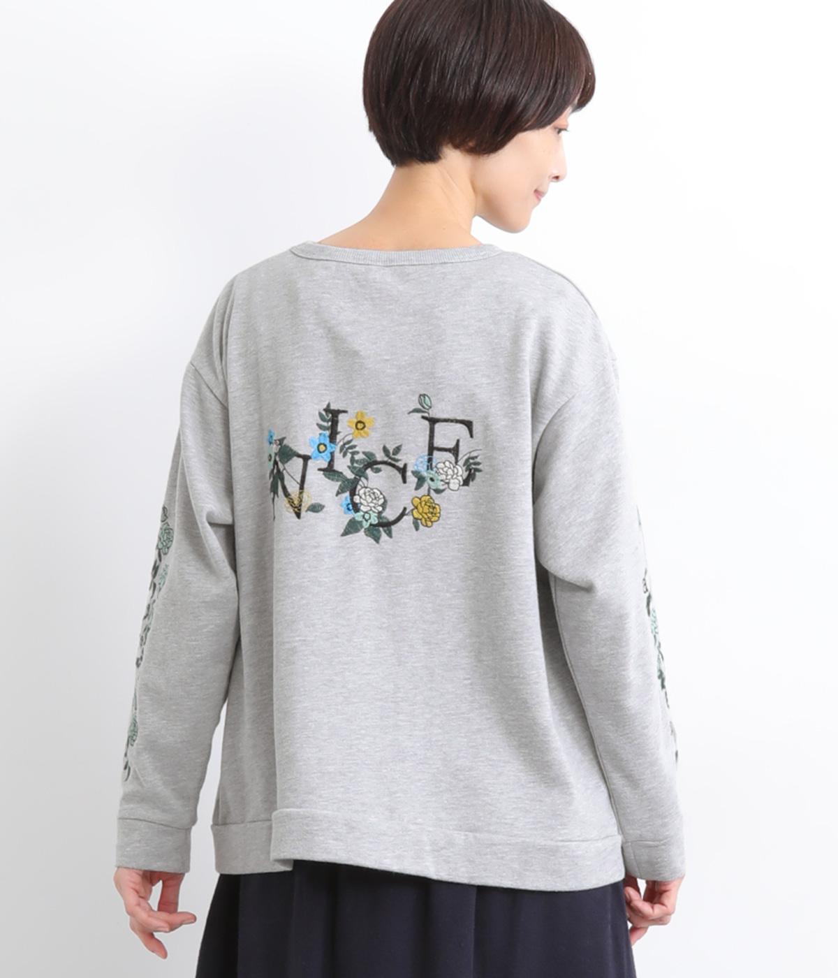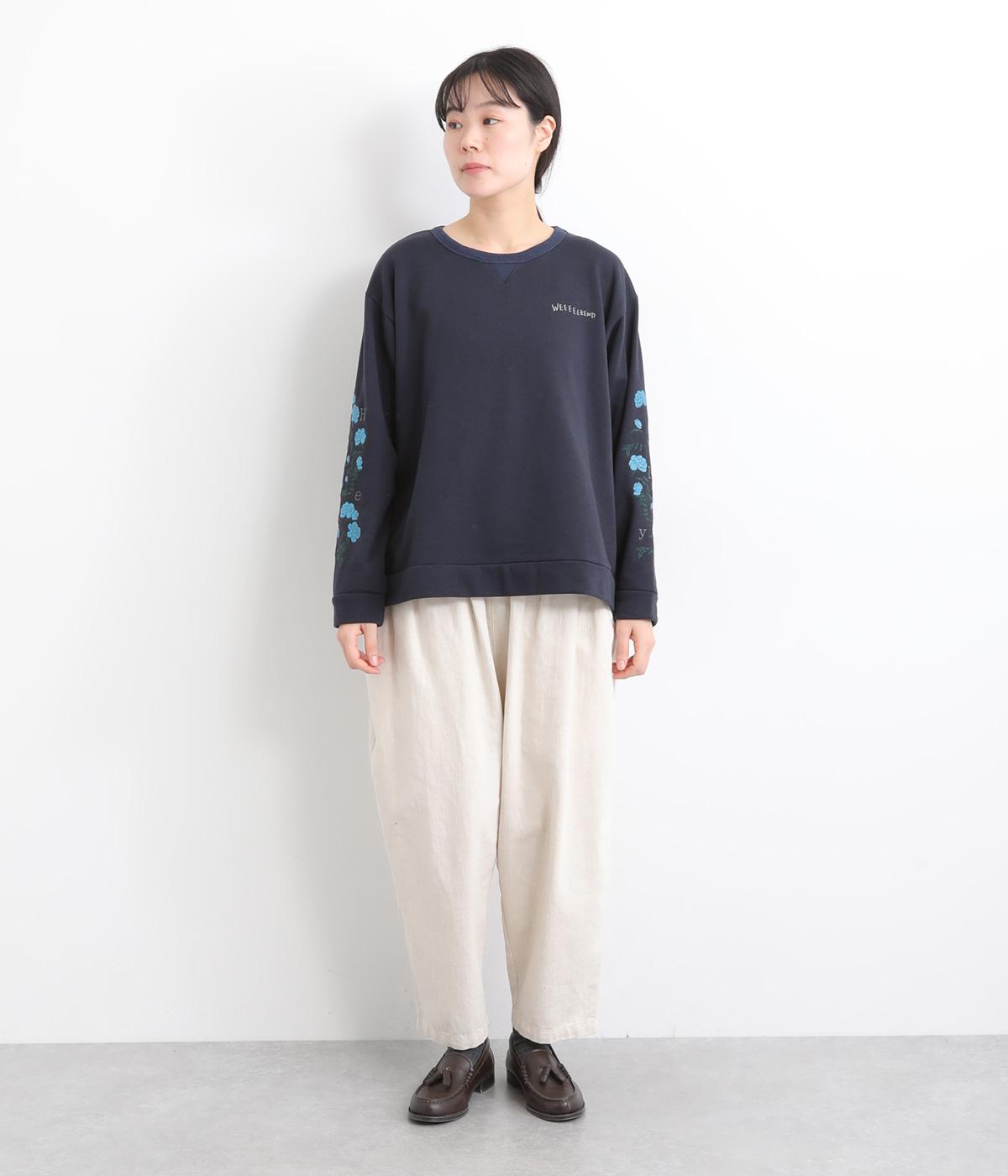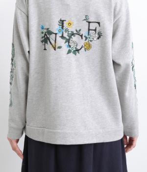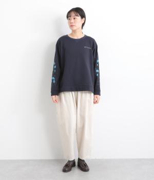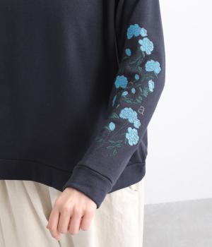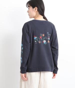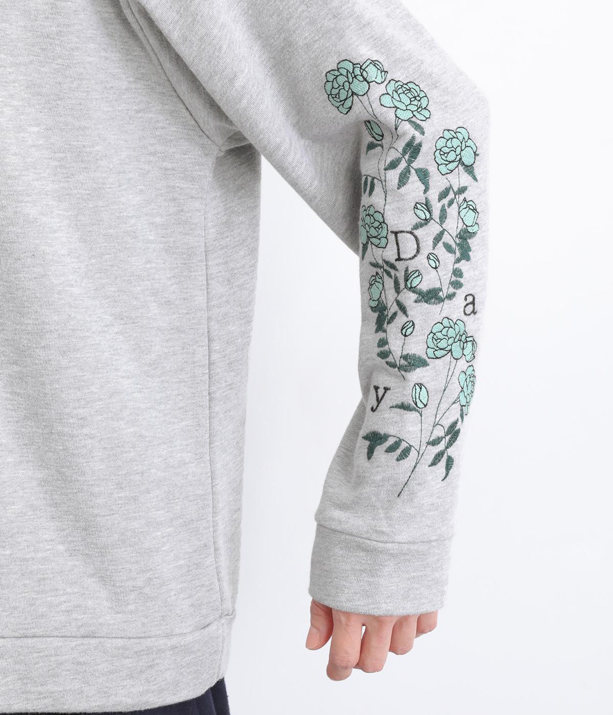 カジュアルスタイルの定番アイテム、裏毛プルオーバーに大胆に植物柄の刺しゅうをほどこして着こなしのポイントになる一枚に。胸元の手描き風ロゴ刺しゅうも◎。身頃は適度にゆとりをもたせて着心地の良さにも考慮しました。