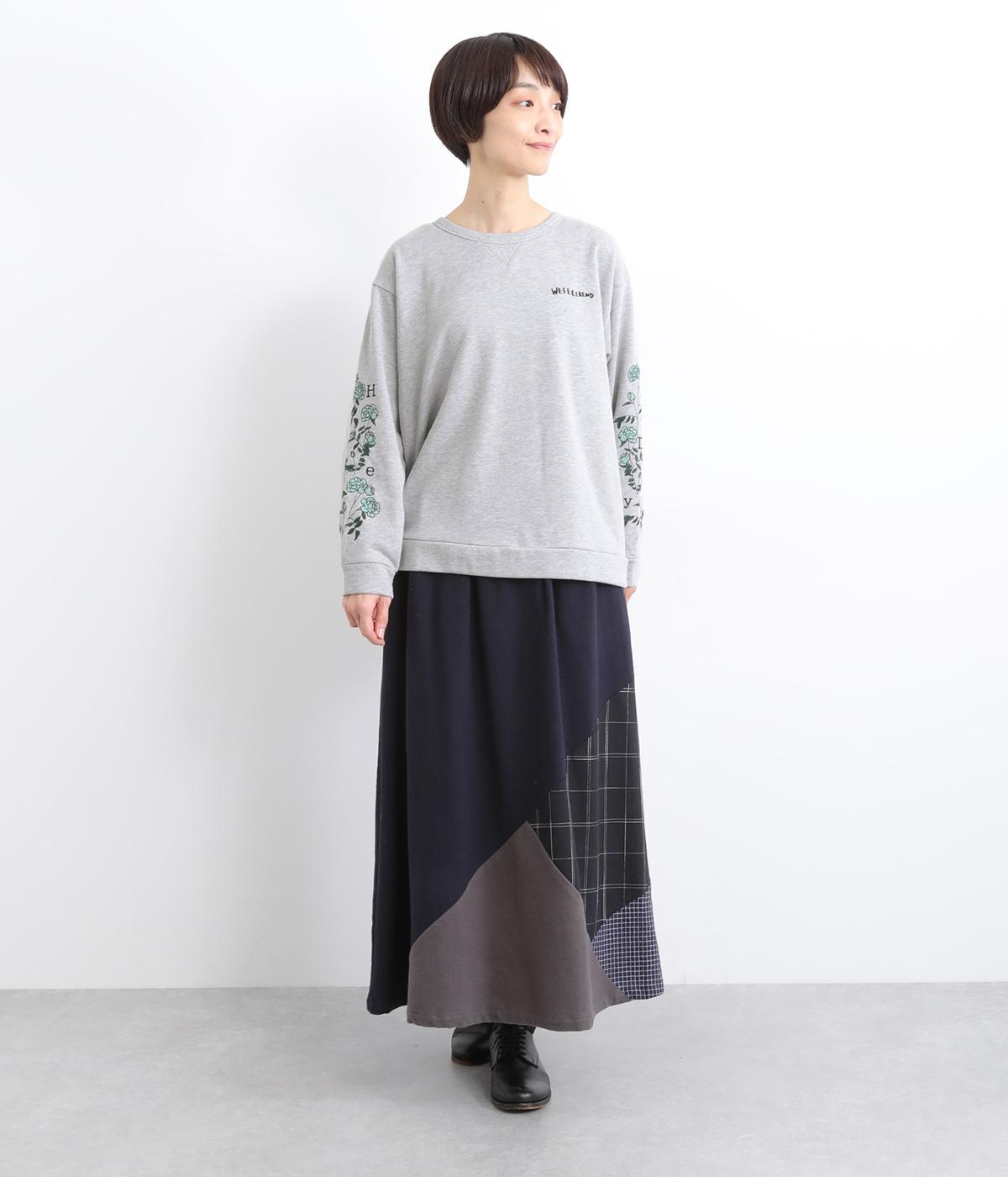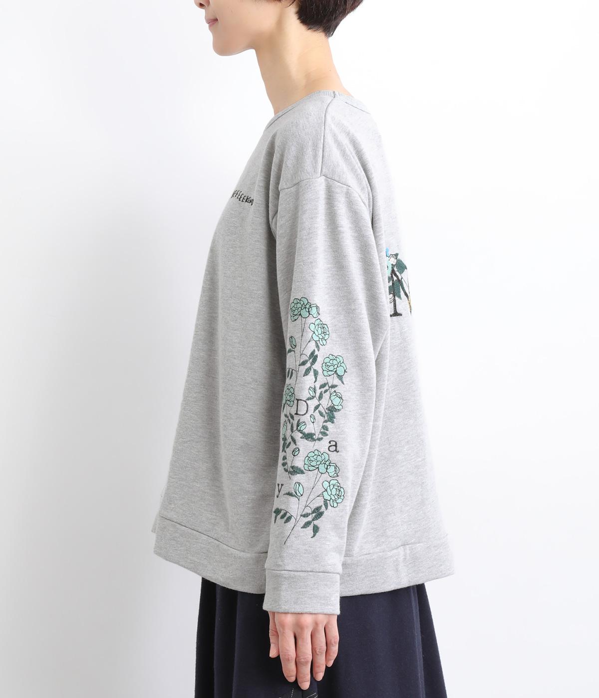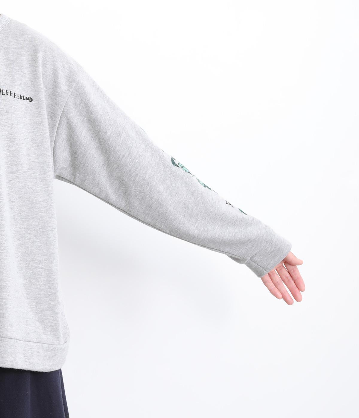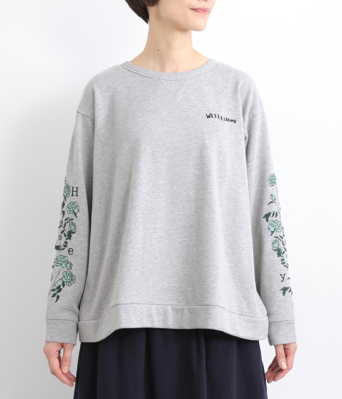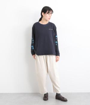 カジュアルスタイルの定番アイテム、裏毛プルオーバーに大胆に植物柄の刺しゅうをほどこして着こなしのポイントになる一枚に。胸元の手描き風ロゴ刺しゅうも◎。身頃は適度にゆとりをもたせて着心地の良さにも考慮しました。