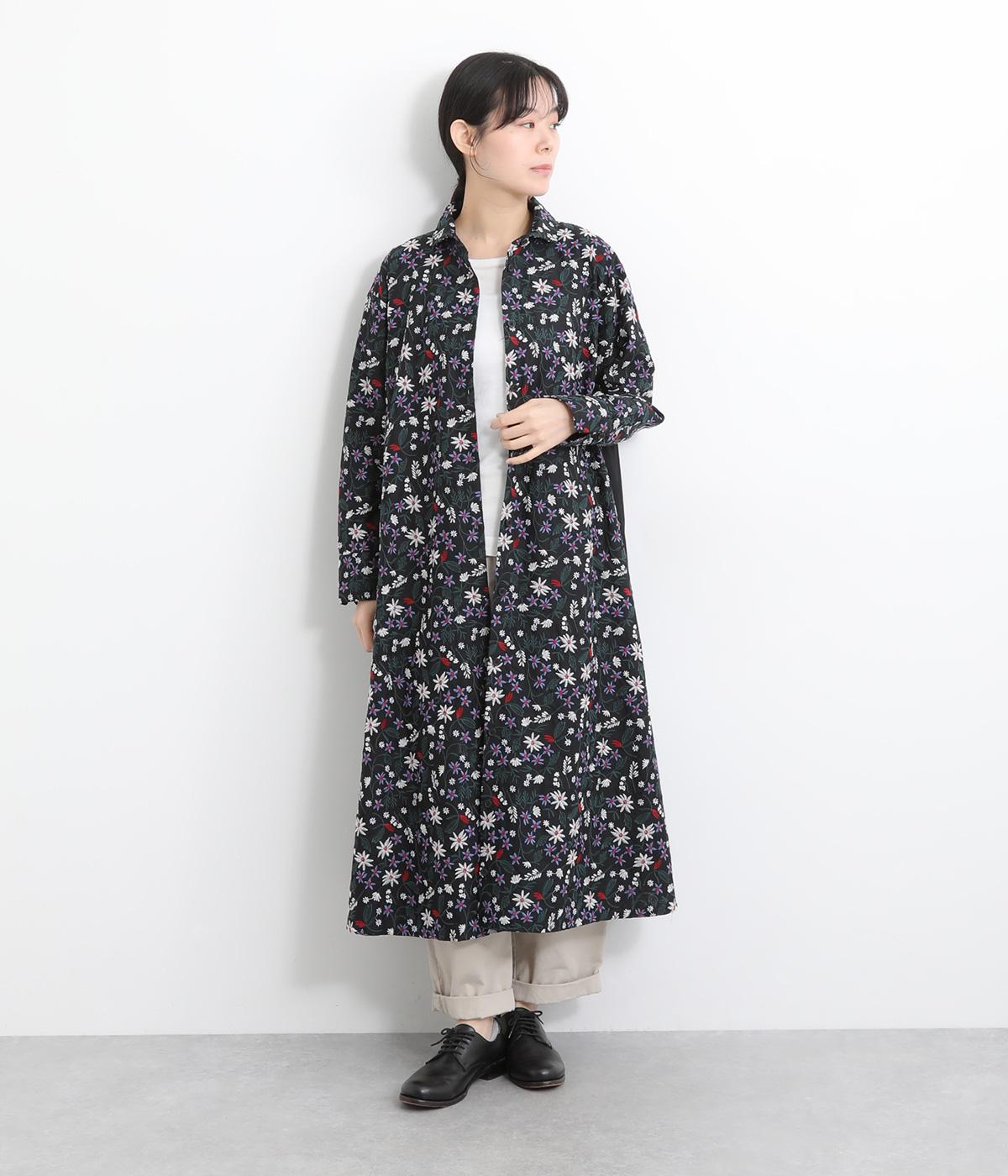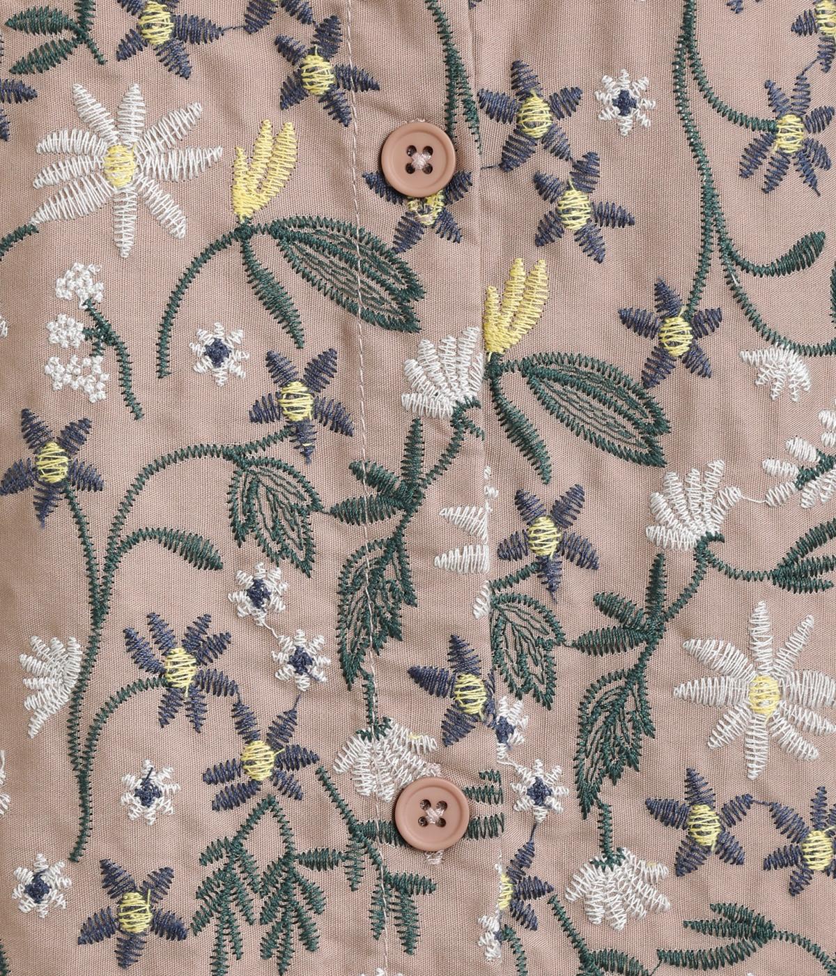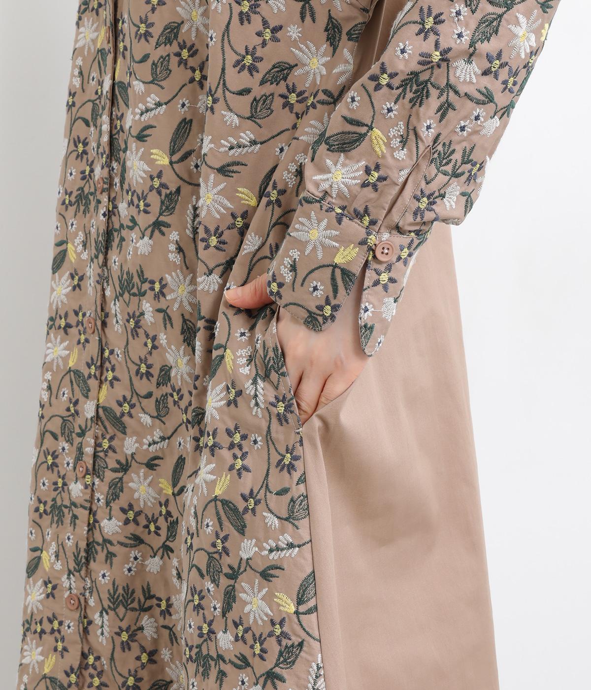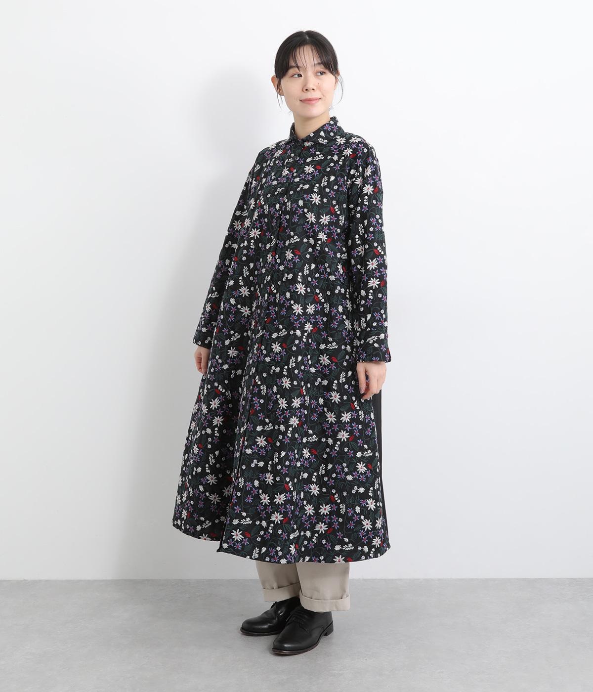 愛らしい小花刺しゅうをあしらった華やかなワンピース。フレアシルエットが女性らしさを印象づけ、体のラインを拾いにくいリラックスした着心地を叶えてくれます。デザインの邪魔をしないサイドポケットつき。フロントボタンを外して、ロング丈の羽織りとして着こなすのもおすすめです。