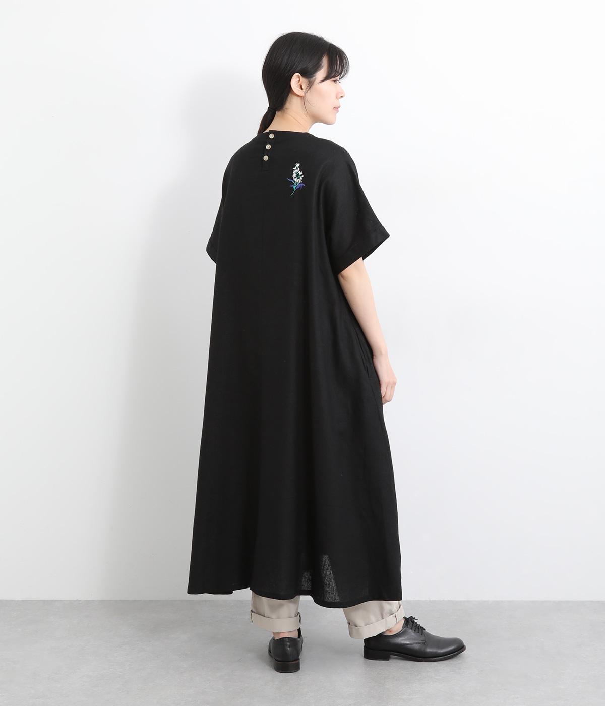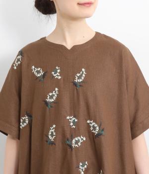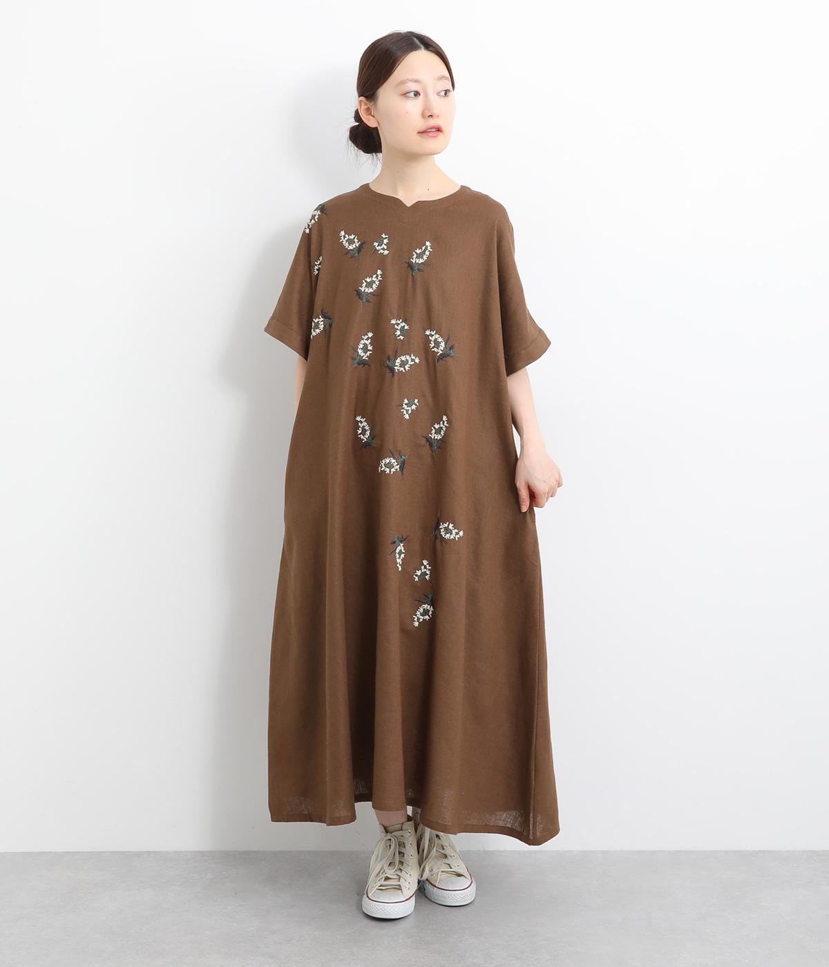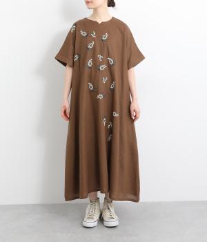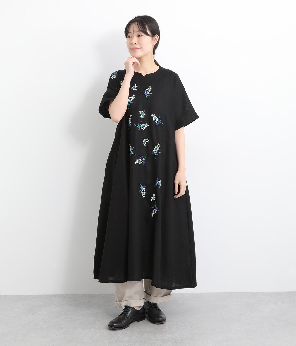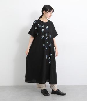可憐なフラワー刺しゅうをちりばめた大人かわいいワンピース。後ろにもワンポイント刺しゅうを入れ、どこから見ても華やかに仕上げています。浅めのスリットネックが女性らしい品の良さを演出。ドレープが美しく映えるフレアシルエットで、着心地のよさも◎です。