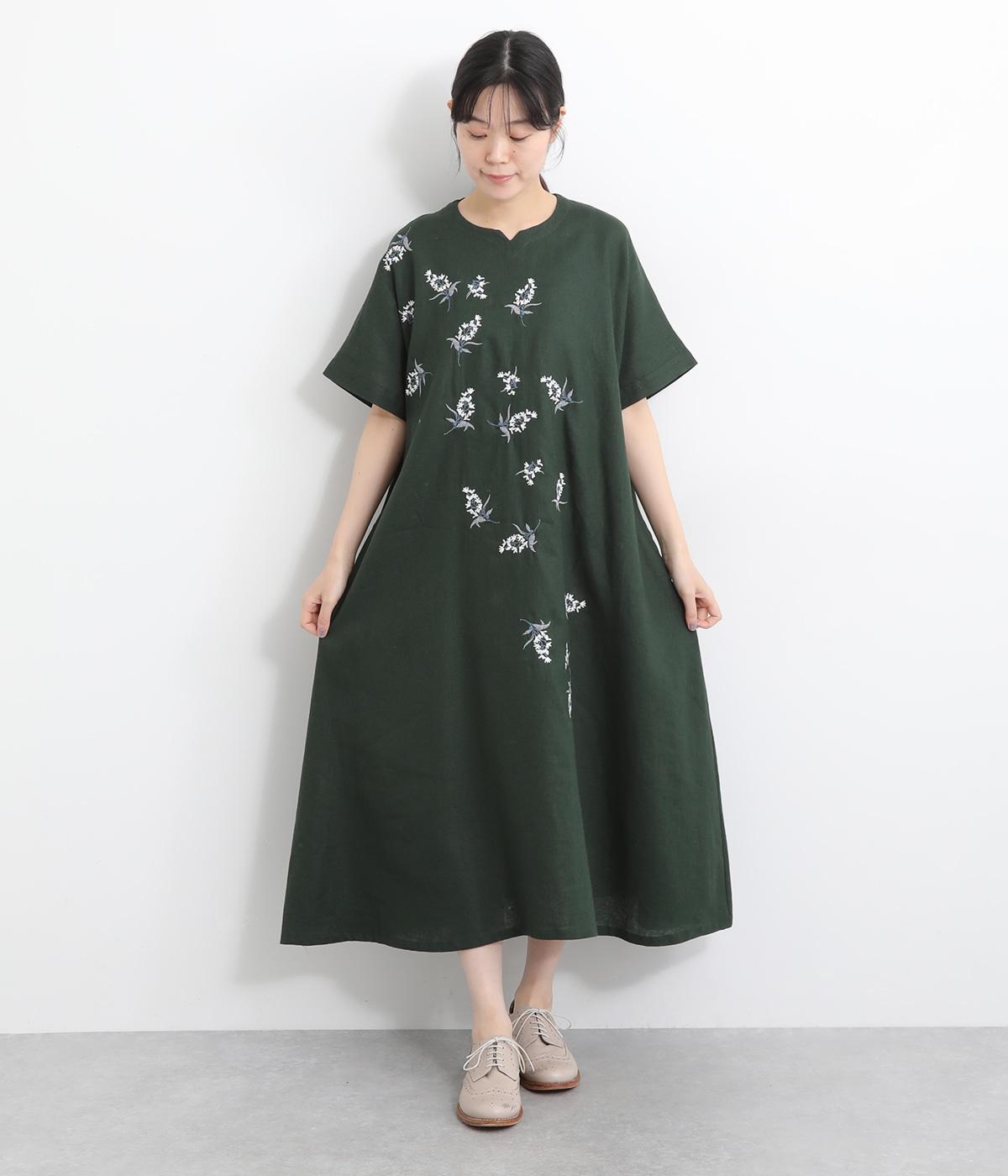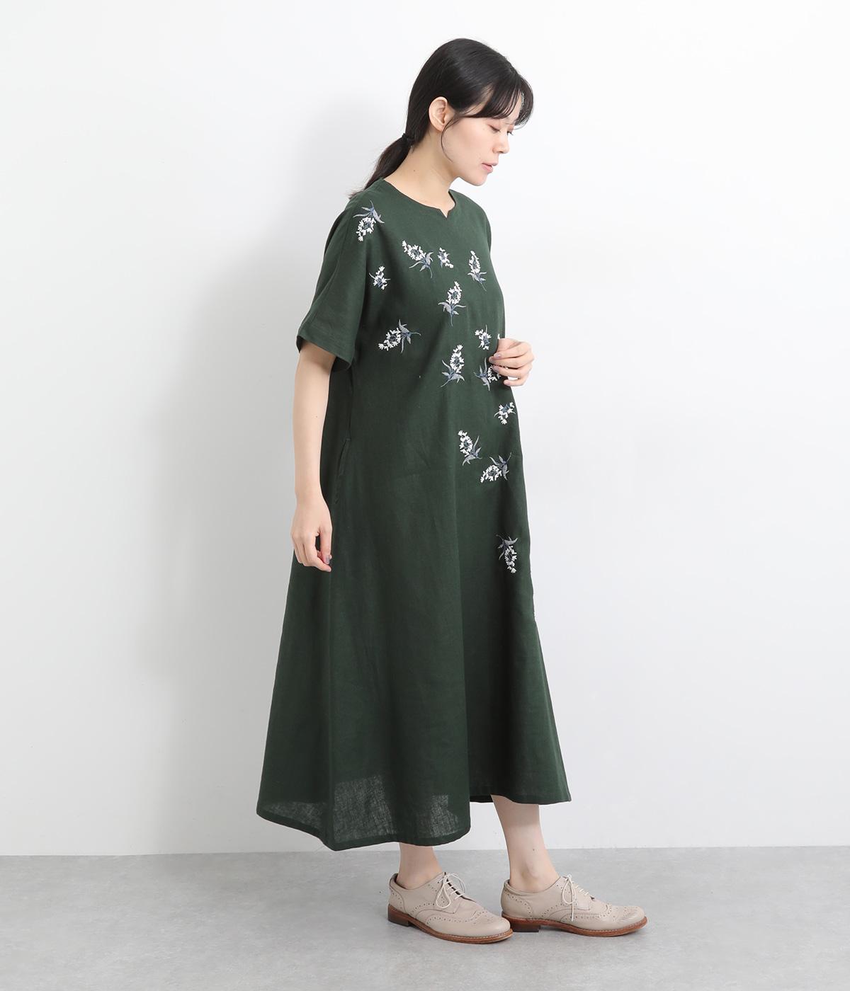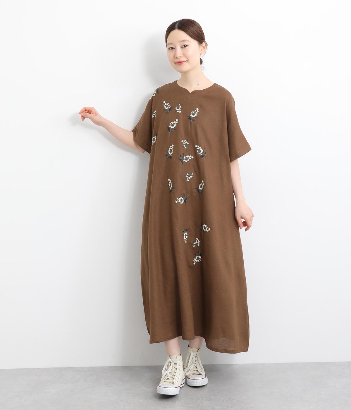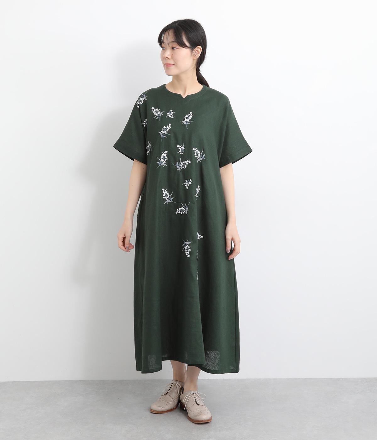 可憐なフラワー刺しゅうをちりばめた大人かわいいワンピース。後ろにもワンポイント刺しゅうを入れ、どこから見ても華やかに仕上げています。浅めのスリットネックが女性らしい品の良さを演出。ドレープが美しく映えるフレアシルエットで、着心地のよさも◎です。