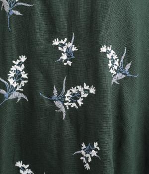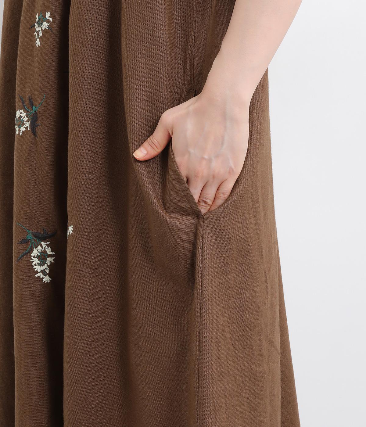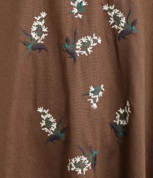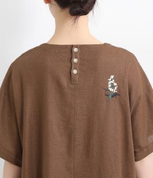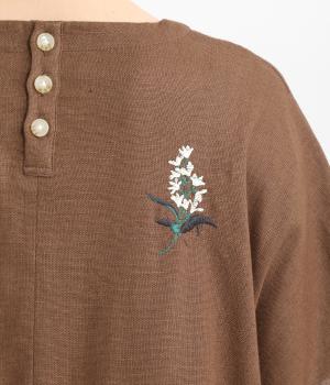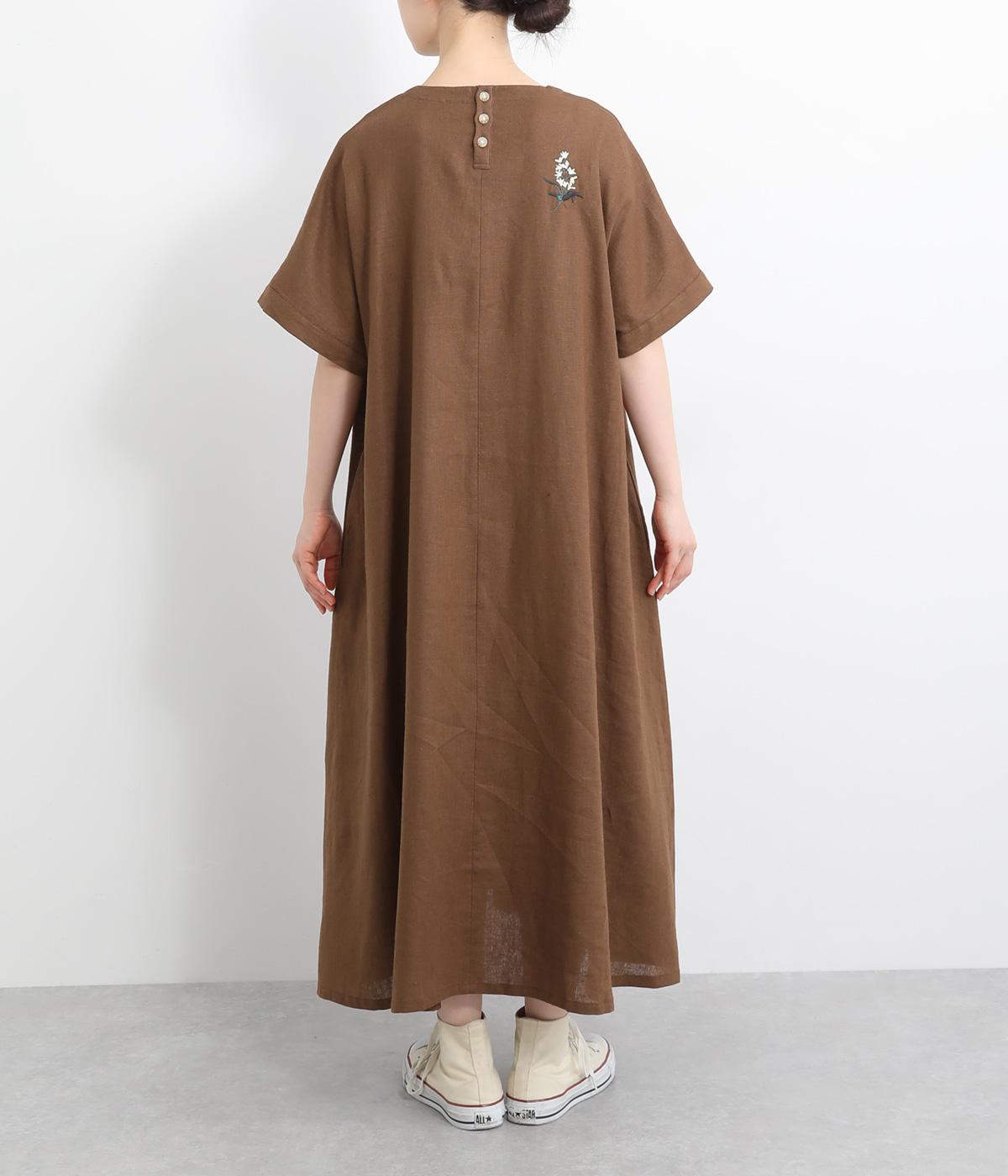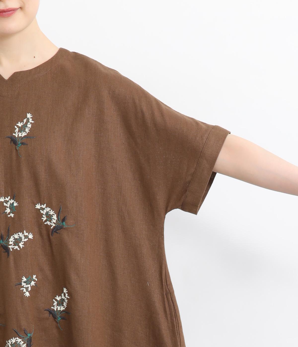 可憐なフラワー刺しゅうをちりばめた大人かわいいワンピース。後ろにもワンポイント刺しゅうを入れ、どこから見ても華やかに仕上げています。浅めのスリットネックが女性らしい品の良さを演出。ドレープが美しく映えるフレアシルエットで、着心地のよさも◎です。