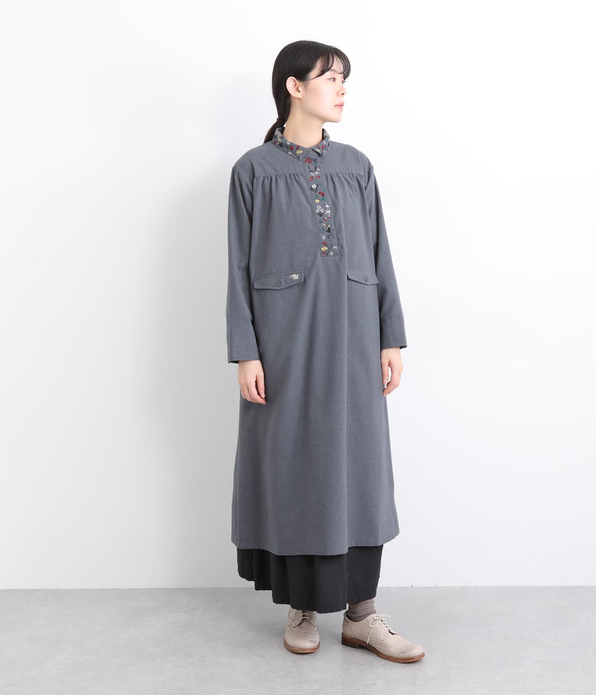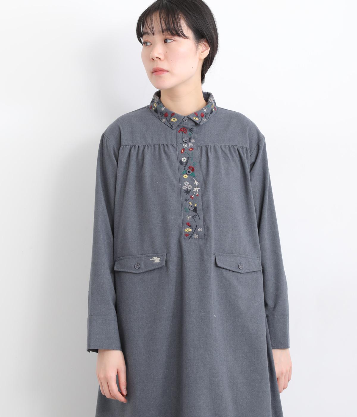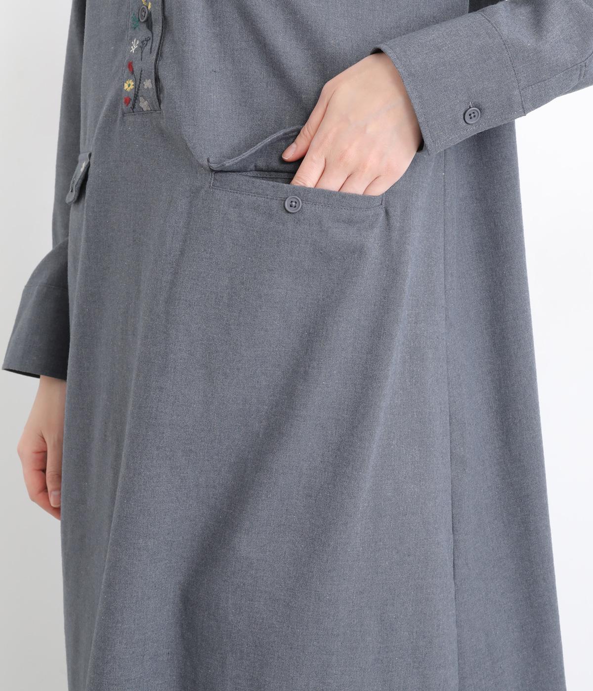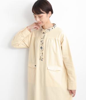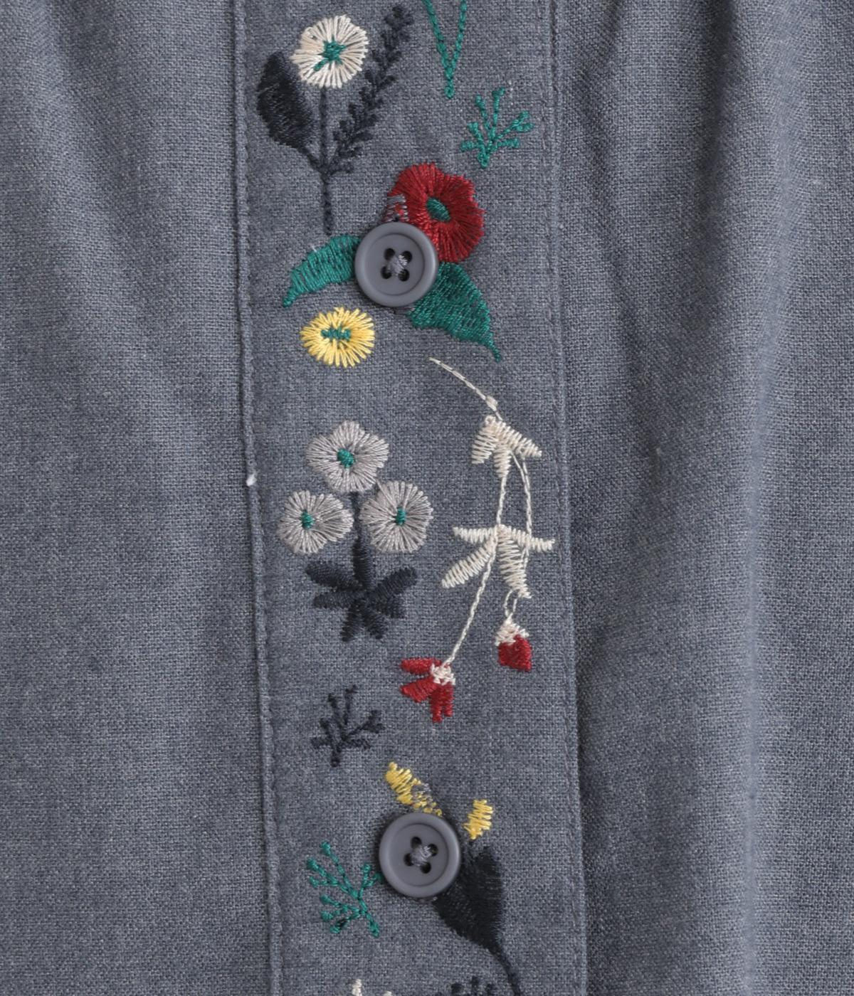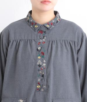 襟にほどこしたカラフルな花刺しゅうが大人ガーリーな一枚。ハーフあきで被りやすく、便利なポケットつきでデイリーに活躍。切り替えギャザーは高めの位置ですっきりとして見え、レイヤードもたのしめる丈感で着こなしのバリエーションも豊富です。