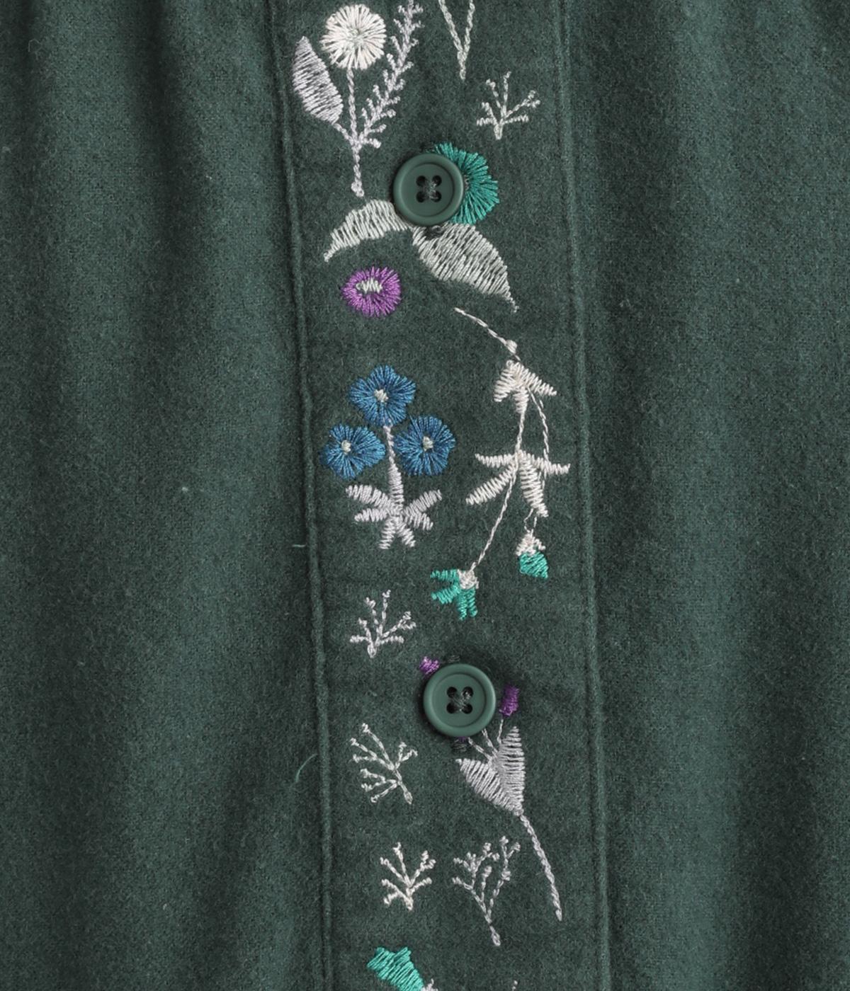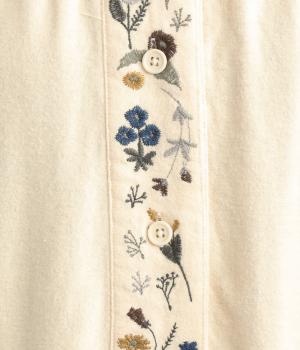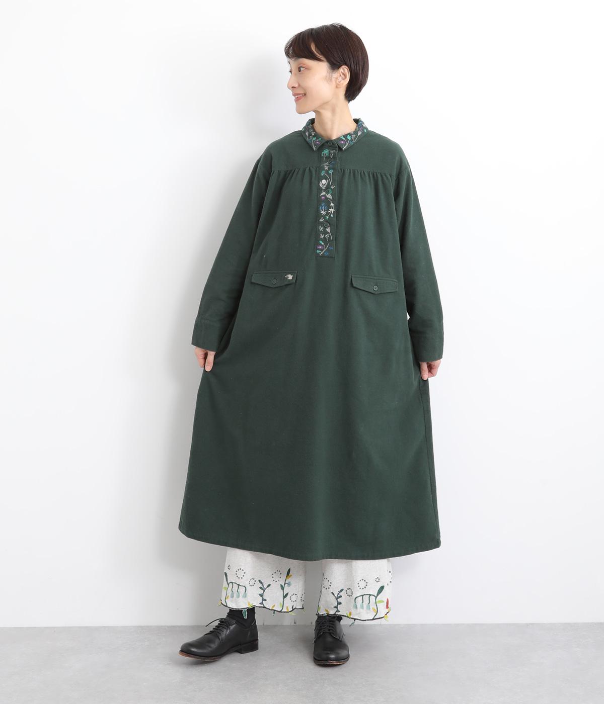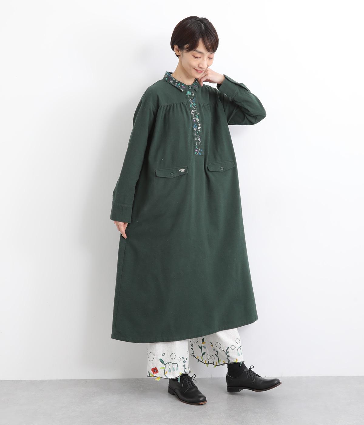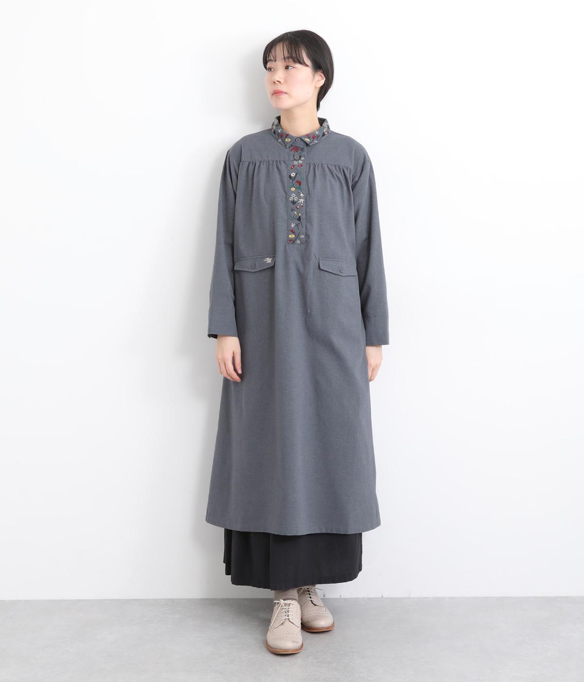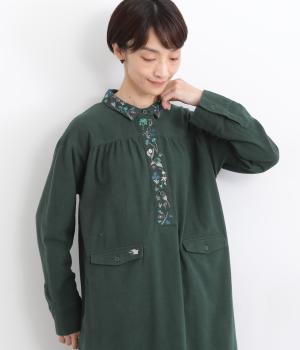 襟にほどこしたカラフルな花刺しゅうが大人ガーリーな一枚。ハーフあきで被りやすく、便利なポケットつきでデイリーに活躍。切り替えギャザーは高めの位置ですっきりとして見え、レイヤードもたのしめる丈感で着こなしのバリエーションも豊富です。