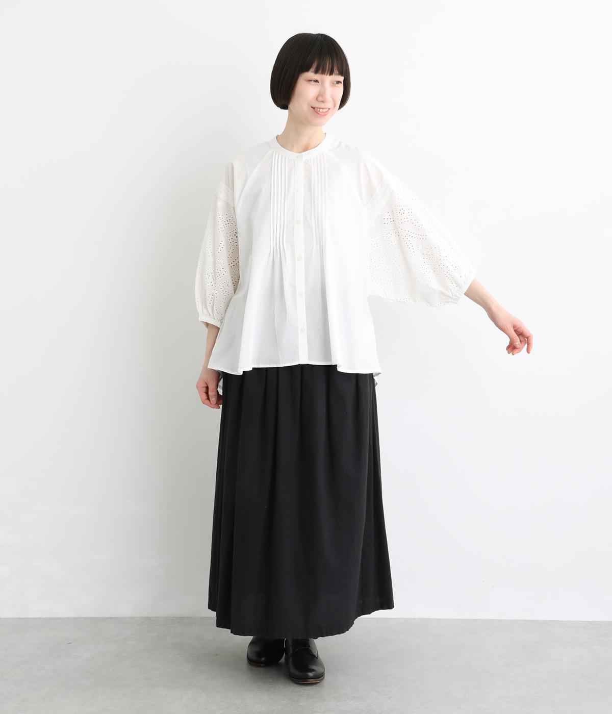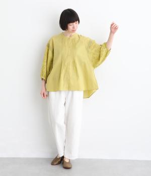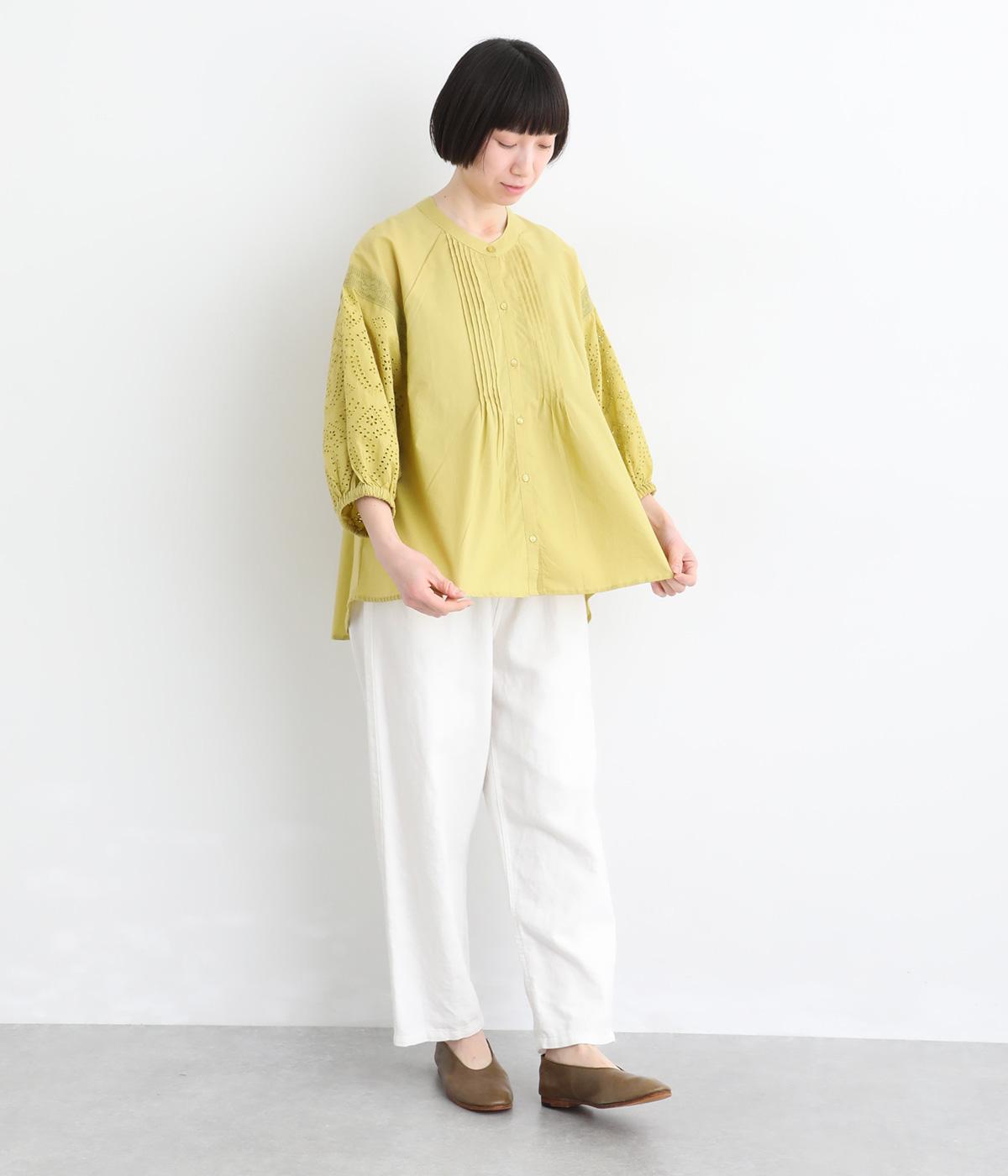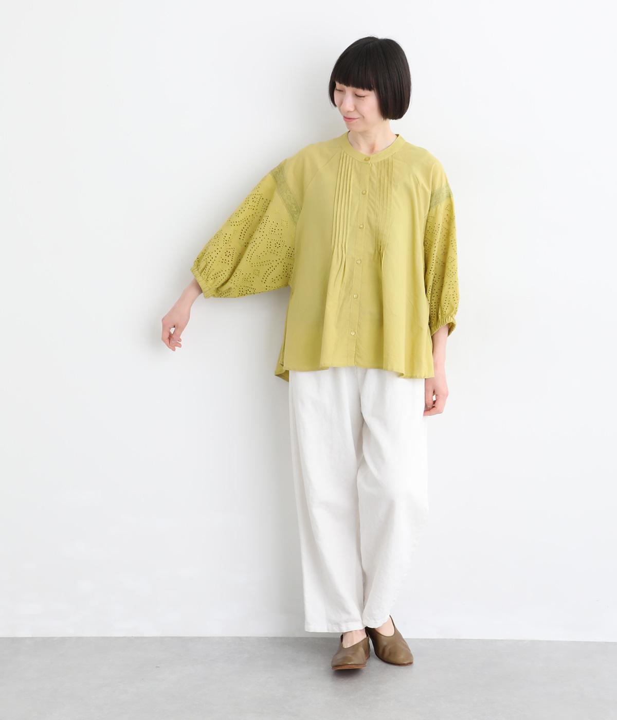 さらりとした布帛とレース生地をドッキングさせました。どちらもコットン製で肌あたりが良く、軽やかな着心地になっています。