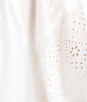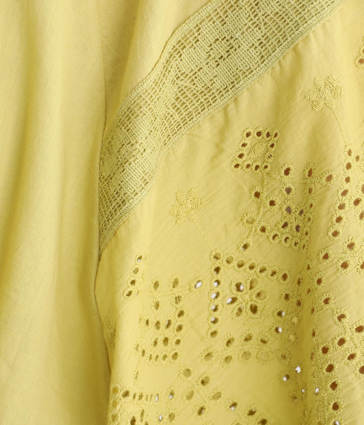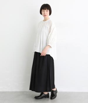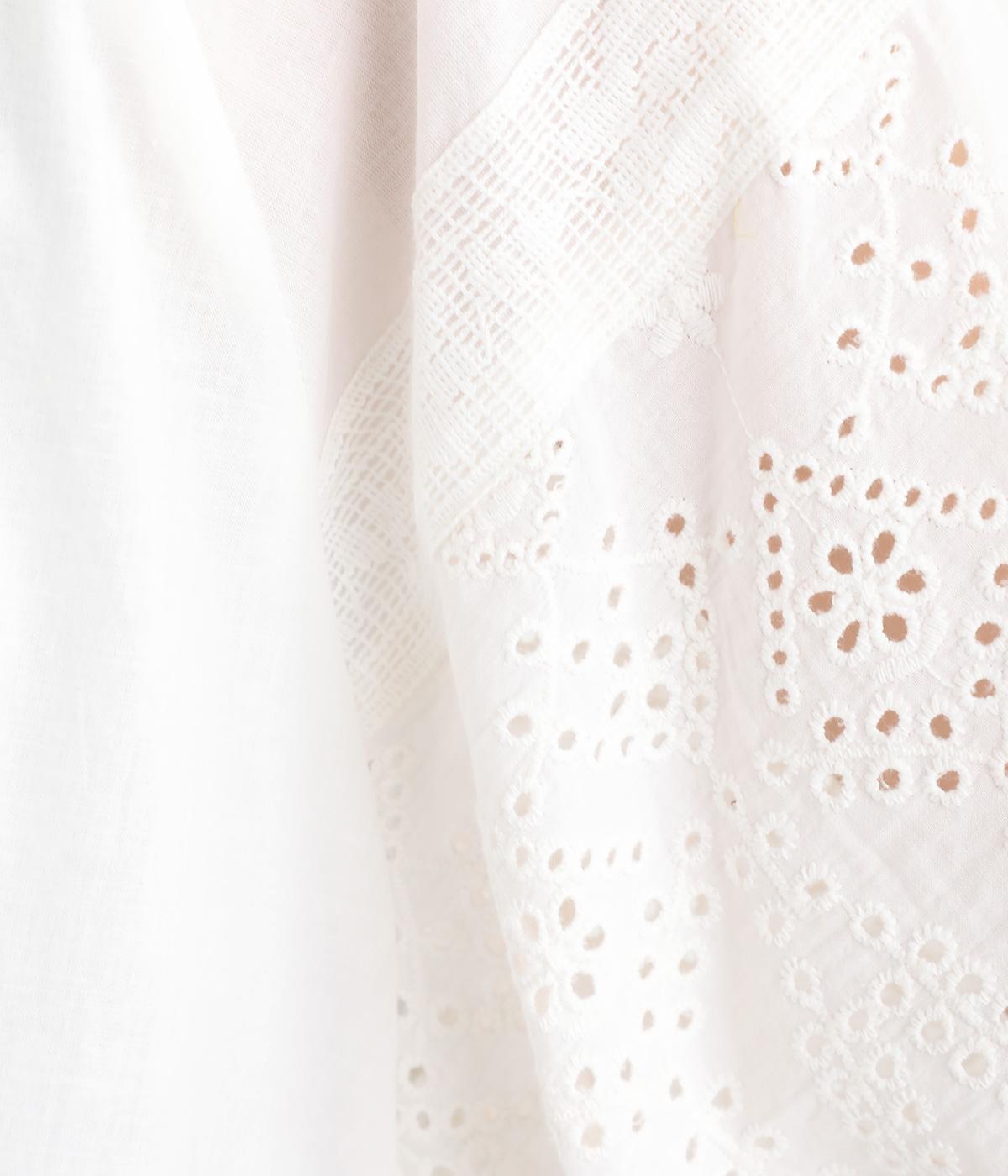 さらりとした布帛とレース生地をドッキングさせました。どちらもコットン製で肌あたりが良く、軽やかな着心地になっています。