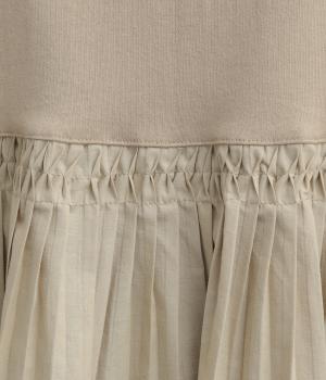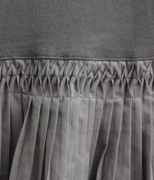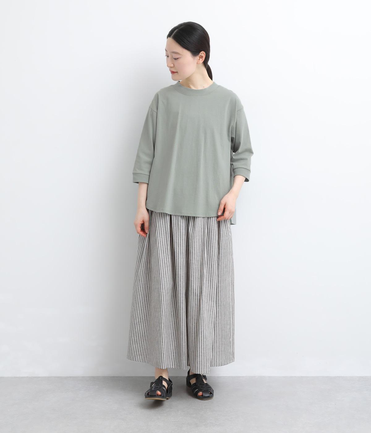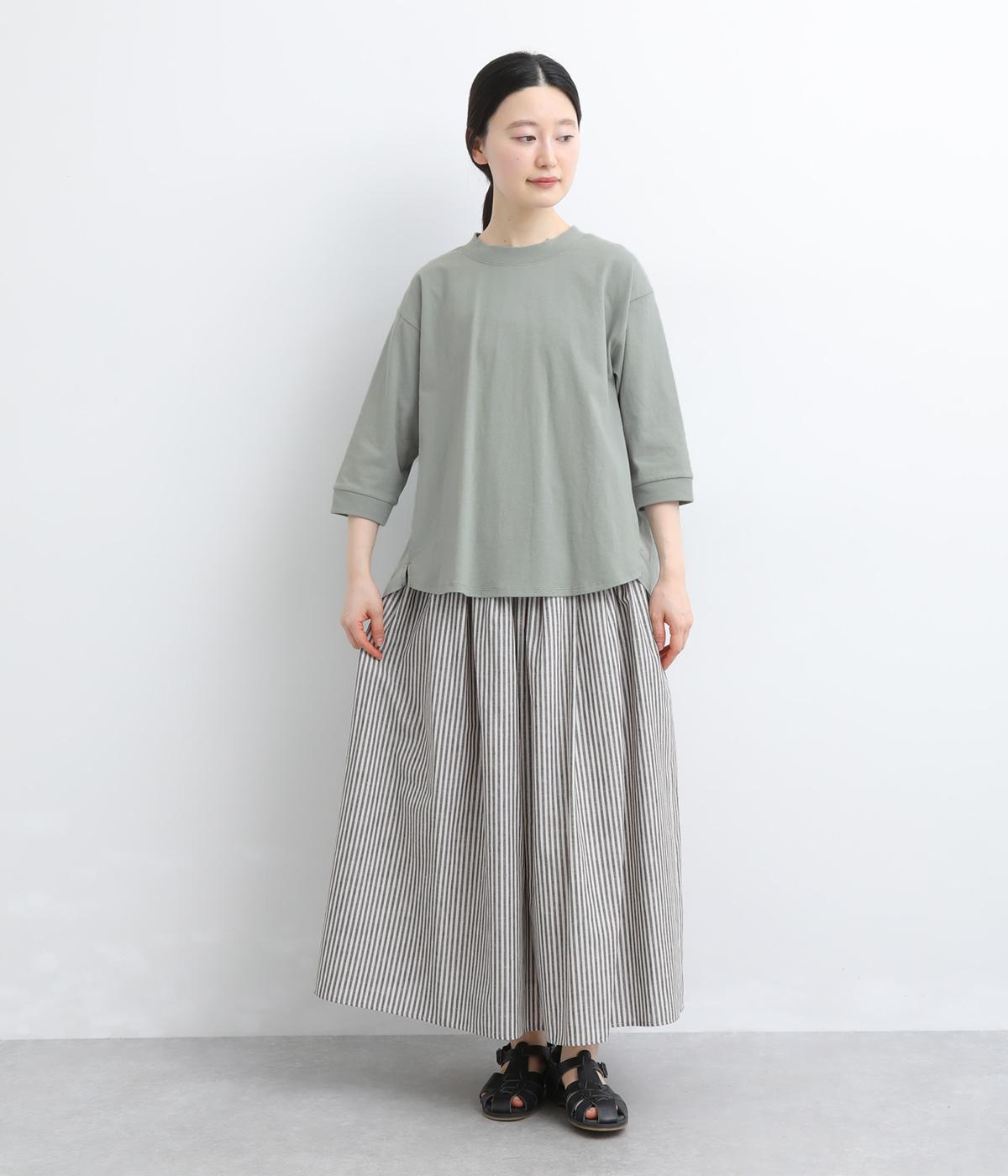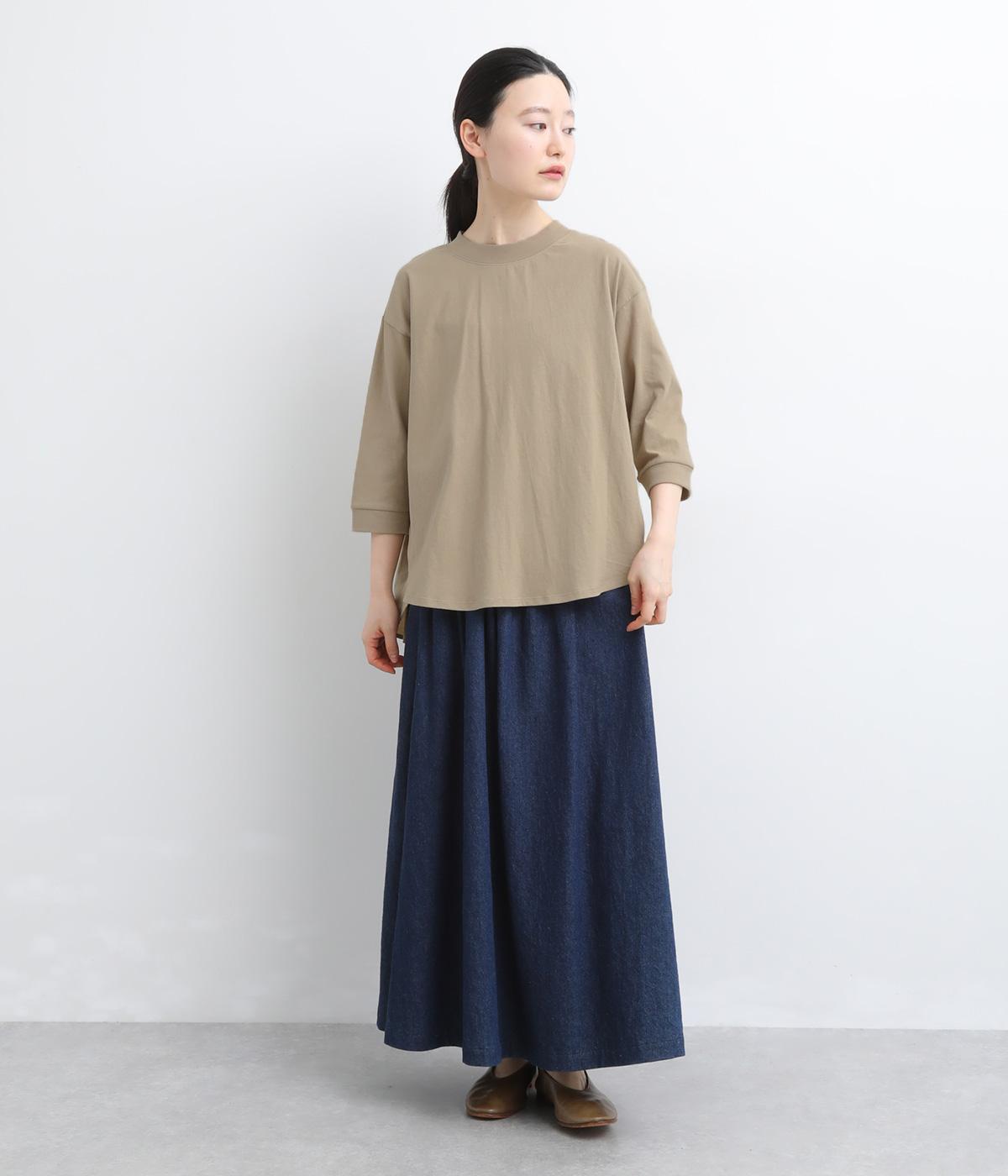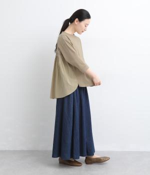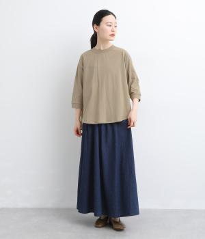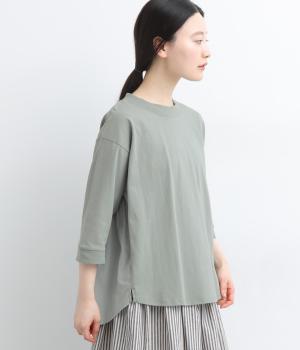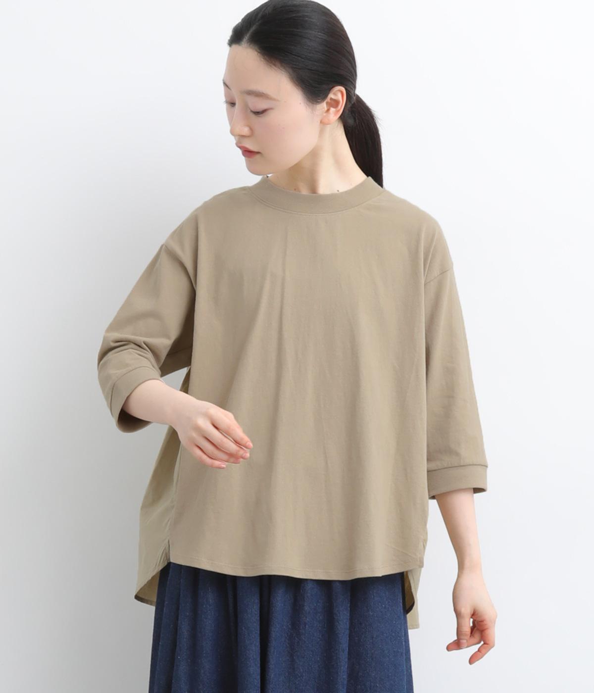 背面を布帛で切り替えた、前後で表情の異なるデザインです。異素材のコントラストが、奥行きのある上品な印象を添えます。ゆとりのあるワイドな身幅で、体のラインを拾いにくいのもうれしいポイント。七分袖が抜け感をつくり、コーディネートをバランスよくまとめます。