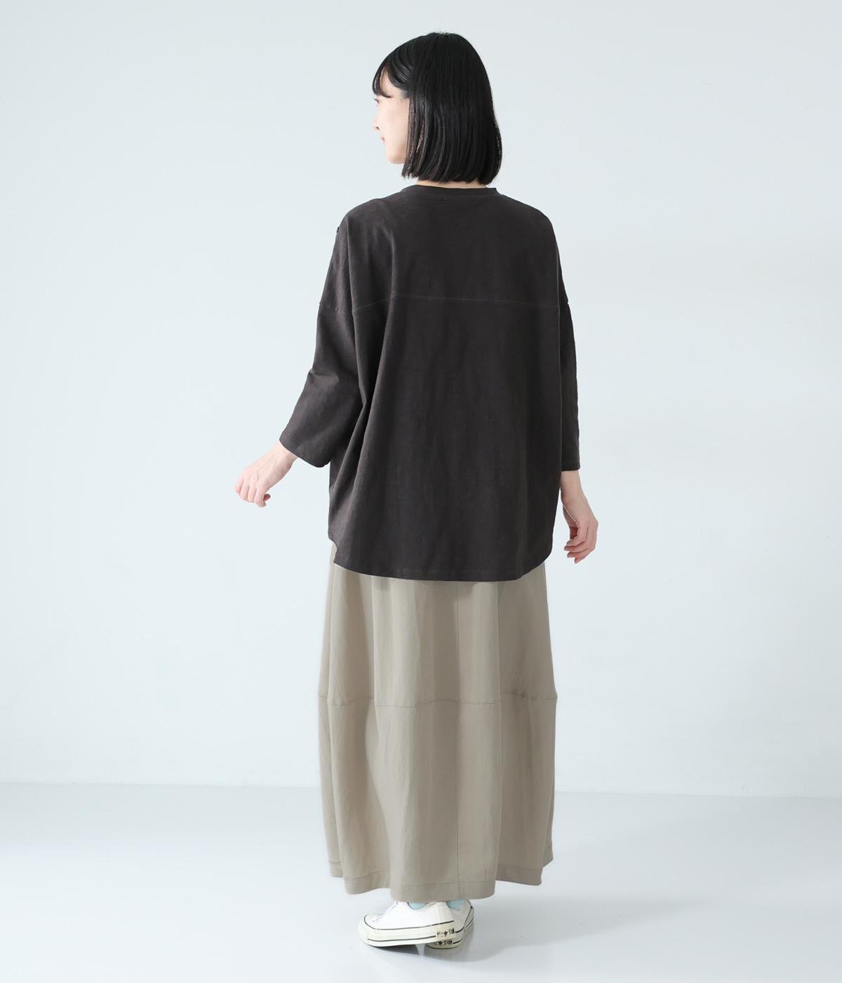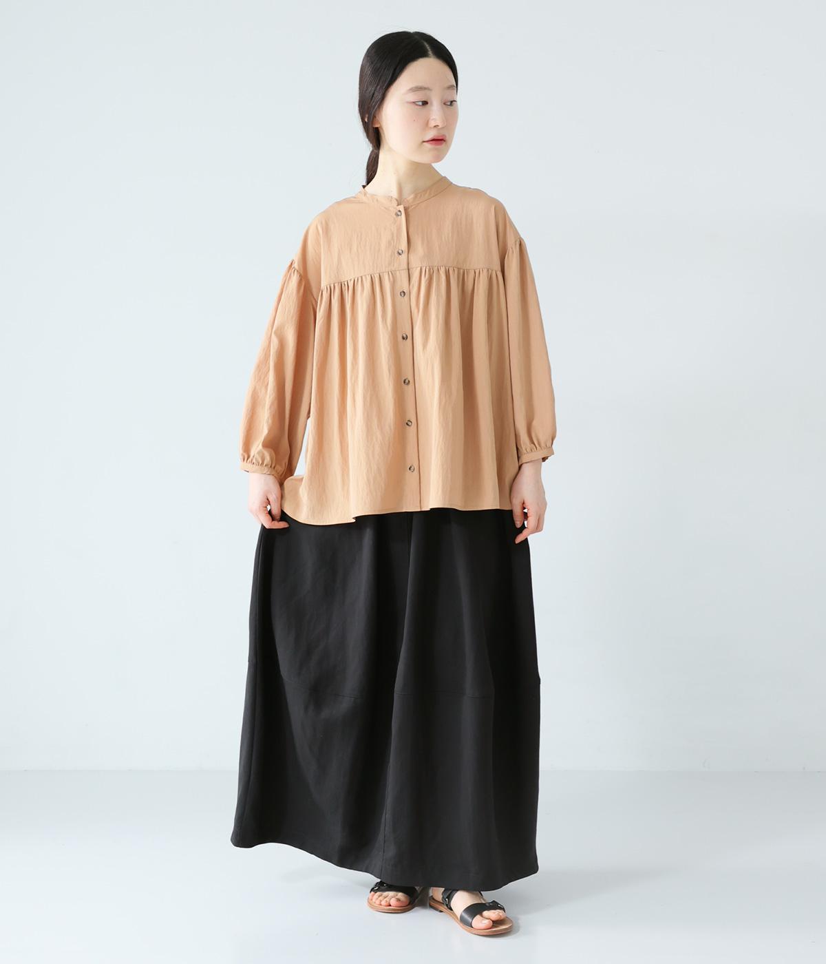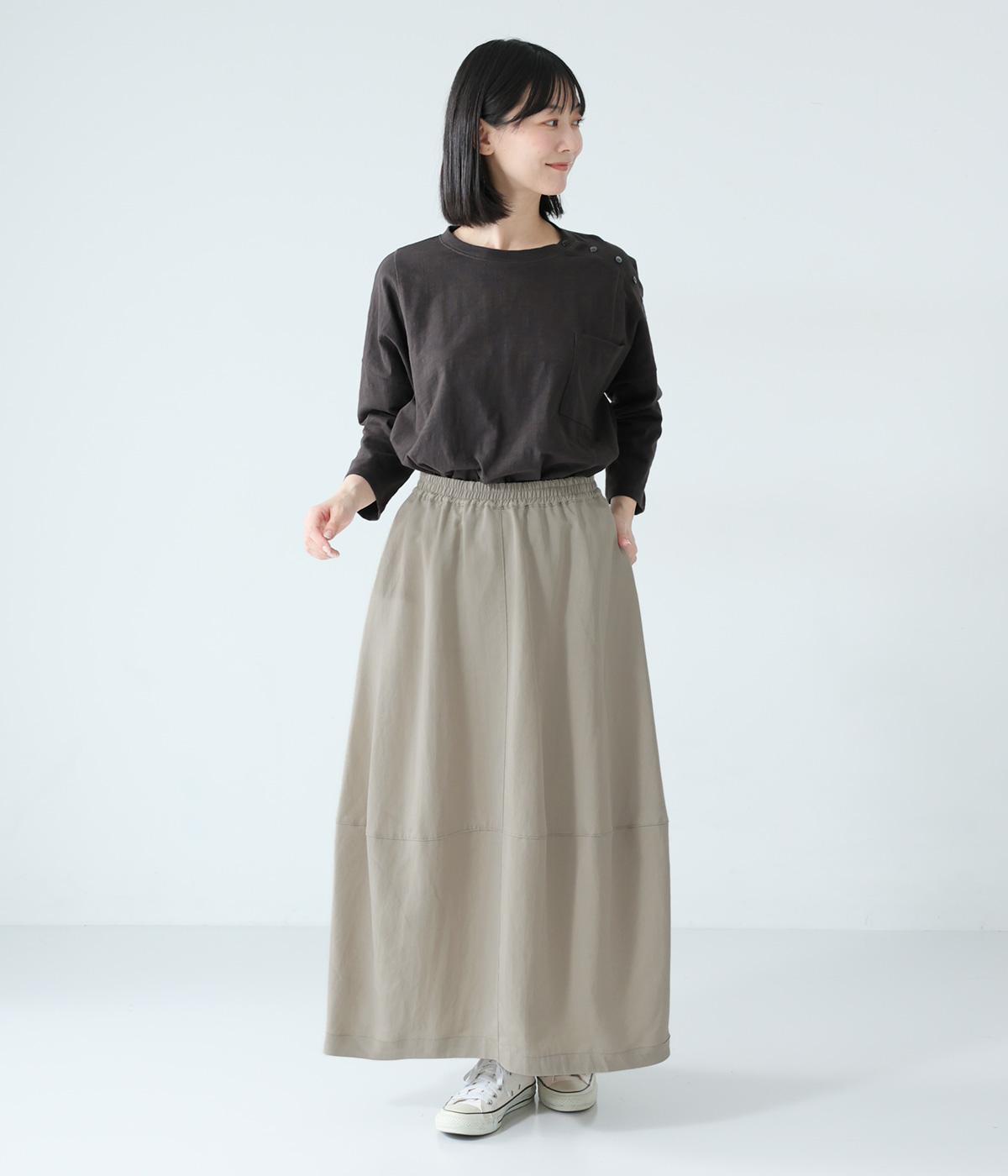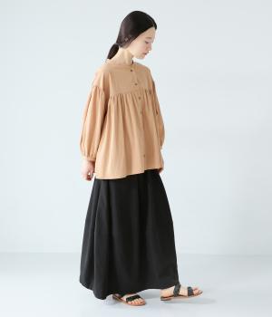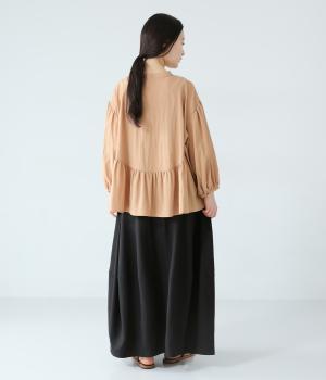 ほどよいボリュームのコクーンシルエットに、切り替えラインがさりげないアクセントを添えます。やわらかな立体感がやさしい雰囲気を生み、ウエストは総ゴム仕様でリラックス感のある穿き心地に仕上げました。