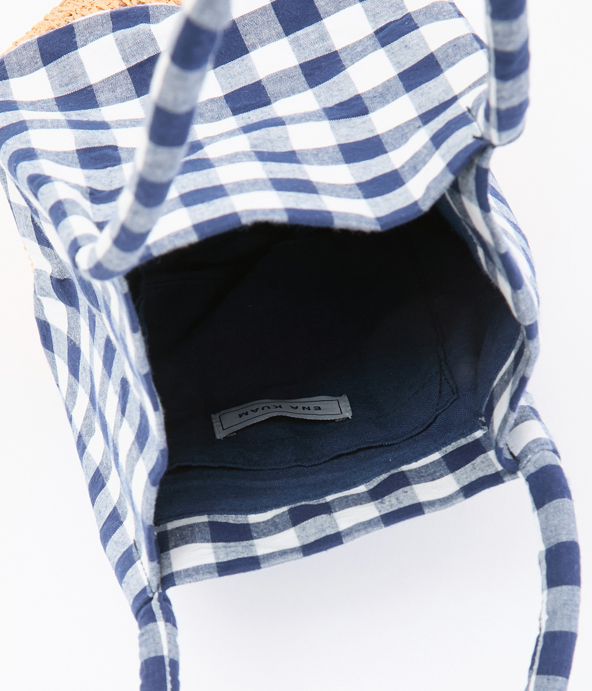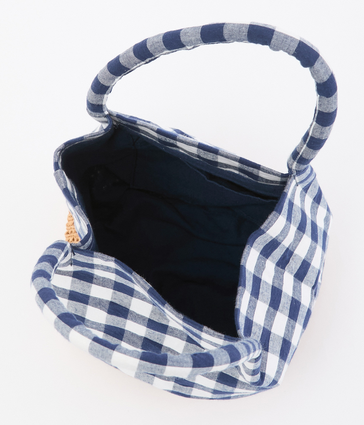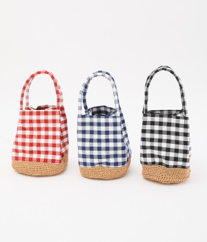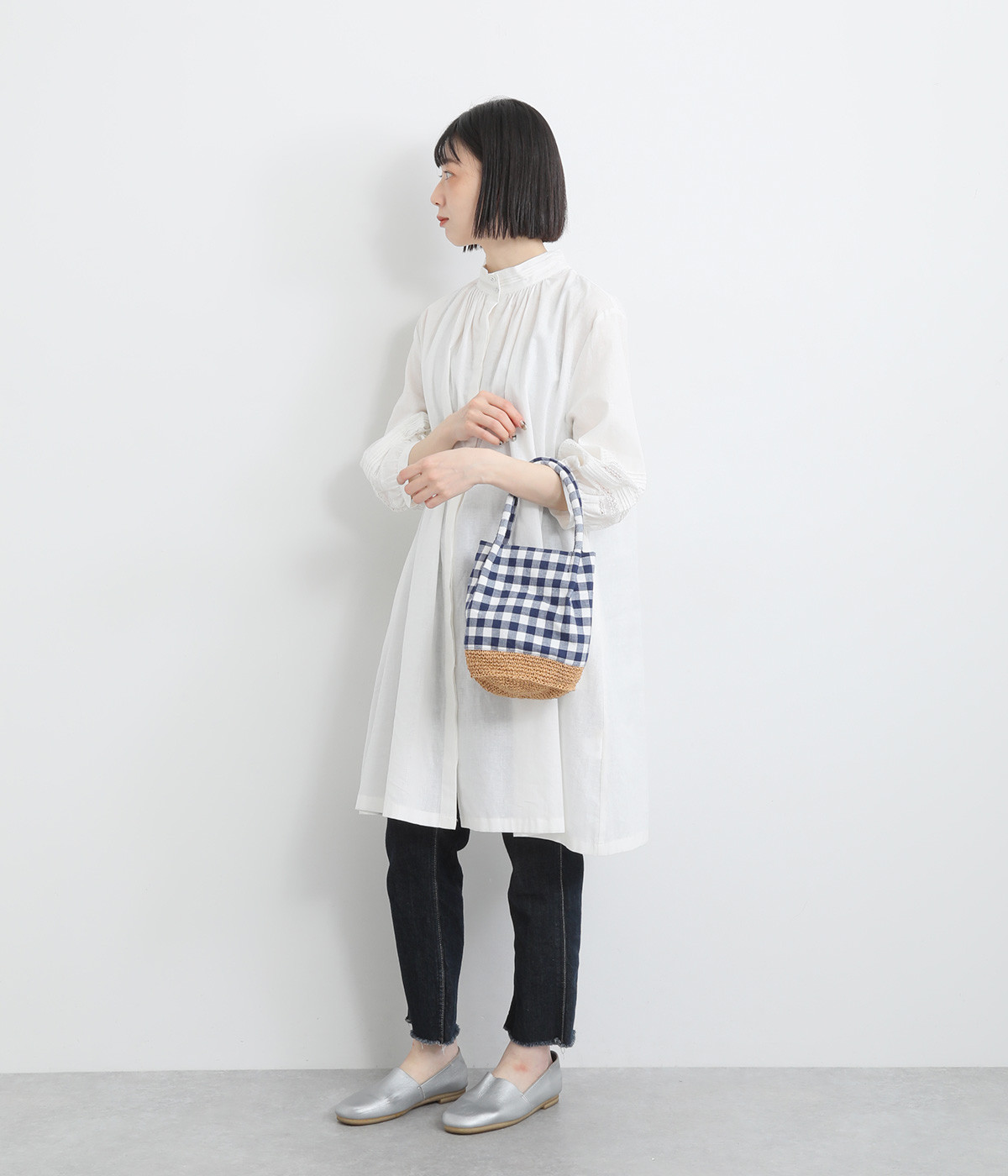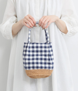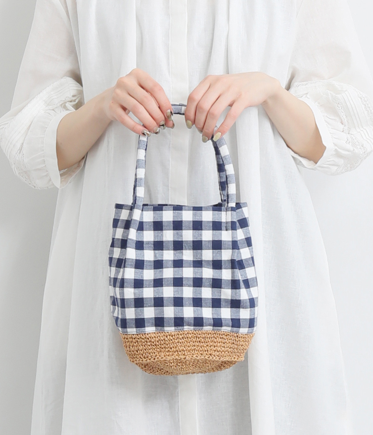 コットン生地を用いて、デイリーつかいしやすく軽やかに仕上げました。ギンガムチェック柄のコットン生地にペーパー素材を組み合わせたナチュラル感漂う素材使いです。