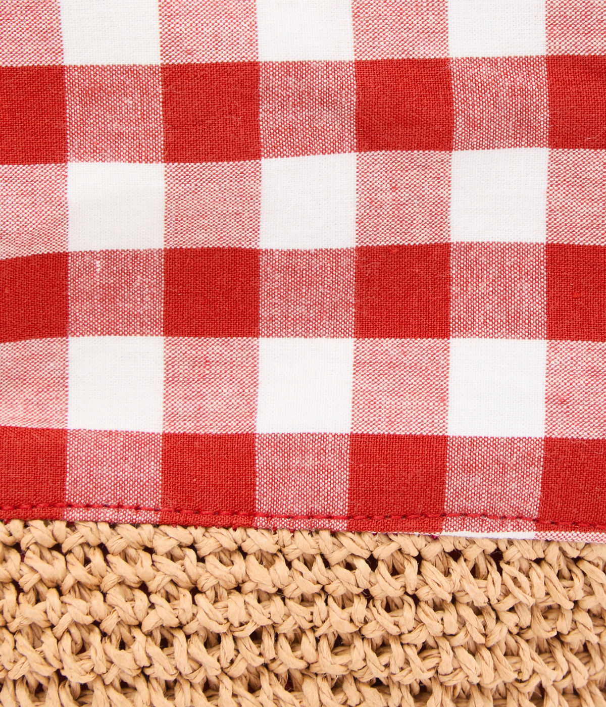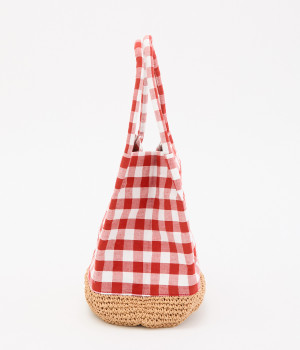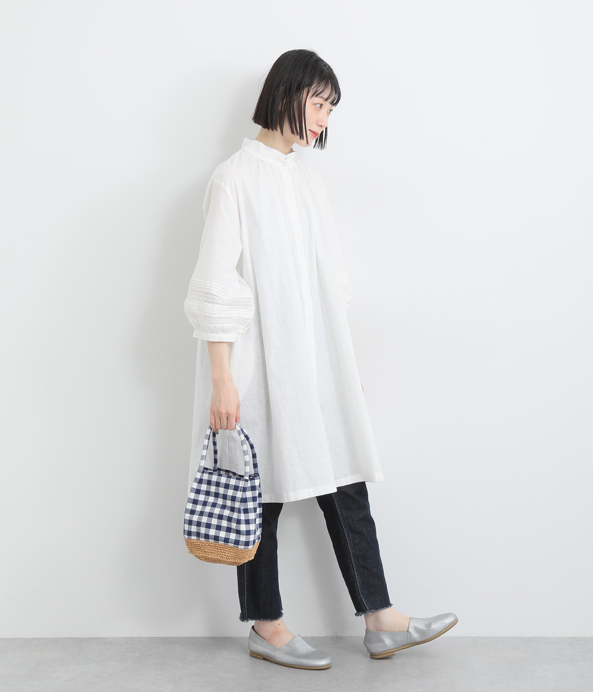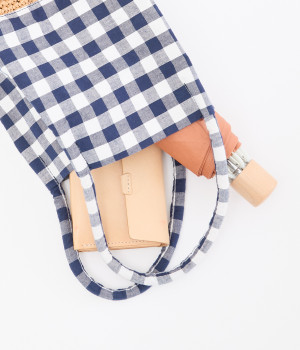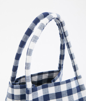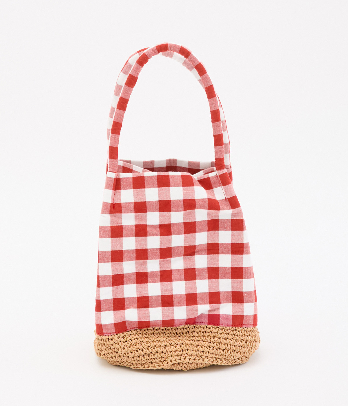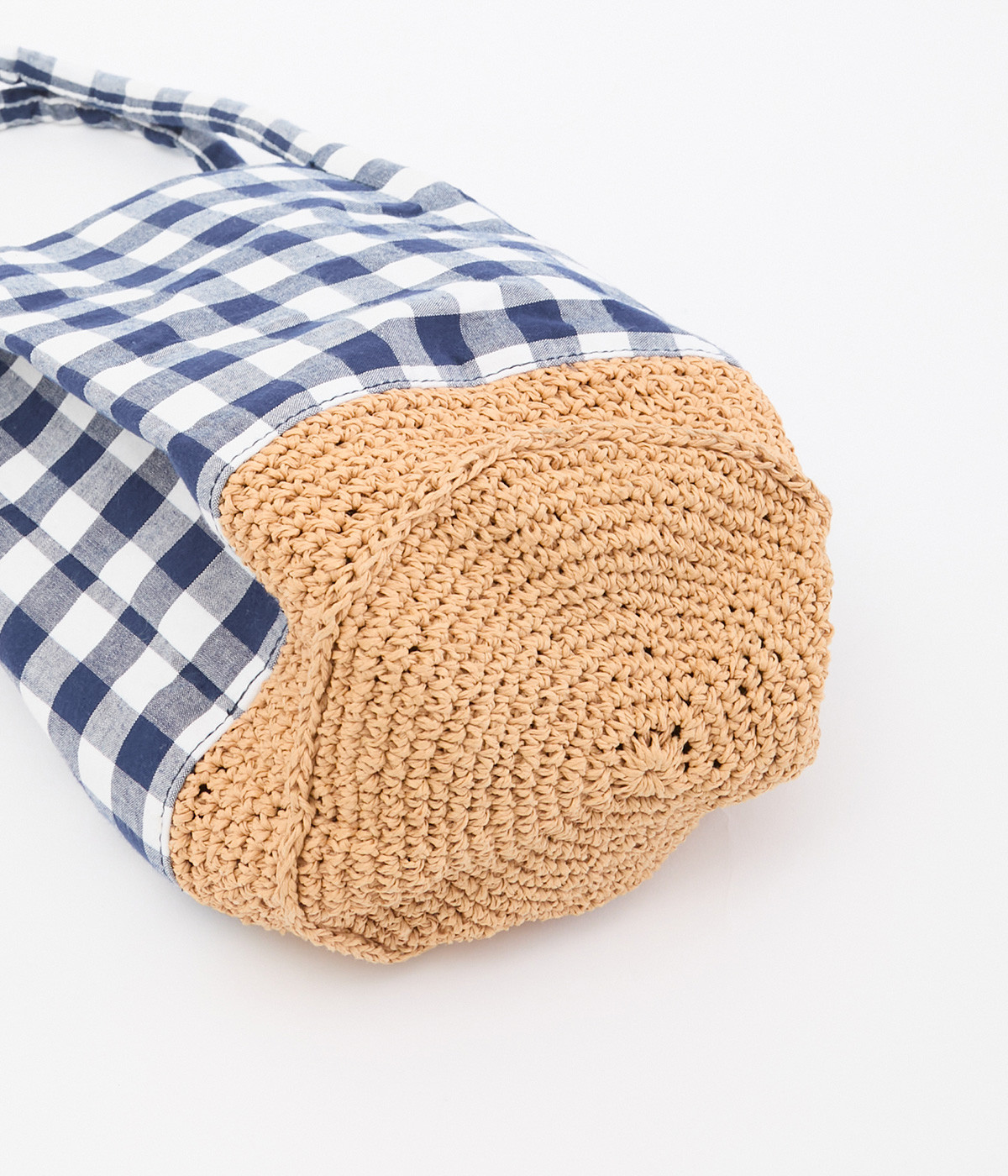 コットン生地を用いて、デイリーつかいしやすく軽やかに仕上げました。ギンガムチェック柄のコットン生地にペーパー素材を組み合わせたナチュラル感漂う素材使いです。