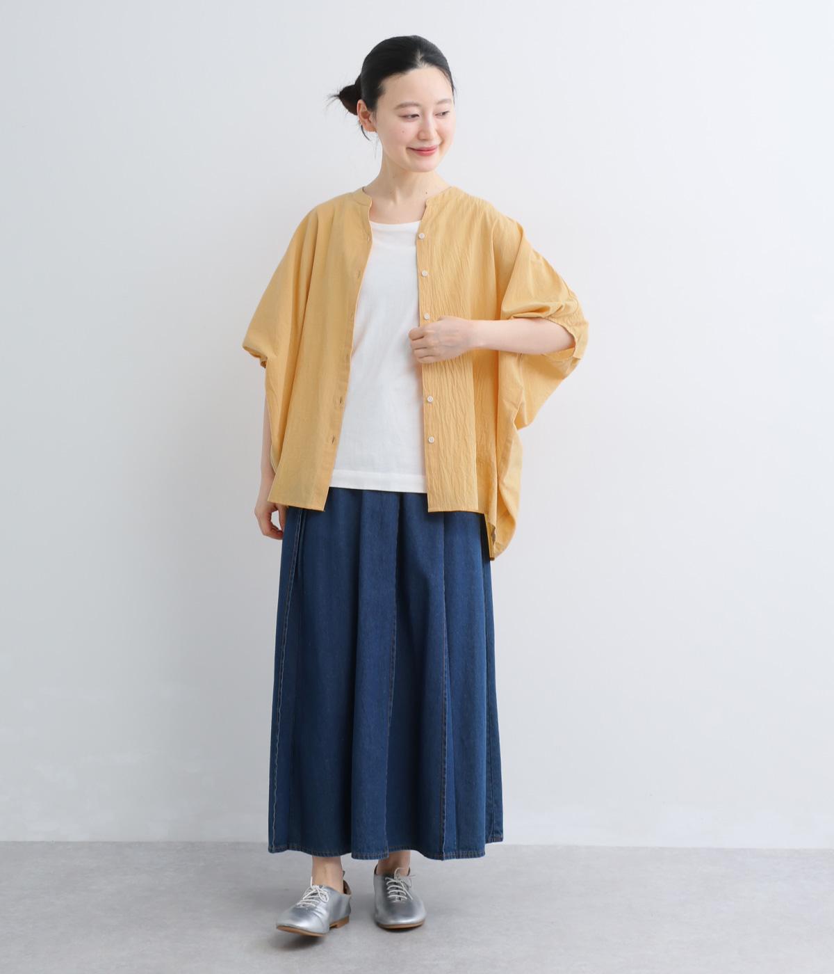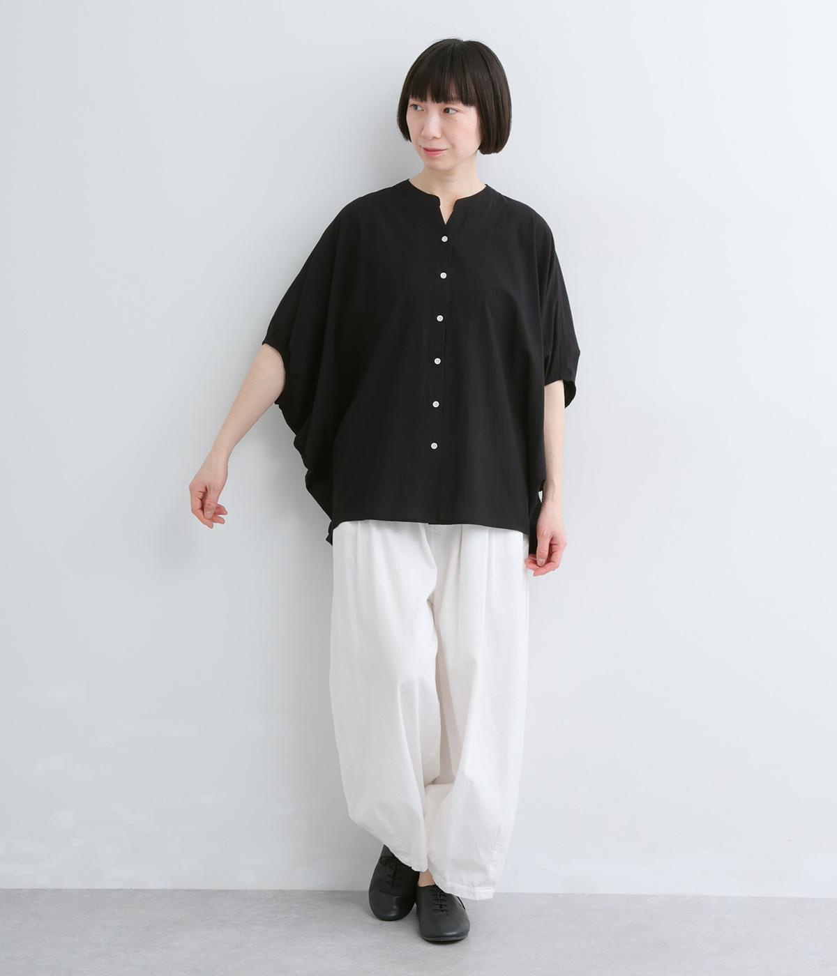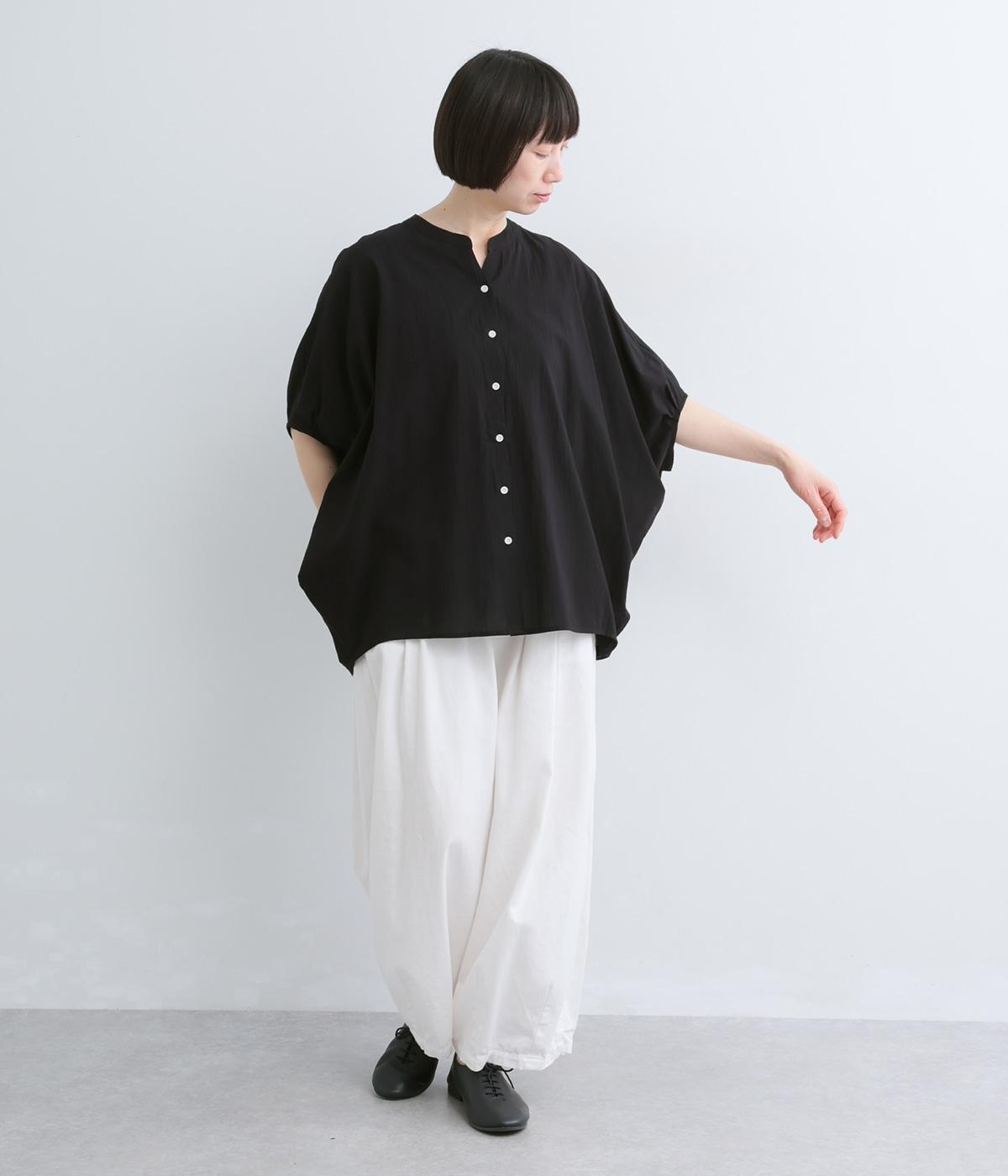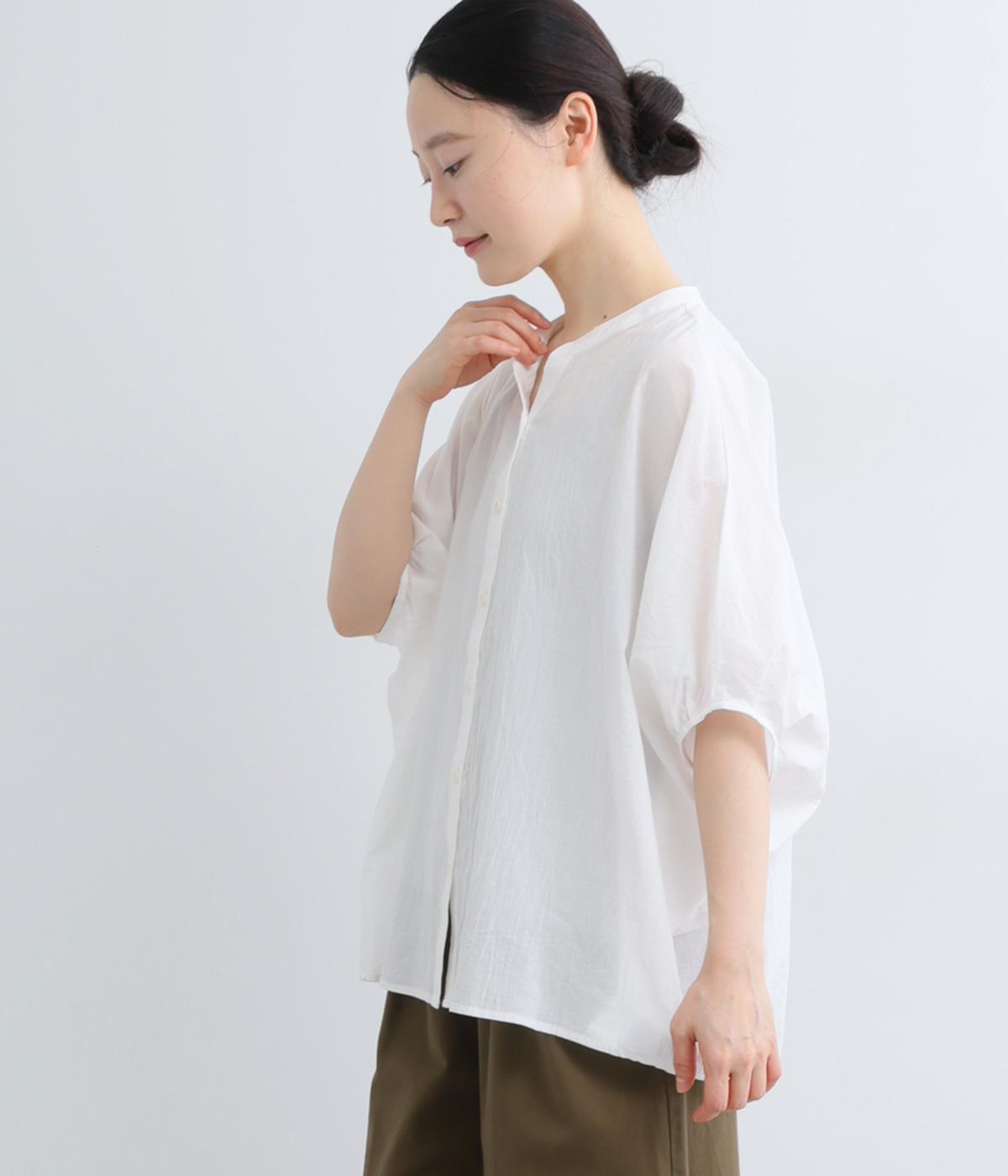 【素材】UVカット加工を施したコットン生地を使用。自然なシワ感がナチュラルな風合いを高めます。肌離れのいいさらりとした質感にほどよいふくらみが通気性の良さを確保し、汗ばむ季節も快適です。【デザイン】軽やかな生地感を活かした、ポンチョのようにたっぷりとしたシルエットが特徴的な一枚。タックを寄せた袖口やヘムラインなど丸みのあるデザインがやさしい印象に。スキッパーカラーで顔まわりに抜け感をもたせ、羽織りスタイルも◎。