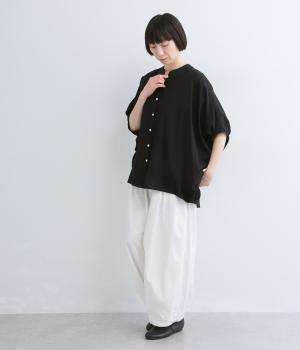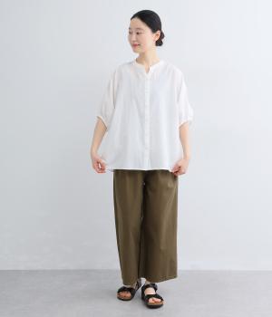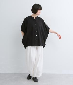 昨年ご好評いただいたバンザイカーディガンのブラウスタイプが新登場。たっぷりとした身幅と絶妙な袖丈のバランスが魅力です。