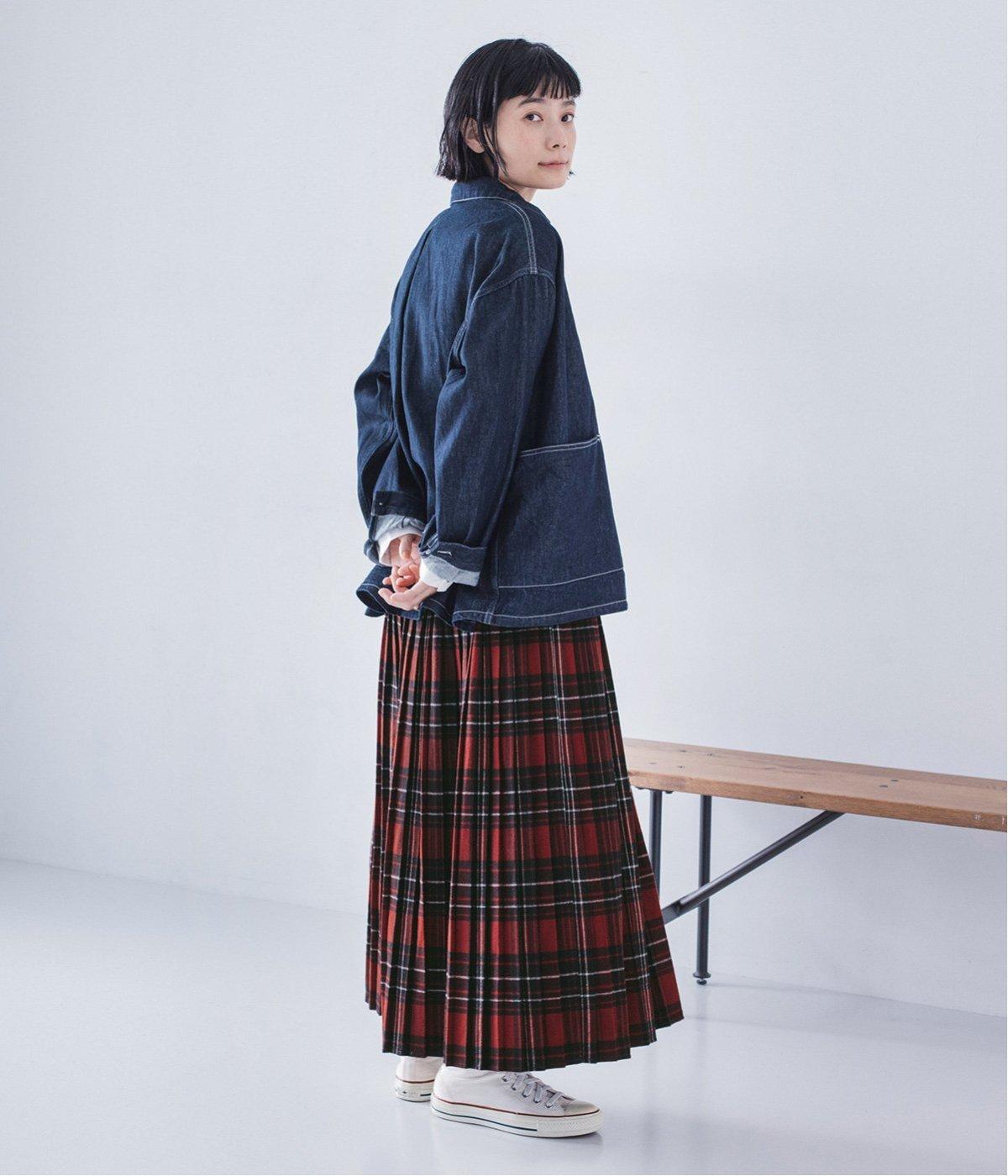 華やかな色合いが目を惹く<レッドチェック>。鮮やかなレッドと相性の良いデニムを合わせて、カジュアルなスタイリングでまとめました。