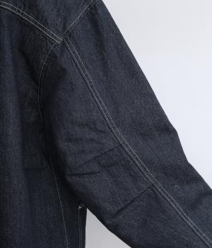 表地はコットンを使用したデニム生地。裏地と中わたにはポリエステルを使用しています。着るたびに体になじんでいき、色落ちも楽しみのひとつ。厚みを感じさせながらも軽量なキルトを裏地に使用し、保温性も◎。