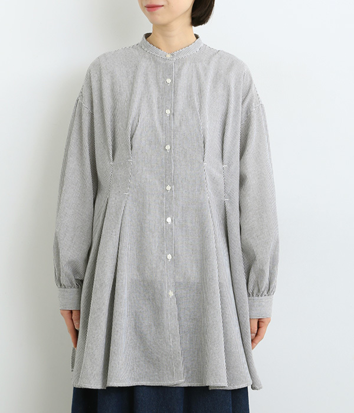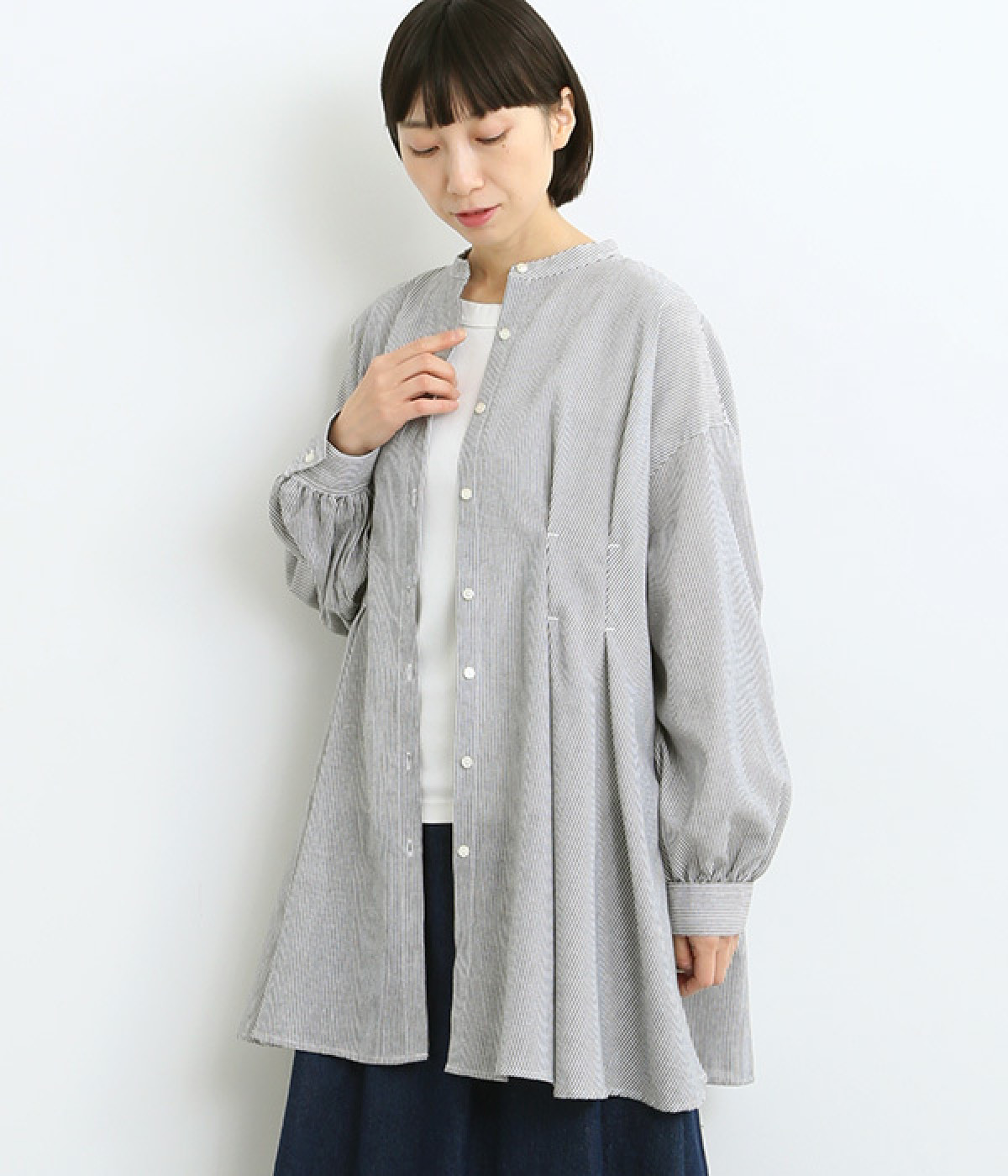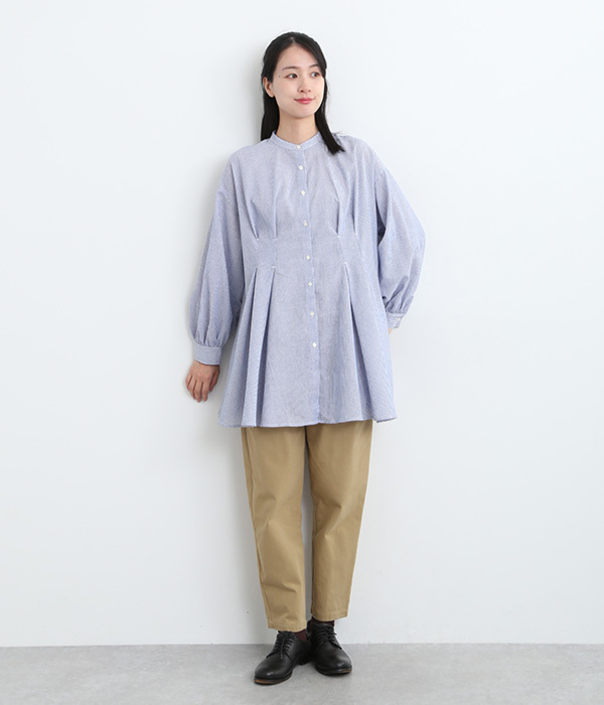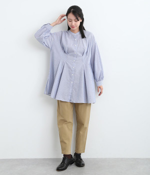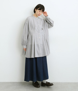身頃のタックで立体感を出して、おなか&ヒップまわりをカバー